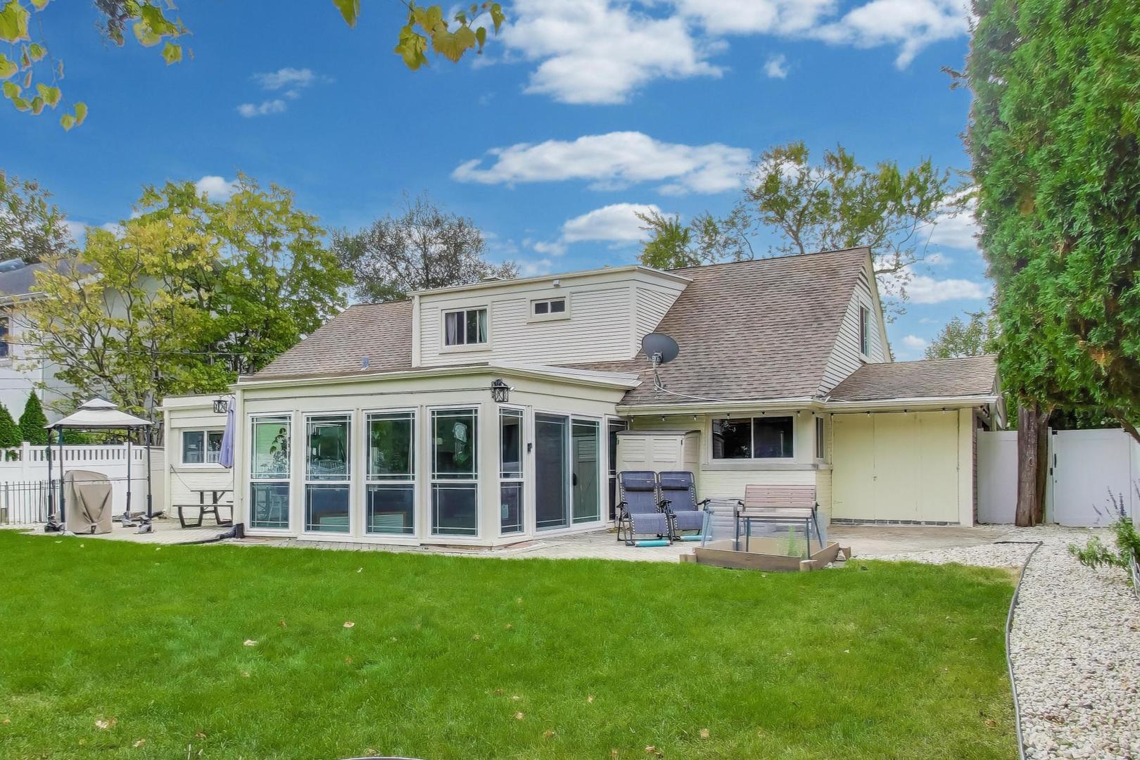 Tucked away in a peaceful neighborhood, this beautifully updated Wilmette residence blends classic charm with modern sophistication. Featuring 3 spacious bedrooms and 2 baths, this two-story home offers 2,595 square feet of beautifully finished living space designed for comfort, style, and connection. Nestled at the front of the home is a Zen-inspired garden with a calming fountain and restful seating which invites moments of quiet retreat and private escape. Step inside to a bright and inviting living room with a charming fireplace, perfect for cozy evenings. The open dining area and family room create a warm flow for entertaining and everyday living, while the well-appointed kitchen overlooks the lush, professionally landscaped backyard – a private oasis ideal for morning coffee or weekend gatherings. Throughout the main floor, new elegant flooring enhances the home’s refined ambiance. Upstairs, the primary bedroom impresses with a walk-in closet and updated hall bathroom. The second floor bedrooms and hallway have been freshly painted, creating a crisp and contemporary atmosphere. Every corner of this home has been thoughtfully maintained to reflect enduring quality and comfort. Adding to its thoughtful design, the home offers three separate attic spaces – an abundance of smart, flexible storage that enhances the home’s functionality maintaining a decluttered sense of space. Recent upgrades include newer windows throughout, updated eat-in kitchen, full sized laundry room, fully renovated bathrooms, new flooring on the first level, a newer fence, and newer hot water heater, fully insulated attics – and the list goes on. These enhancements ensure both lasting comfort and peace of mind. Outside, a fully fenced yard and mature trees provide both privacy and beauty. With a 1-car attached garage and additional covered car port, this home is move-in ready and blends timeless appeal with today’s lifestyle needs. This home is located within the award-winning Avoca West Elementary, Marie Murphy Junior High, and nationally acclaimed New Trier High School districts. The school district also offers exceptional pre-K and full-day kindergarten programs. Nearby, Loyola Academy College Prep and North Shore Country Day School provide additional academic options, creating an unparalleled path for lifelong success. From its warm natural light to its serene garden views, every detail of 3226 Sprucewood Road invites you to imagine a life well-lived – morning strolls under tree-lined streets, laughter-filled dinners, and a community that feels like home. Discover why Wilmette is one of the North Shore’s cherished addresses. Schedule your private showing today and step into the perfect blend of elegance, comfort, and opportunity.