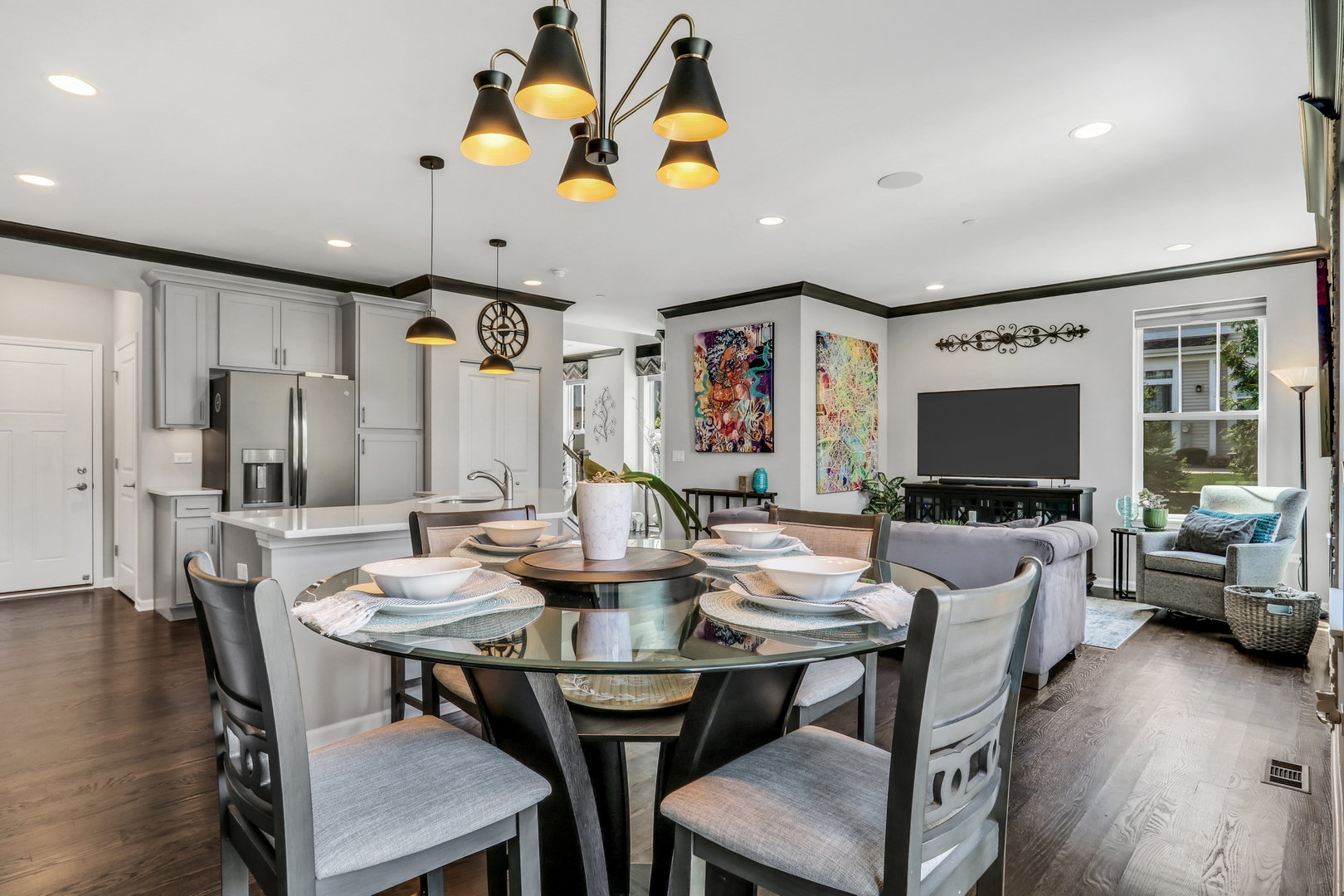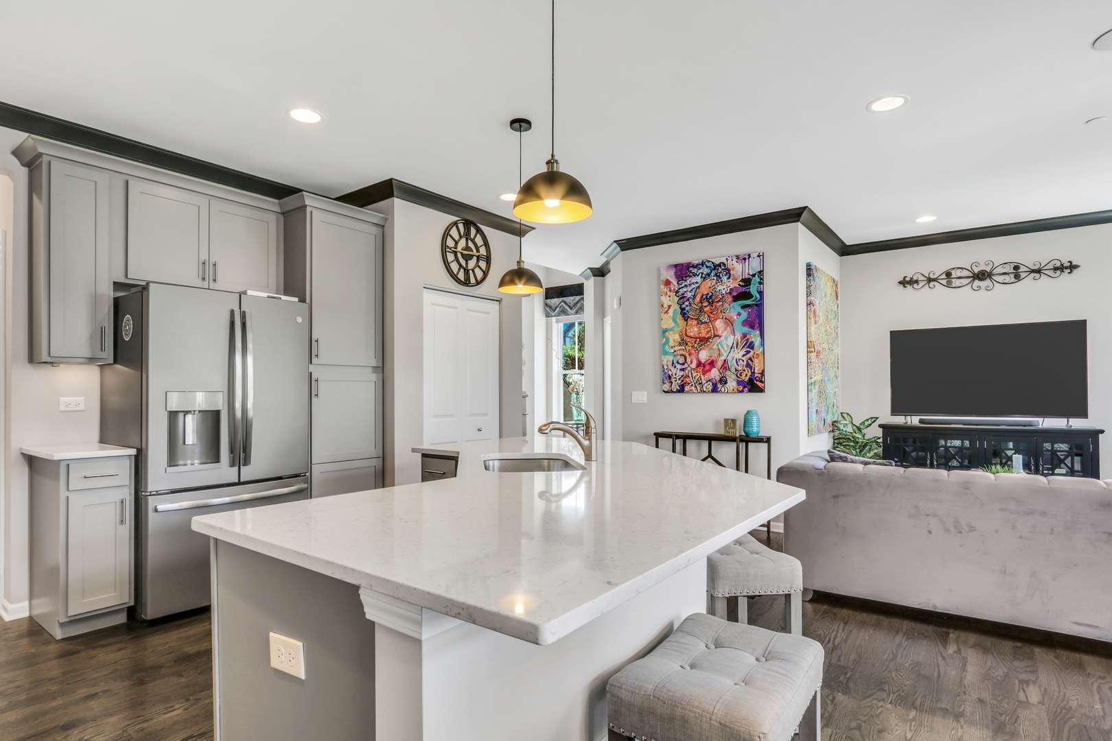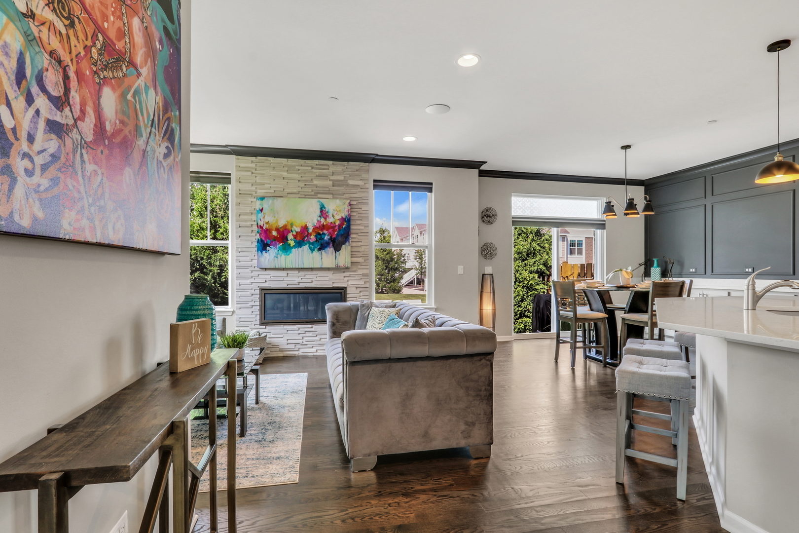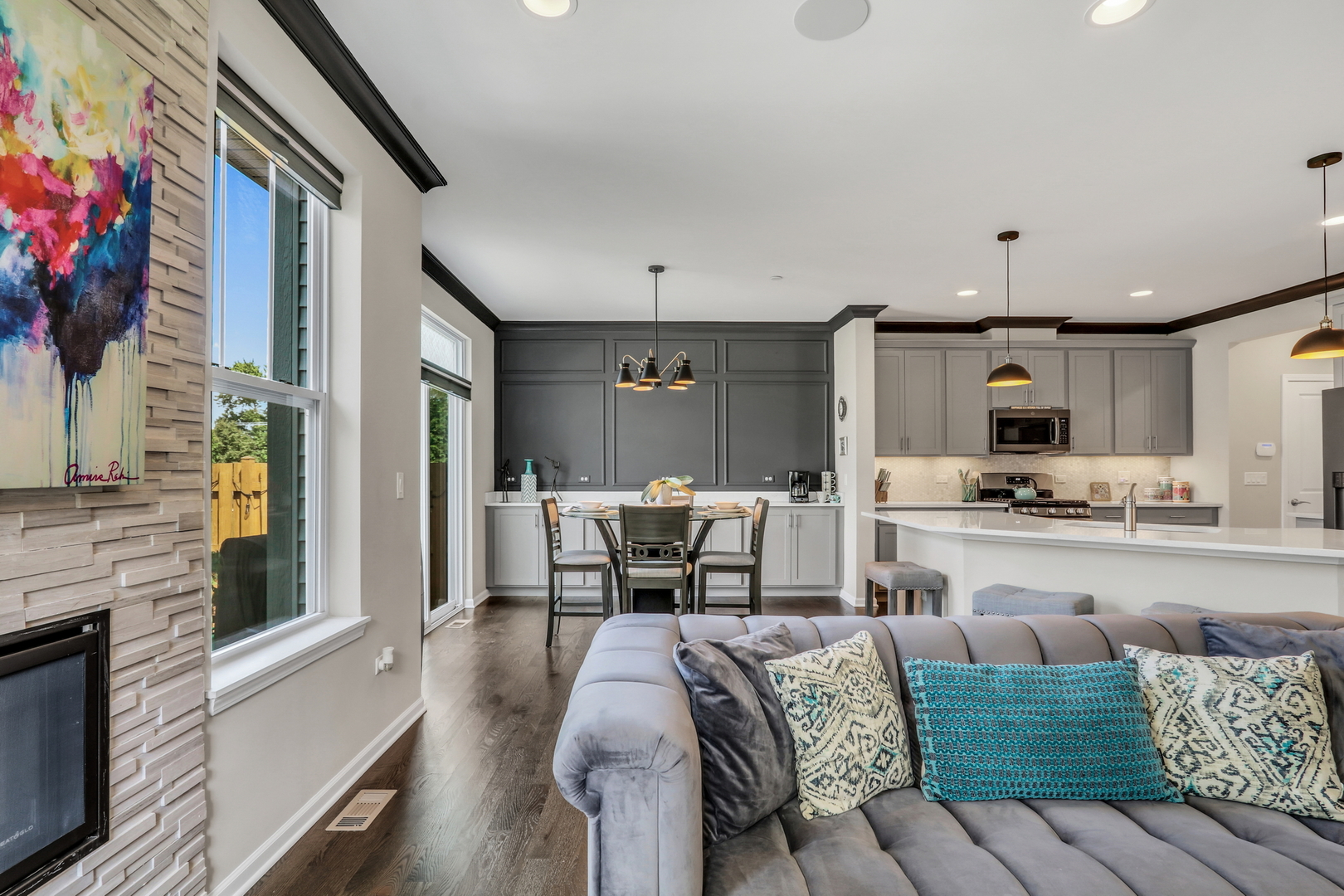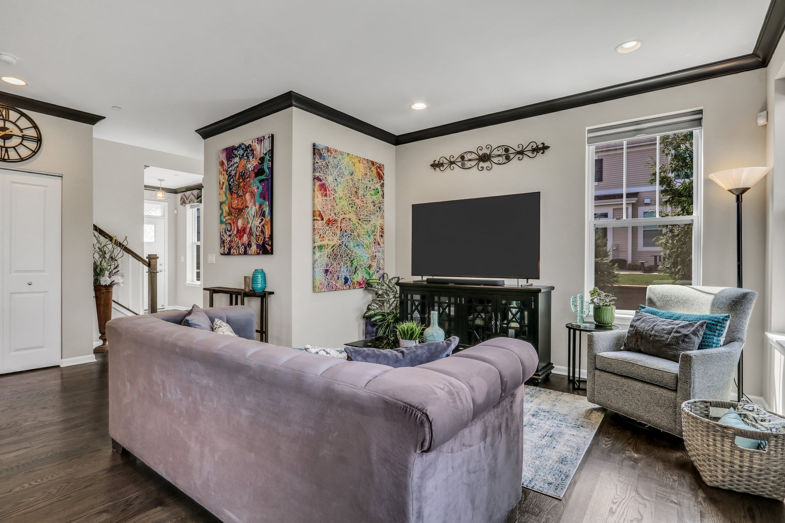 Welcome to this show-stopping builder’s model townhouse-where high-end style, modern upgrades, and incredible attention to detail come together to create a home that truly shines! From the moment you step inside, you’ll fall in love with the sun-drenched, open-concept layout and gleaming brand-new hardwood floors (2023) that flow seamlessly throughout both the first and second levels. The entire space feels fresh, sophisticated, and inviting. The chef-inspired kitchen is an absolute showpiece! With a gorgeous custom accent wall, high-end finishes, and upgraded paint throughout, it’s the heart of the home and perfect for hosting friends or enjoying your morning coffee in style. Custom crown molding, designer wallpaper, and elevated touches bring a sense of luxury to every corner. Upstairs, the vaulted ceilings in the bedrooms create an airy, spacious vibe, while custom up-and-down window treatments let you play with light and privacy any time of day. The serene primary suite is your personal retreat, featuring a spa-like bathroom with a stunning soaker tub you’ll never want to leave, plus upgraded closet systems that make organizing a breeze. Love to entertain? You’ll swoon over the extended back patio-perfect for evening cocktails, weekend BBQs, or simply soaking up the sun. And for music lovers, the premium whole-home Sonos sound system delivers rich, vibrant sound across both levels, creating the perfect soundtrack for everyday living or your next gathering. Major updates include: Kitchen appliances (2018, except dishwasher-brand new in 2024), Beautiful hardwood floors (2023), Furnace and AC (2018), Sump pump (2018). This one-of-a-kind, light-filled townhome is completely move-in ready and has been thoughtfully curated with designer touches throughout. Get ready to fall in love-this is model home living at its absolute finest!