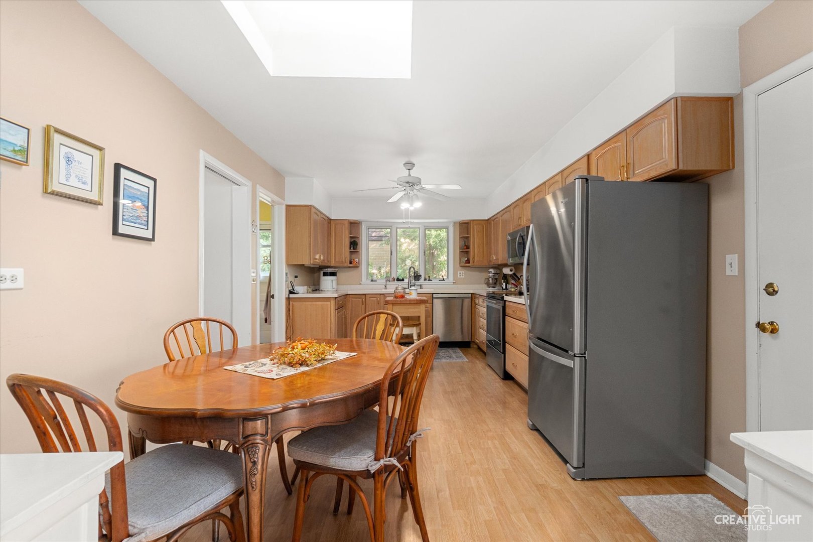 Beautiful Ranch home just a short distance to Wheaton’s downtown and train. This lovely home sits on an oversized lot on tree lined boulevard. Well maintained inside and out. Lots of windows flood the home with natural light. A spacious living room with brick fireplace welcomes all your guests. The eat-in kitchen offers plenty of cabinet and counter space, plus stainless appliances. There is a large dining room with a big picture window for those more formal occasions. The oversized family room will hold all your friends and family. It features a wood burning fireplace as its focal point, surrounded by custom built ins and offers fabulous views of the large backyard. Down the hall the big master suite offers plenty of closet space and a private bath. There are two more good-sized bedrooms and a full guest bath as well. This charming home features a huge, screened 3 season room that overlooks the lush back yard of mature trees and perennial gardens. Enjoy summertime barbeques on the oversized patio. A sizeable 1st floor laundry room offers plenty of storage. The big 2.5 car garage will hold all your vehicles and outdoor toys. You will love where you live in this popular area of Wheaton. Close to schools and parks and a short distance to the train, farmers market, and everything downtown Wheaton has to offer. This home is clean and ready for new owners. Furnace and A/C 3 years. Electrical panel 2025. Newer flooring and more. A nice ranch home in this area at this price is rare. Hurry on this one.