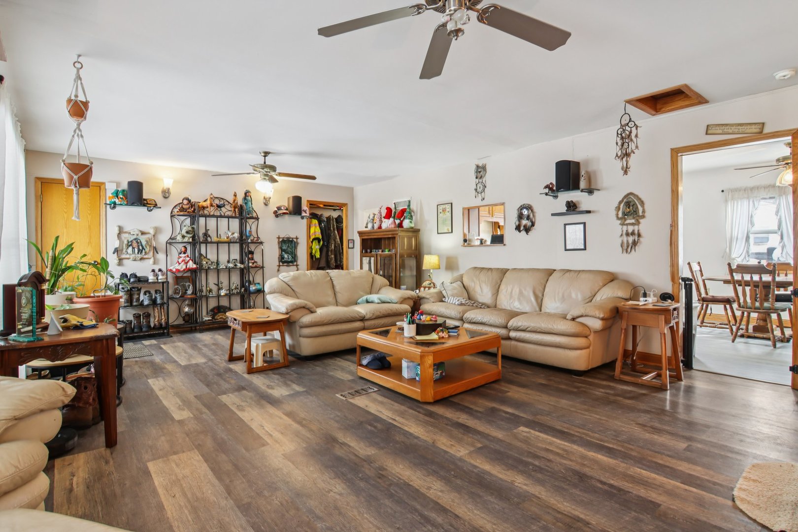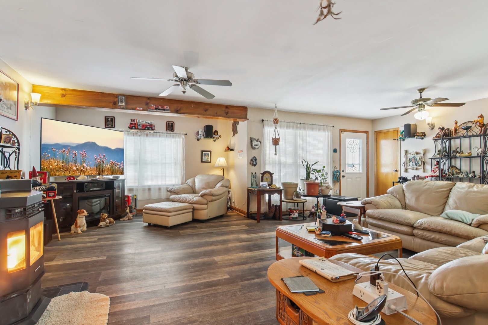 Welcome to this charming and well-maintained 3-bedroom, 1-bath ranch with a 2-car detached garage offering 1,176 sq. ft. of comfortable living space. Inside, you’ll find luxury vinyl flooring throughout and a warm oak trim package that adds character to every room. The eat in kitchen is equipped with oak cabinetry, stainless steel appliances, and ample storage. The highlight of the home is the spacious 25′ x 21′ living room, complete with a wood-pellet stove that provides both comfort and efficiency. The layout includes three bedrooms, with the third bedroom offering direct access to a 35′ x 15′ backyard deck-a perfect spot for relaxing or entertaining. The fully fenced backyard provides privacy and plenty of space for outdoor activities. This property features a detached, insulated & heated 20′ x 22′ garage-perfect for a workshop, hobby space, or year-round storage-along with a long, extended driveway providing parking for up to six vehicles. Recent updates roof, gutter’s, washer & dryer in 2021. Gazebo in 2020 Located within walking distance of all three local schools, this home combines convenience, comfort, and functionality. Commuting, golfing, shopping, and dining are made easy with quick access to major highways. A beautifully updated home in a prime location-priced to sell, move-in ready, and a must-see!