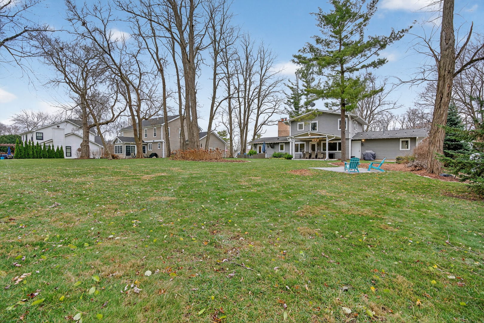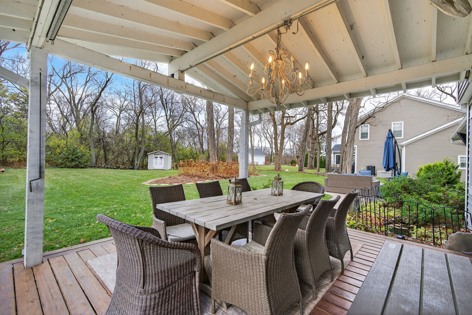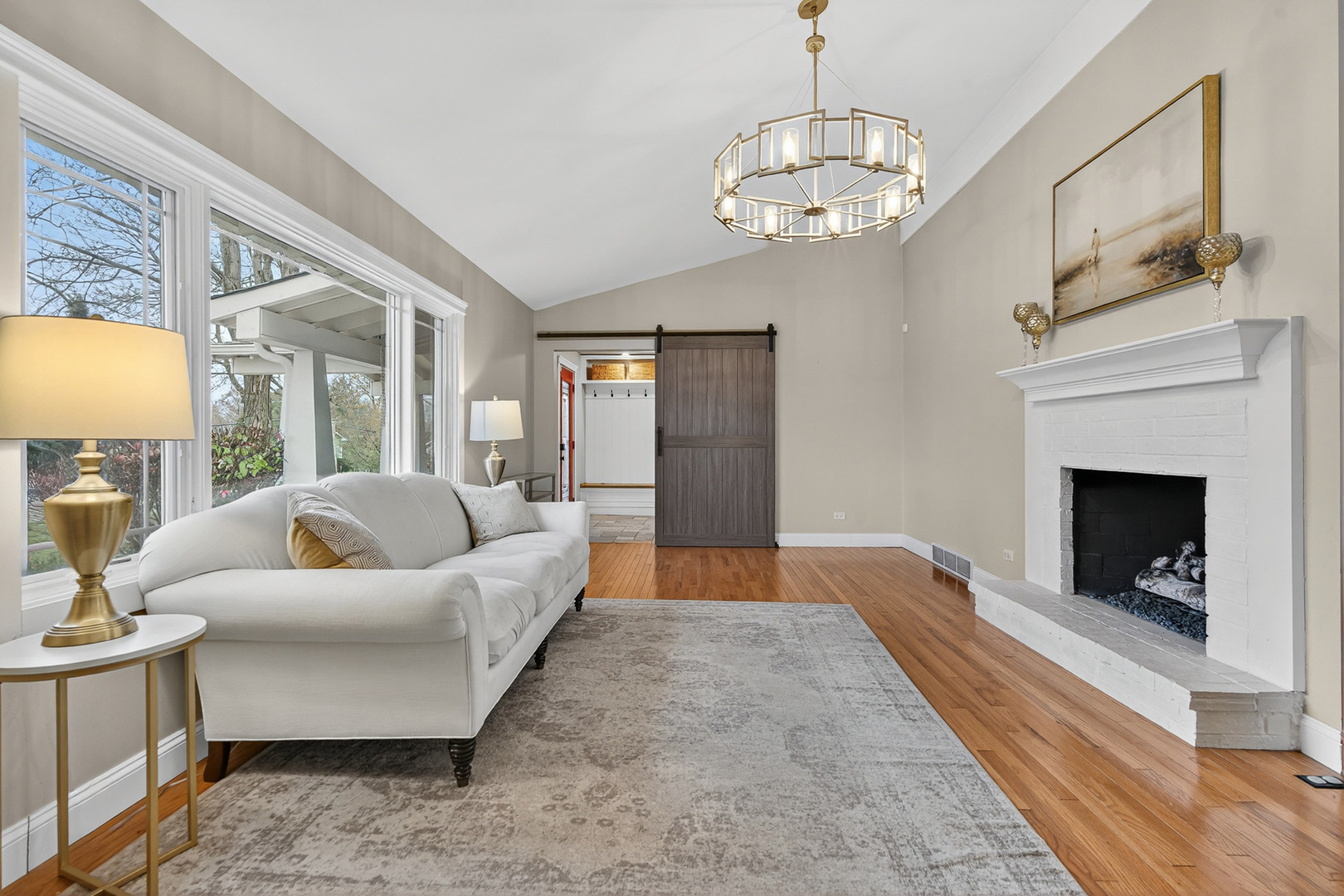 Charming Village Craftsman with modern updates on 1/2 acre manicured lot with towering trees that shade your outdoor oasis and located in award winning Barrington School District. The covered front porch and beveled glass front door welcomes you to the foyer with built in bench adjacent to the formal living room with wall of Southern exposure windows & gas burning fireplace and vaulted ceiling that opens to the dining room with French doors to back yard. Updated kitchen with custom soft white cabinetry, granite counters, statement light fixtures, butcher block center island, stainless steel appliances, double ovens, gas cooktop and breakfast nook with a view. Open flow floor plan from the kitchen to family room which also steps out to the backyard featuring a covered deck with chandelier, paver patio that leads to open air patio & overlooks your beautiful backyard with fire-pit (2019), sand & gravel play area (2023), fire pit patio (2025) & garden shed. A 4th bedroom or office, powder room and laundry room with ample storage complete the main level. Hardwood floors extend throughout the the home and upstairs you’ll find the primary ensuite with beautifully updated bath with frameless shower door & granite countertop plus two additional bedrooms share another updated bath with on trend subway tile. Basement updated (2017) with recreation room, playroom & craft room, remodeled bath (2022) new flooring (2022). Oversized 2+ tandem for 4 car heated garage with new drywall & paint (2023). Additional updates include dishwasher (2025), whole house air duct cleaning (2022), professional tree service (2021), gutters with leaf guards (2020), refrigerator (2020), ADT security system (2020), interior smart lighting (2018), HVAC (2017), Nest FIRE/CO detector with overhead motion lights (2017), hot water heater (2017), landscape lighting (2017), irrigation system (2017) & updated landscape. Home is steps from Blue Ribbon Barrington Roslyn Road Elementary with playground, walking distance to restaurants & shops, a short drive to Metra Train Station, Citizen’s Park with walking/bike paths, Barrington Park District, Library and schools.