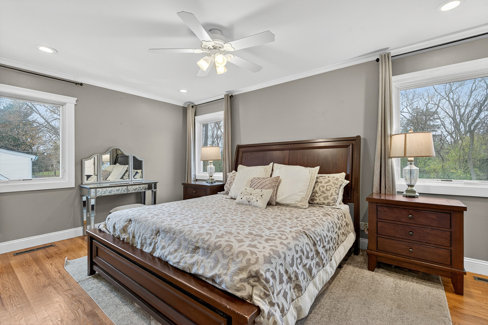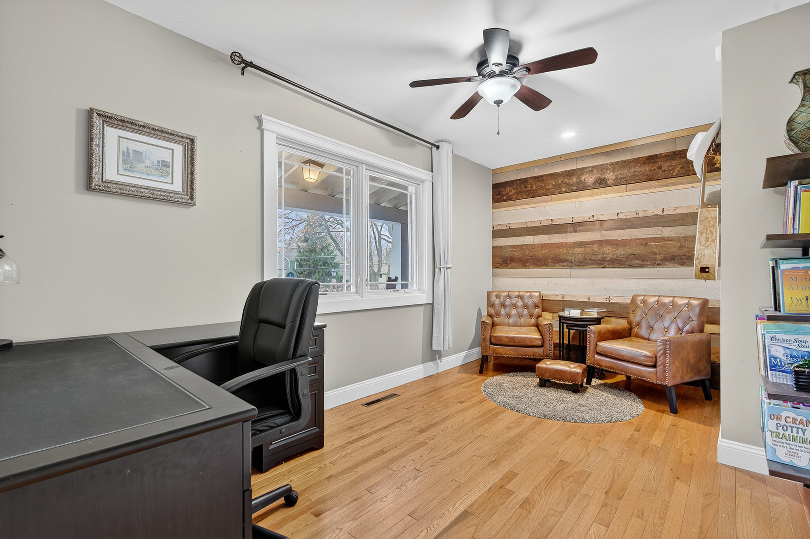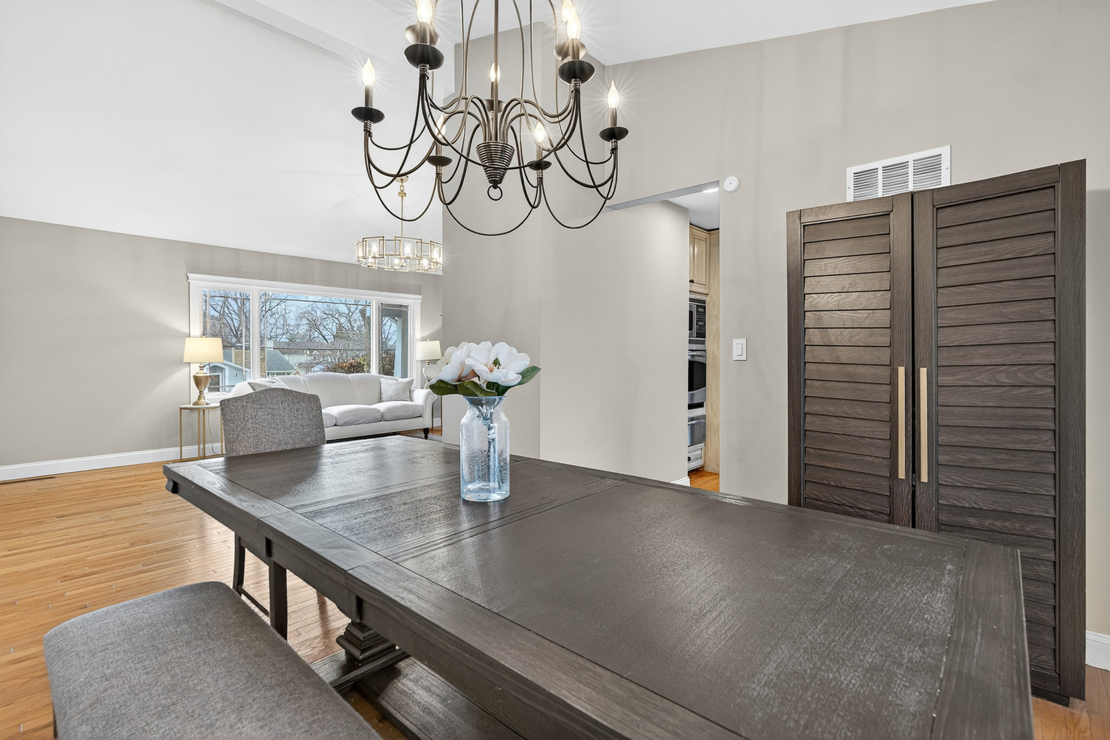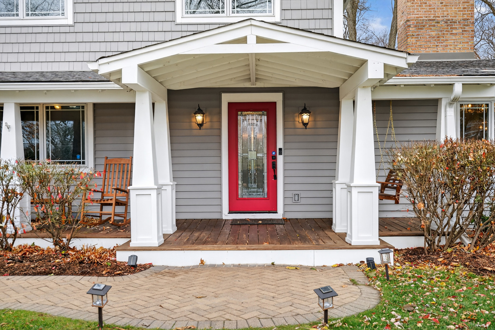 Charming Village Craftsman with modern updates on 1/2 acre manicured lot with towering trees that shade your outdoor oasis and located in award winning Barrington School District. The covered front porch and beveled glass front door welcomes you to the foyer with built in bench adjacent to the formal living room with wall of Southern exposure windows & gas burning fireplace and vaulted ceiling that opens to the dining room with French doors to back yard. Updated kitchen with custom soft white cabinetry, granite counters, statement light fixtures, butcher block center island, stainless steel appliances, double ovens, gas cooktop and breakfast nook with a view. Open flow floor plan from the kitchen to family room which also steps out to the backyard featuring a covered deck with chandelier, paver patio that leads to open air patio & overlooks your beautiful backyard with fire-pit (2019), sand & gravel play area (2023), fire pit patio (2025) & garden shed. A 4th bedroom or office, powder room and laundry room with ample storage complete the main level. Hardwood floors extend throughout the the home and upstairs you’ll find the primary ensuite with beautifully updated bath with frameless shower door & granite countertop plus two additional bedrooms share another updated bath with on trend subway tile. Basement updated (2017) with recreation room, playroom & craft room, remodeled bath (2022) new flooring (2022). Oversized 2+ tandem for 4 car heated garage with new drywall & paint (2023). Additional updates include dishwasher (2025), whole house air duct cleaning (2022), professional tree service (2021), gutters with leaf guards (2020), refrigerator (2020), ADT security system (2020), interior smart lighting (2018), HVAC (2017), Nest FIRE/CO detector with overhead motion lights (2017), hot water heater (2017), landscape lighting (2017), irrigation system (2017) & updated landscape. Home is steps from Blue Ribbon Barrington Roslyn Road Elementary with playground, walking distance to restaurants & shops, a short drive to Metra Train Station, Citizen’s Park with walking/bike paths, Barrington Park District, Library and schools.