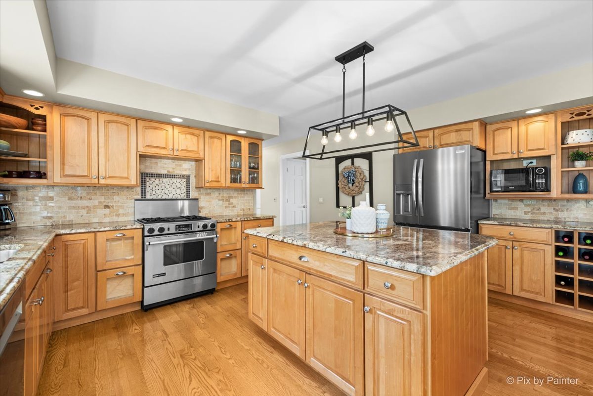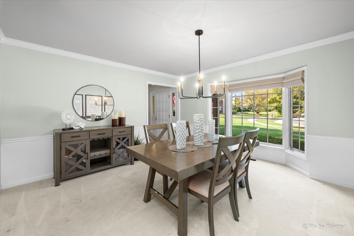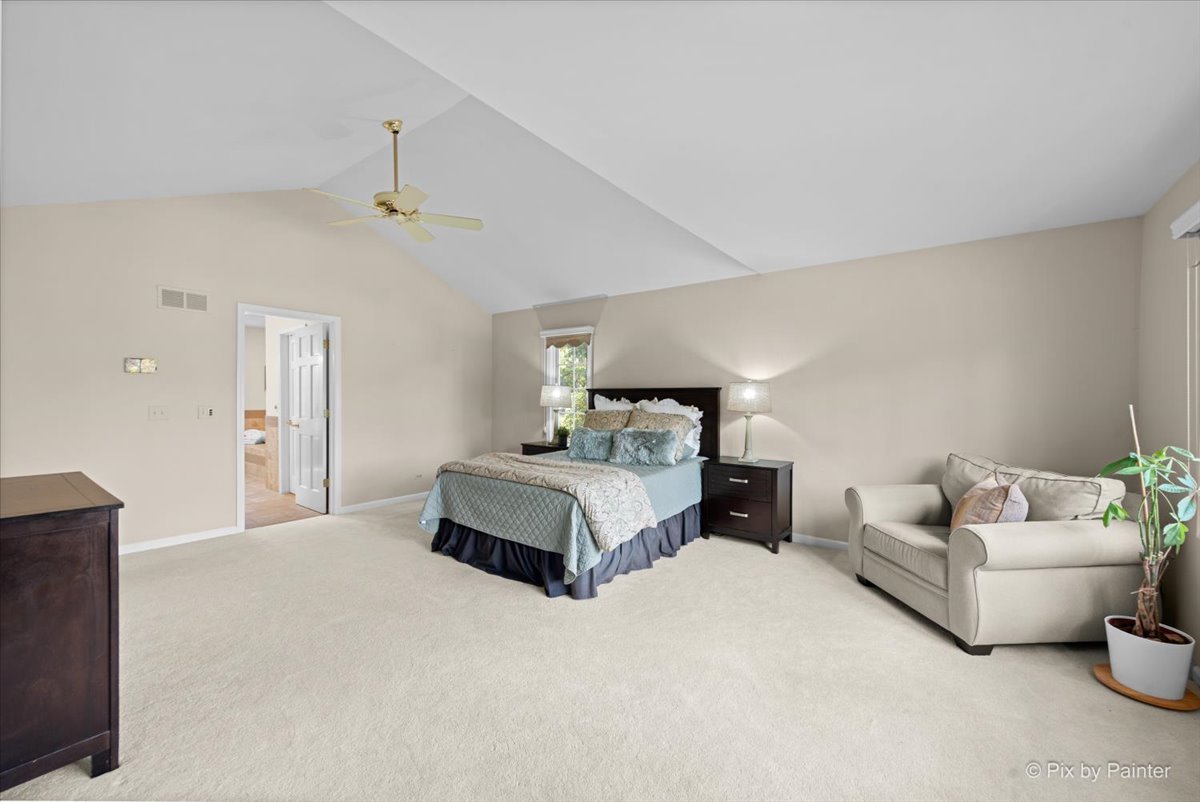 Captivating 2-story home in a quiet cul-de-sac in the Aintree subdivision offering 4 bedrooms, 2.2 baths, private den, full finished basement and attached 3-car garage. This beautifully maintained home starts with curb appeal and a lovely front porch. Step inside the bright foyer, to one side is a spacious living room and to the other side is a private dining room both with big bay windows and carpet. Pass through the dining room to the great family room with volume wood ceiling, 3 skylights, a floor to ceiling brick fireplace and glass sliders that lead to the big patio. Steps away is the gourmet kitchen with ample cabinets and granite countertops, center island, stainless steel appliances, pantry and eat-in area with another bay window. A private den, powder room and laundry room with cabinets, utility sink and exterior access completes the main level. Upstairs is the master retreat with volume ceiling, sitting area, walk-in closet and luxurious ensuite bath with soaking tub, separate shower with built-in seating, double sinks and skylight. 3 additional sizable bedrooms with large closets and carpet, a full hall bath with shower over tub combo and a roomy loft rounds out the upper level. Head downstairs to an open rec room, game area and dry bar perfect for entertaining. Completing the lower level is a powder room, extra storage room and cedar closet. Your own oasis awaits outdoors with 2 brick paver patios, one with a lovely pergola, a great garden, gravel area perfect for a firepit and an abundance of lush greenspace surrounded by shady trees. Walking distance to some schools and parks and nearby the Fox River and downtown St. Charles with endless shopping and dining!