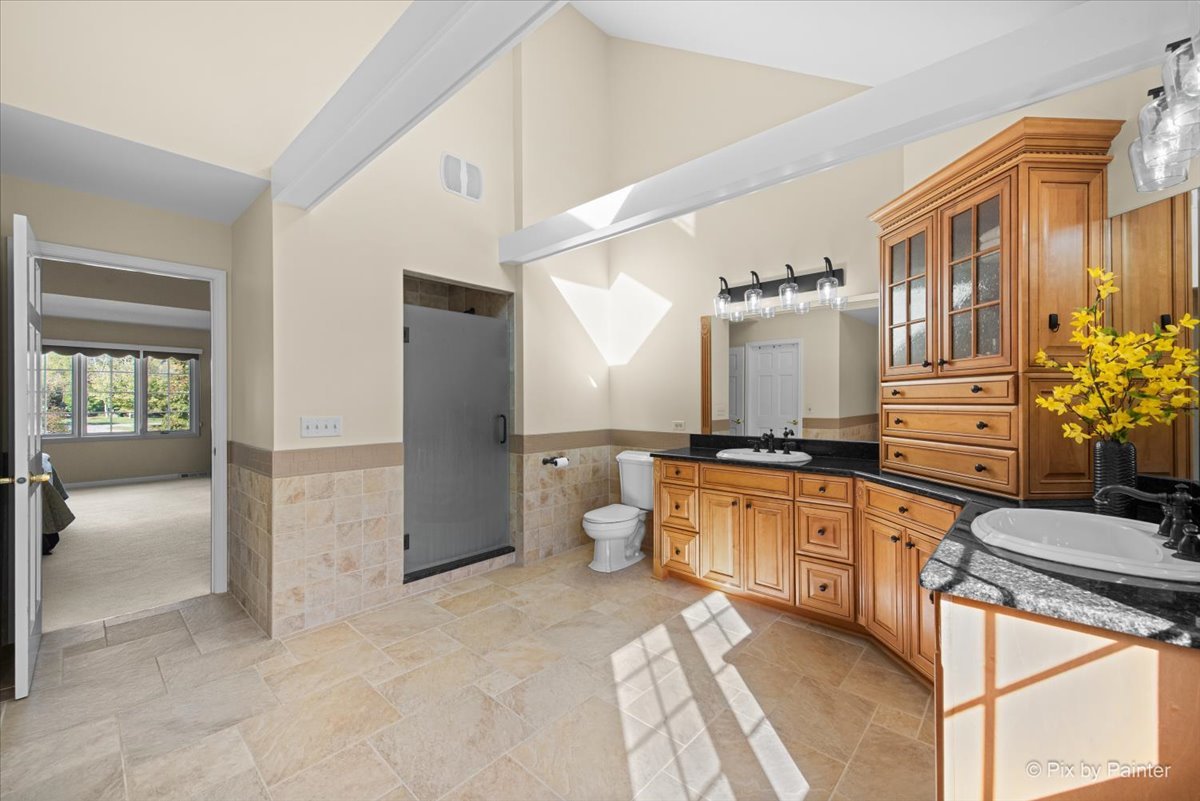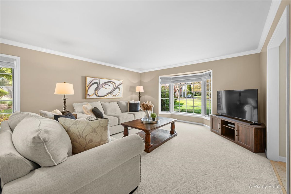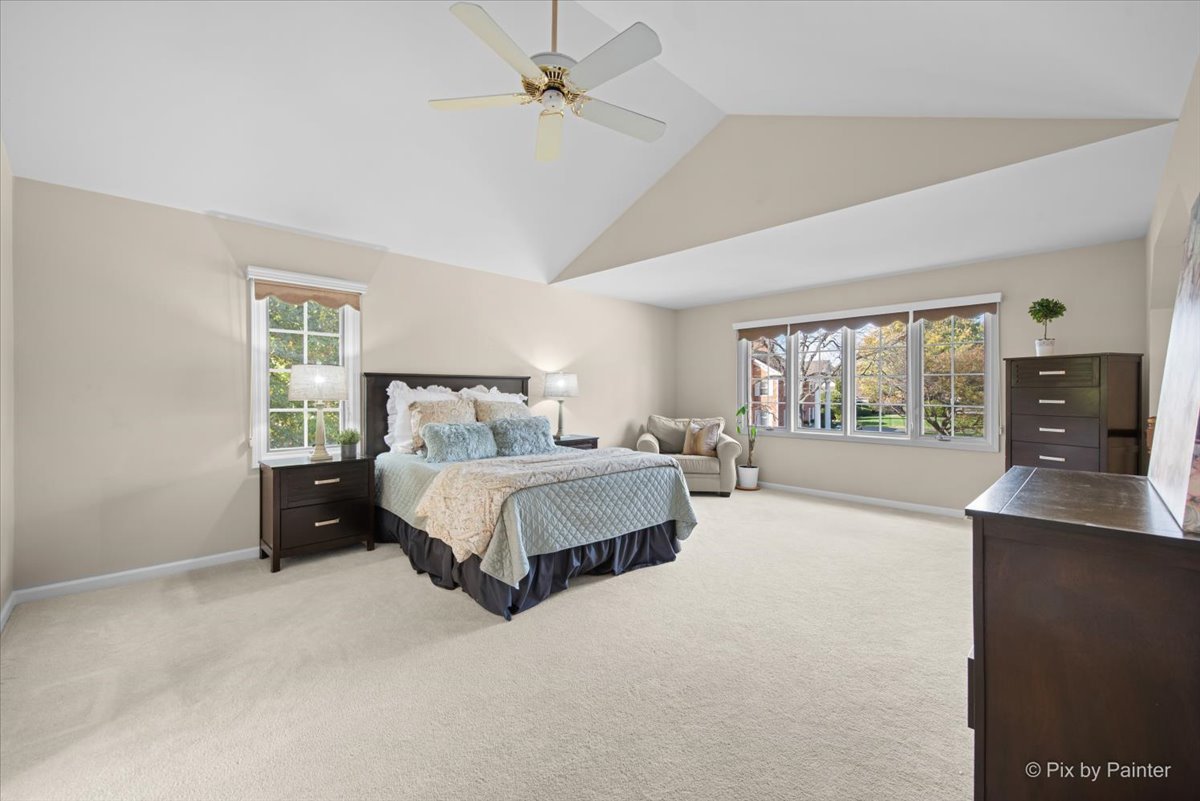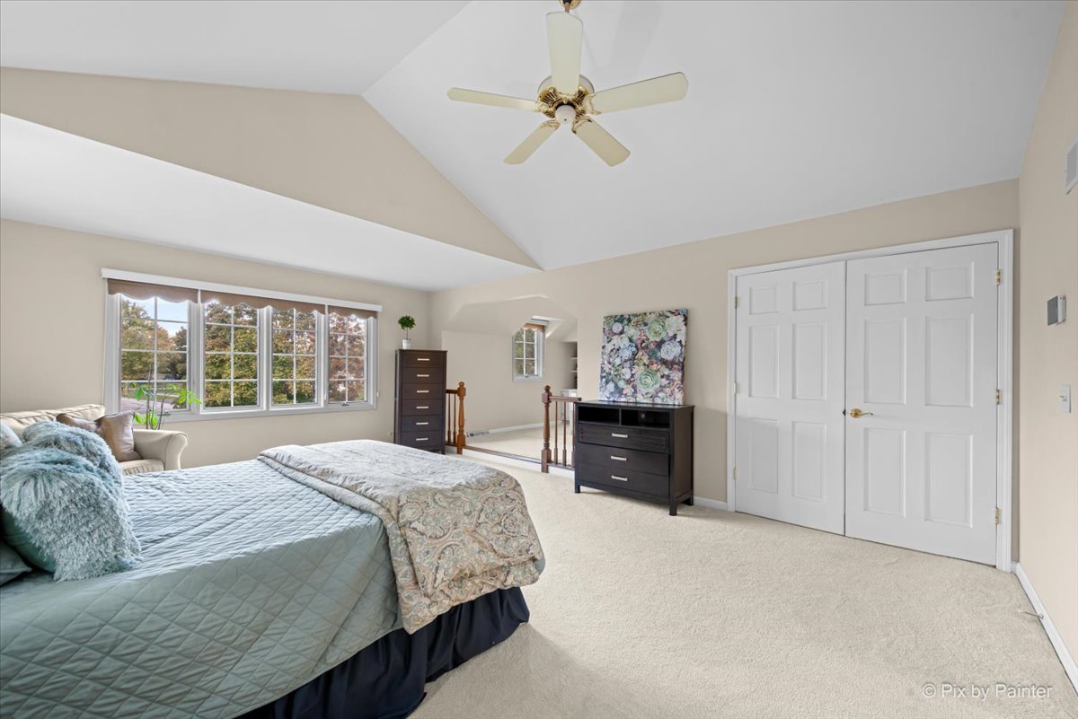 Captivating 2-story home in a quiet cul-de-sac in the Aintree subdivision offering 4 bedrooms, 2.2 baths, private den, full finished basement and attached 3-car garage. This beautifully maintained home starts with curb appeal and a lovely front porch. Step inside the bright foyer, to one side is a spacious living room and to the other side is a private dining room both with big bay windows and carpet. Pass through the dining room to the great family room with volume wood ceiling, 3 skylights, a floor to ceiling brick fireplace and glass sliders that lead to the big patio. Steps away is the gourmet kitchen with ample cabinets and granite countertops, center island, stainless steel appliances, pantry and eat-in area with another bay window. A private den, powder room and laundry room with cabinets, utility sink and exterior access completes the main level. Upstairs is the master retreat with volume ceiling, sitting area, walk-in closet and luxurious ensuite bath with soaking tub, separate shower with built-in seating, double sinks and skylight. 3 additional sizable bedrooms with large closets and carpet, a full hall bath with shower over tub combo and a roomy loft rounds out the upper level. Head downstairs to an open rec room, game area and dry bar perfect for entertaining. Completing the lower level is a powder room, extra storage room and cedar closet. Your own oasis awaits outdoors with 2 brick paver patios, one with a lovely pergola, a great garden, gravel area perfect for a firepit and an abundance of lush greenspace surrounded by shady trees. Walking distance to some schools and parks and nearby the Fox River and downtown St. Charles with endless shopping and dining!