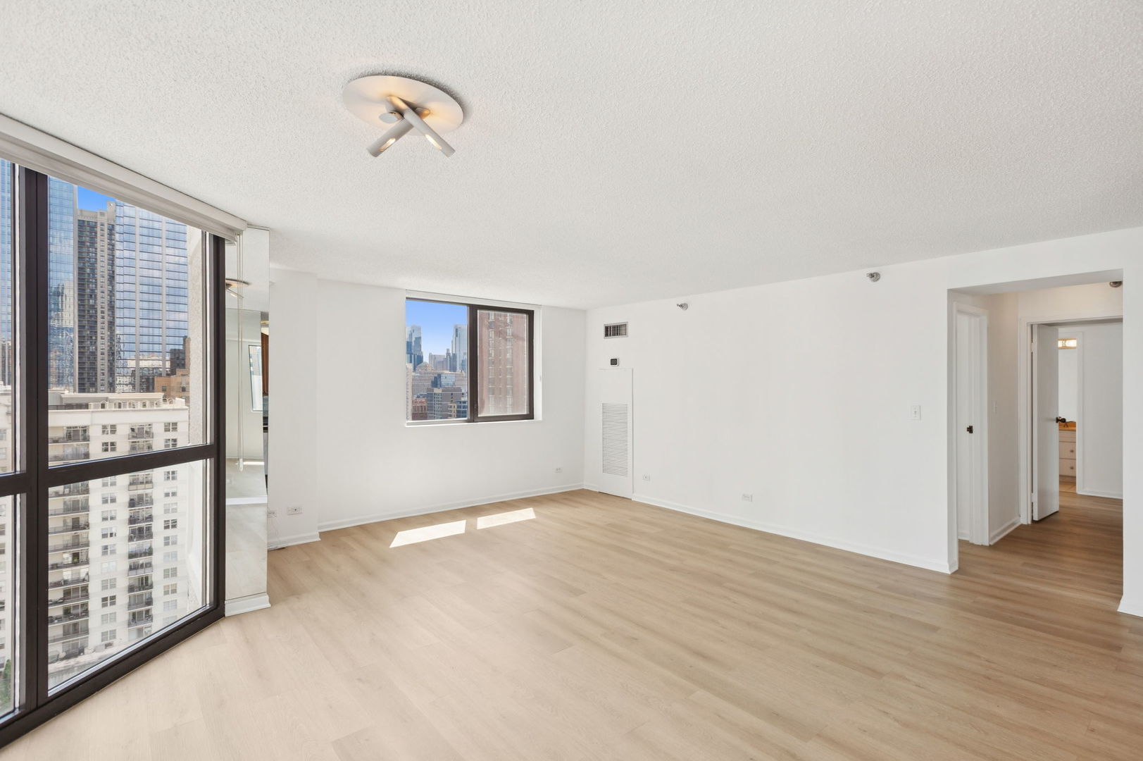 Premiere location on one the city’s best blocks among multi-million dollar residences and within steps of the best restaurants, shops, nightlife, and the lakefront, this wonderful high floor rarely available condo offers so much. Immaculately maintained and recently updated with gorgeous new wide plank LVP floors throughout and freshly painted. Fantastic city views are framed from walls of floor-to-ceiling windows, open granite/stainless kitchen, spacious dining area, huge living area with a balcony, and a large primary suite complete with a second balcony. Second bedroom and bath offers great additional space. Building has 24-hour door-staff, onsite management, fitness room, sundeck, business center, and laundry room. Attached deeded garage parking available for 30K. Investor friendly building with no rental cap and pet friendly as well. Move in ready in the heart of the Gold Coast!