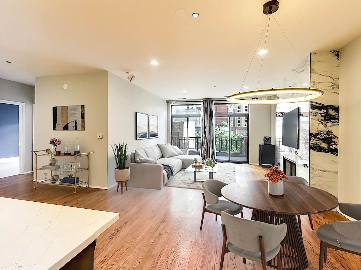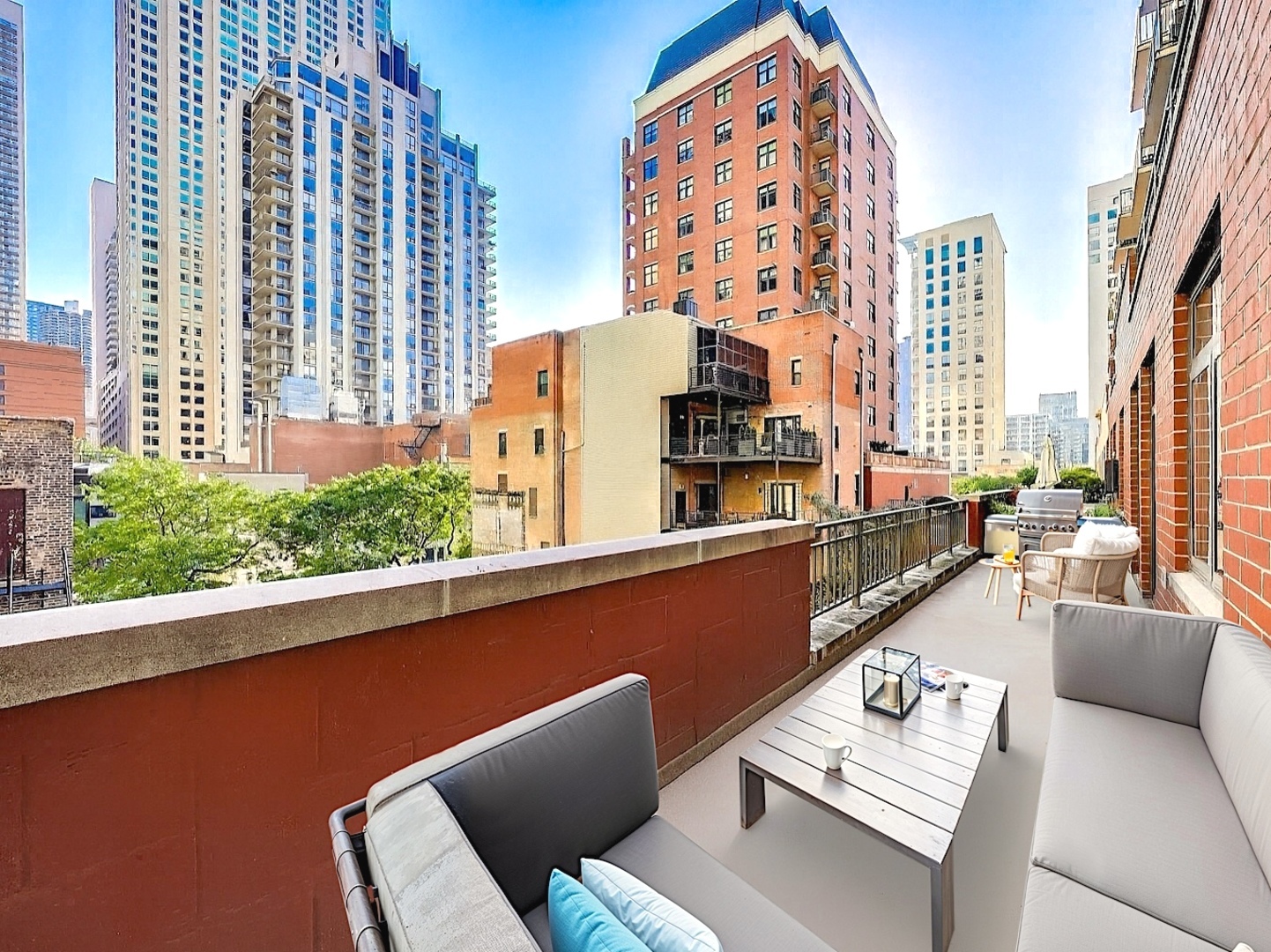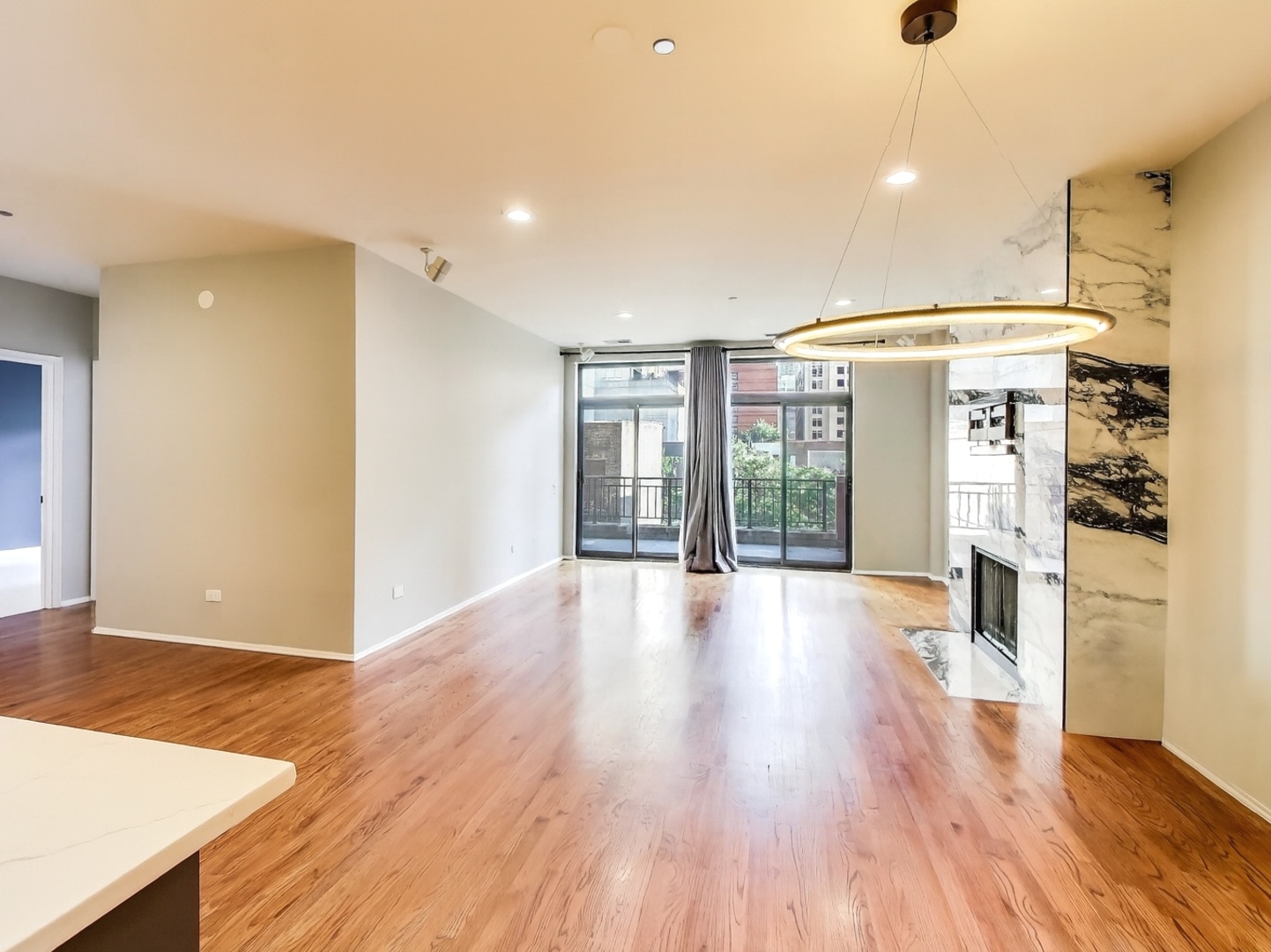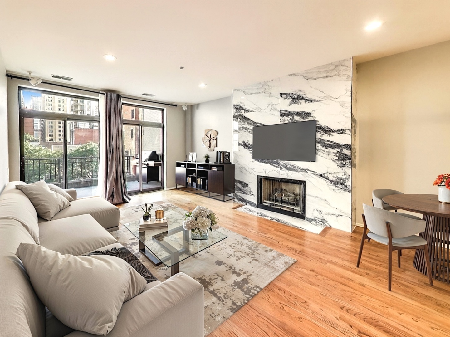 Welcome to 33 W Huron – a boutique gem in the heart of River North offering exclusivity, privacy, and unbeatable convenience. Renovated in 2022 with style and sophistication, this sunny south-facing 2BD/2BA spans over 1,500 SF of open living space, ideal for both entertaining and everyday comfort. The inviting foyer with custom herringbone tile leads to a chef’s kitchen featuring an oversized island, quartz counters, white cabinetry, marble backsplash, high-end stainless appliances, matte black fixtures, designer lighting, and a walk-in pantry. The kitchen opens to an expansive living/dining area anchored by a porcelain-wrapped fireplace, while the 36′ private terrace extends the living space outdoors. The impressive primary suite includes a custom walk-in closet plus a second large closet, easily accommodating a king bed and full furniture set. The spa-inspired ensuite bath offers a double vanity, quartz counters, soaking tub, and separate shower with designer tile and fixtures. A spacious second bedroom with a custom closet and is loicated across from the fully updated guest bath. A rare bonus – a separate laundry/utility room with side-by-side Samsung washer/dryer. Heated garage parking and adjacent full-size storage locker, conveniently located near the elevator, are included in the price! The secure, professionally managed building offers a full-time engineer, receiving room, and updated security/call system. All this just steps to Michigan Ave, top restaurants, cafes, Trader Joe’s, soon-to-be Aldi across the street, Northwestern, and OneChicago with Life Time Fitness, rooftop pool, beach club, and co-working spaces, and so much more. Easy access to 90/94, 290, and CTA Red/Brown lines. Move right in and enjoy the perfect blend of space, style, and location!