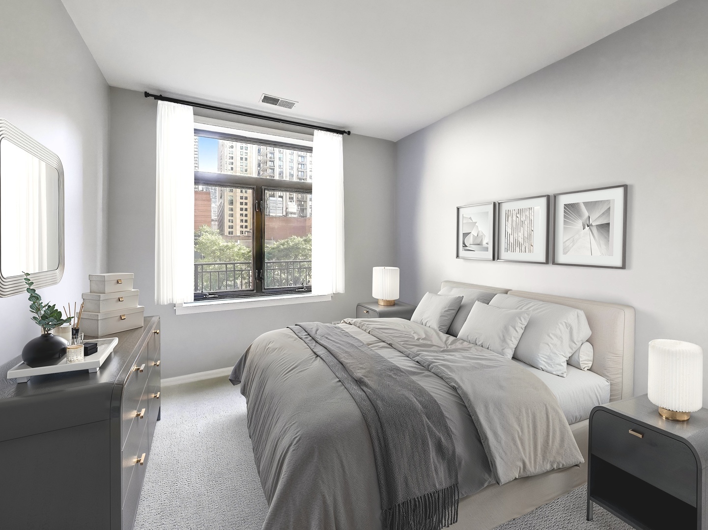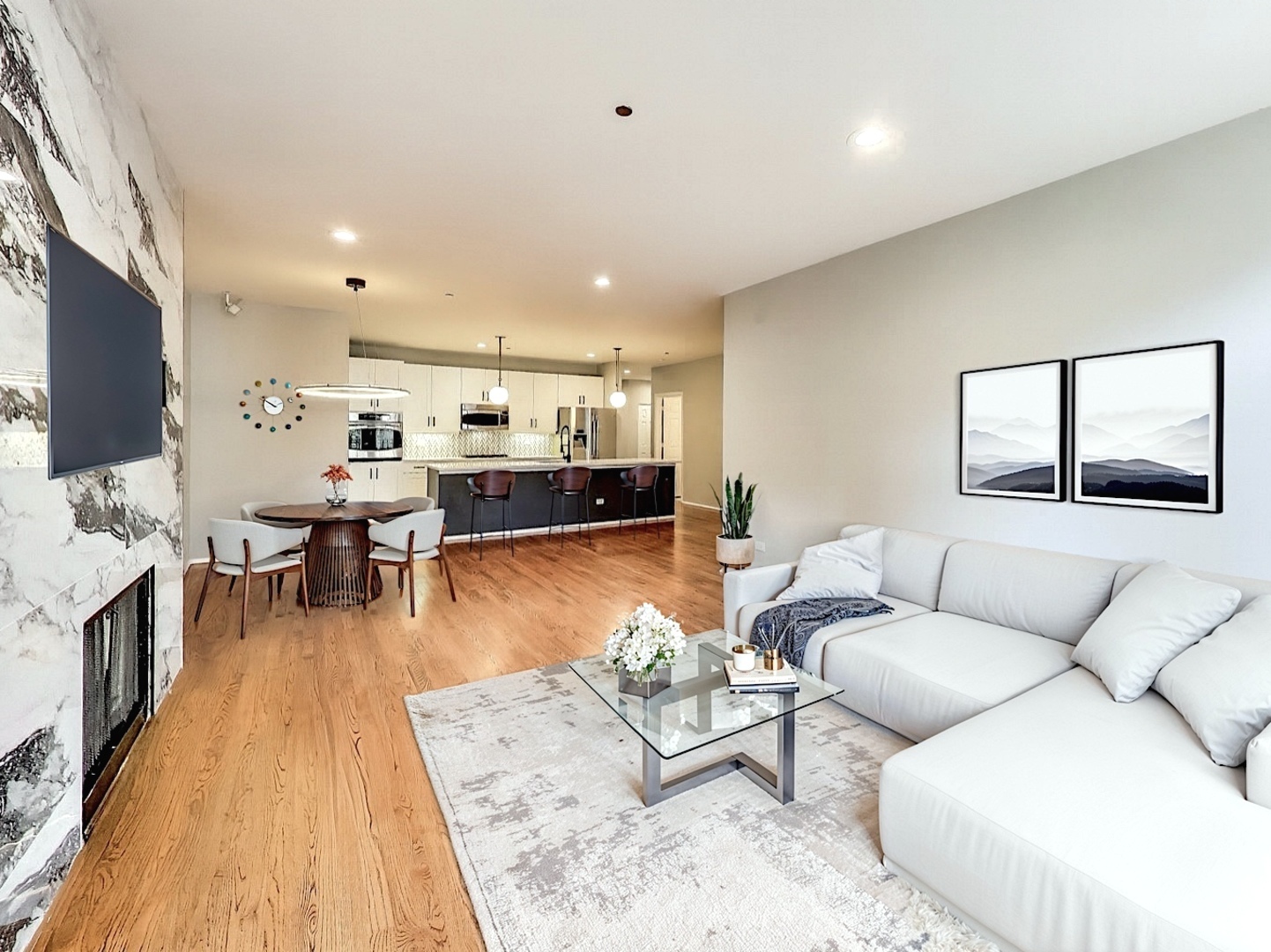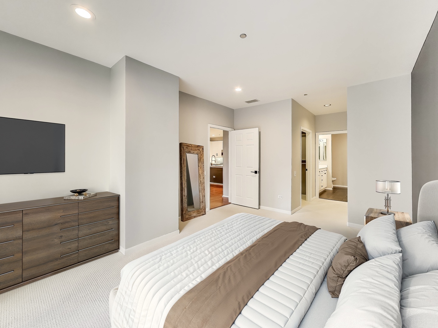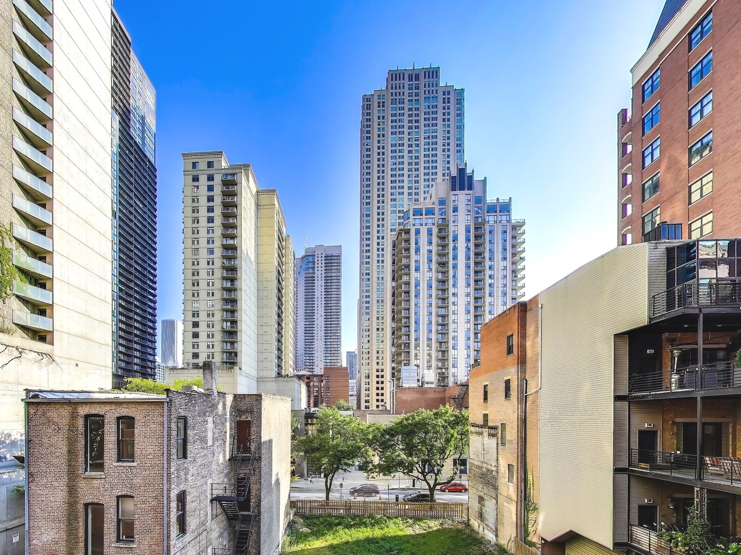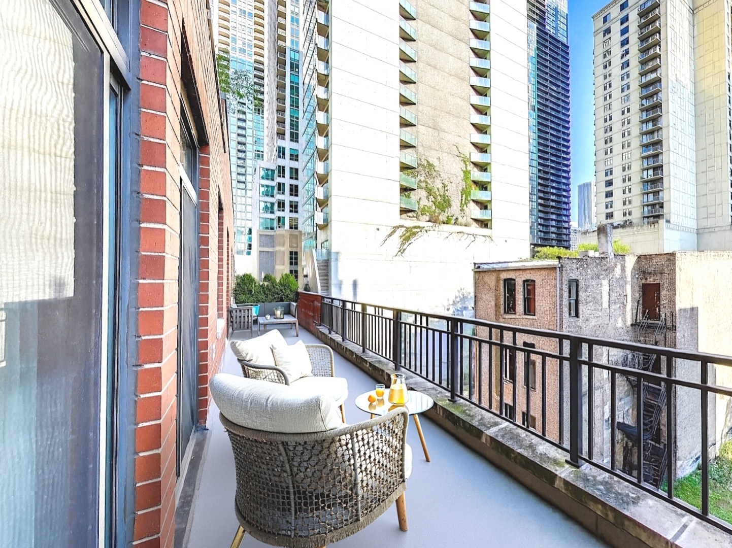 Welcome to 33 W Huron – a boutique gem in the heart of River North offering exclusivity, privacy, and unbeatable convenience. Renovated in 2022 with style and sophistication, this sunny south-facing 2BD/2BA spans over 1,500 SF of open living space, ideal for both entertaining and everyday comfort. The inviting foyer with custom herringbone tile leads to a chef’s kitchen featuring an oversized island, quartz counters, white cabinetry, marble backsplash, high-end stainless appliances, matte black fixtures, designer lighting, and a walk-in pantry. The kitchen opens to an expansive living/dining area anchored by a porcelain-wrapped fireplace, while the 36′ private terrace extends the living space outdoors. The impressive primary suite includes a custom walk-in closet plus a second large closet, easily accommodating a king bed and full furniture set. The spa-inspired ensuite bath offers a double vanity, quartz counters, soaking tub, and separate shower with designer tile and fixtures. A spacious second bedroom with a custom closet and is loicated across from the fully updated guest bath. A rare bonus – a separate laundry/utility room with side-by-side Samsung washer/dryer. Heated garage parking and adjacent full-size storage locker, conveniently located near the elevator, are included in the price! The secure, professionally managed building offers a full-time engineer, receiving room, and updated security/call system. All this just steps to Michigan Ave, top restaurants, cafes, Trader Joe’s, soon-to-be Aldi across the street, Northwestern, and OneChicago with Life Time Fitness, rooftop pool, beach club, and co-working spaces, and so much more. Easy access to 90/94, 290, and CTA Red/Brown lines. Move right in and enjoy the perfect blend of space, style, and location!