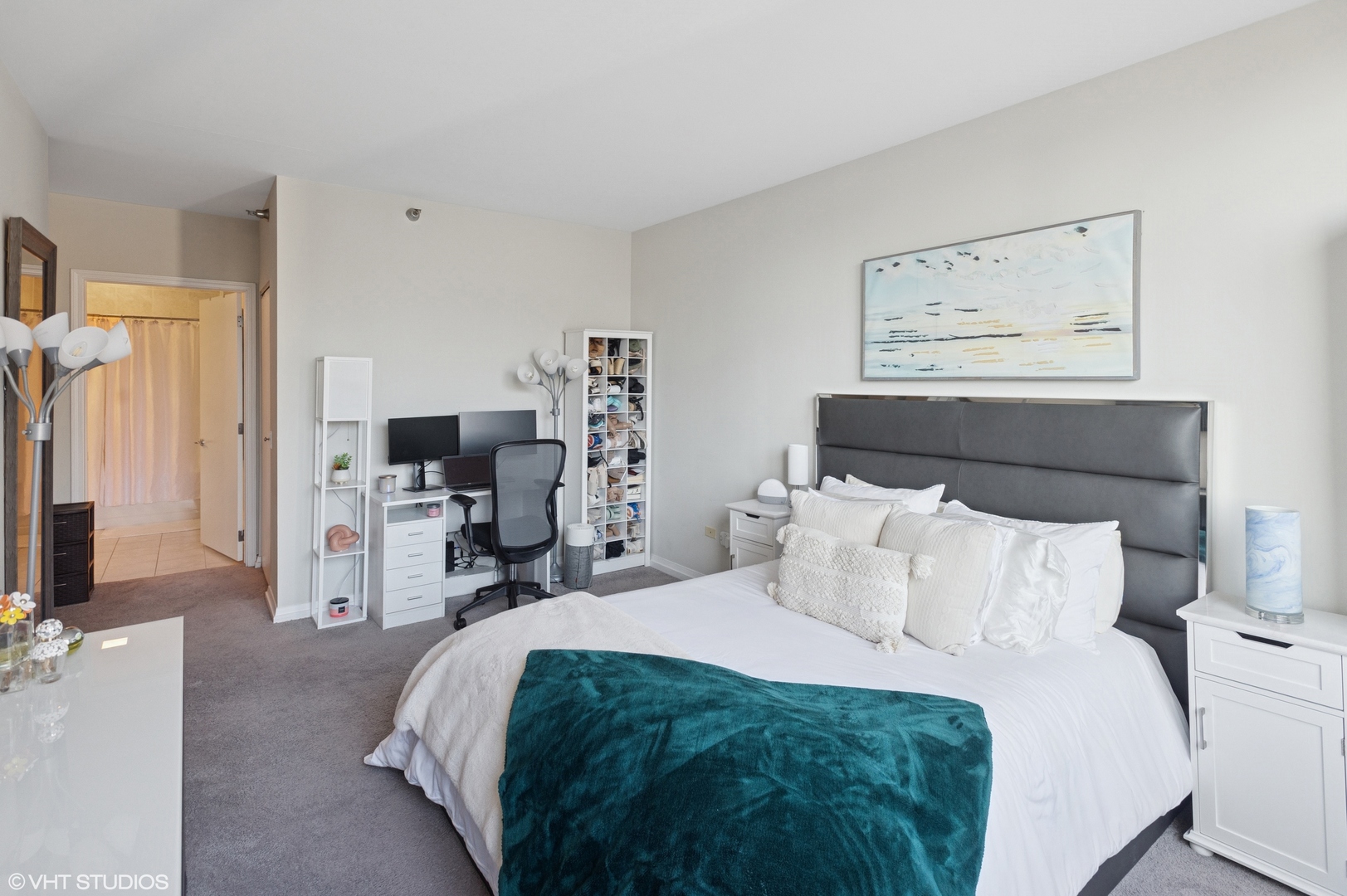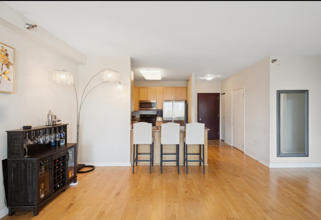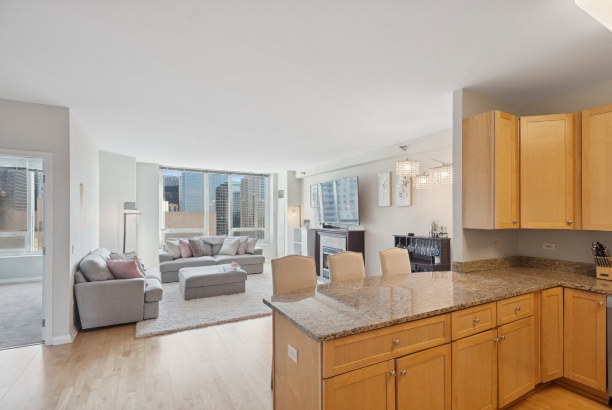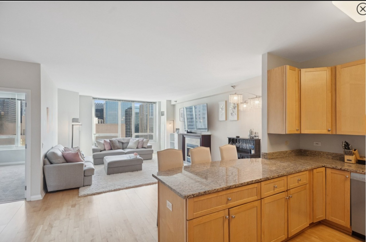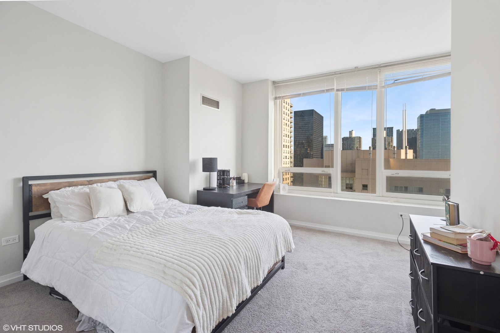 Meticulously maintained 2-bedroom in the heart of River North! This 40th floor enormous home features an expansive living area with plenty of room for a dining area, a cozy gas fireplace, a large wall of windows with extra-tall ceilings that enhance the sense of space. Each of the two bedrooms is generously sized and features its own walk-in closet. The open kitchen with high-end stainless-steel appliances features pristine maple cabinets which complement the generous island bar. And let’s not forget about the crown jewel of this residence – the unparalleled views of the city skyline that stretches beyond the neighboring buildings, offering a panoramic view of the skyline offering the ever-changing tapestry of city lights. 33 Ontario is a Full Service, Full Amenity high rise with an outdoor swimming pool, fitness center, 24hr attentive door staff, resident lounge, party room, bike storage & package delivery to your door. Exciting River North location; steps to everything including the Mag Mile, the Riverwalk, beach, running/bike path, 3 grocery stores (Whole Foods, Trader Joe’s, Jewel), parks, museums, cafes, theaters. Public transport outside your door, easy access to expressways. All-inclusive assessment includes internet, cable, heating, air conditioning, gas. Extremely well run and organized HOA with professional on-site management. Parking available to rent or purchase in attached garage. Walk Score 100