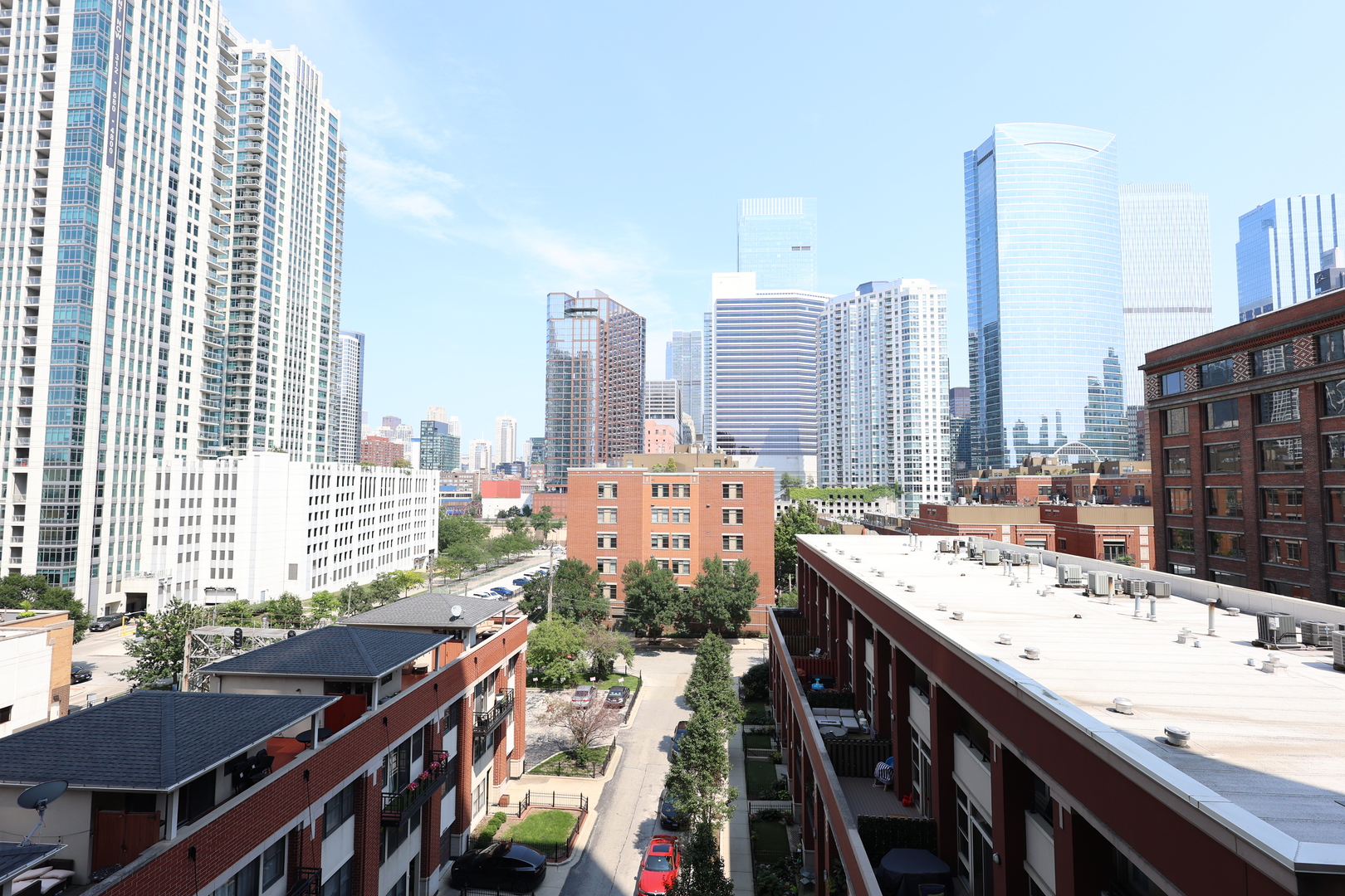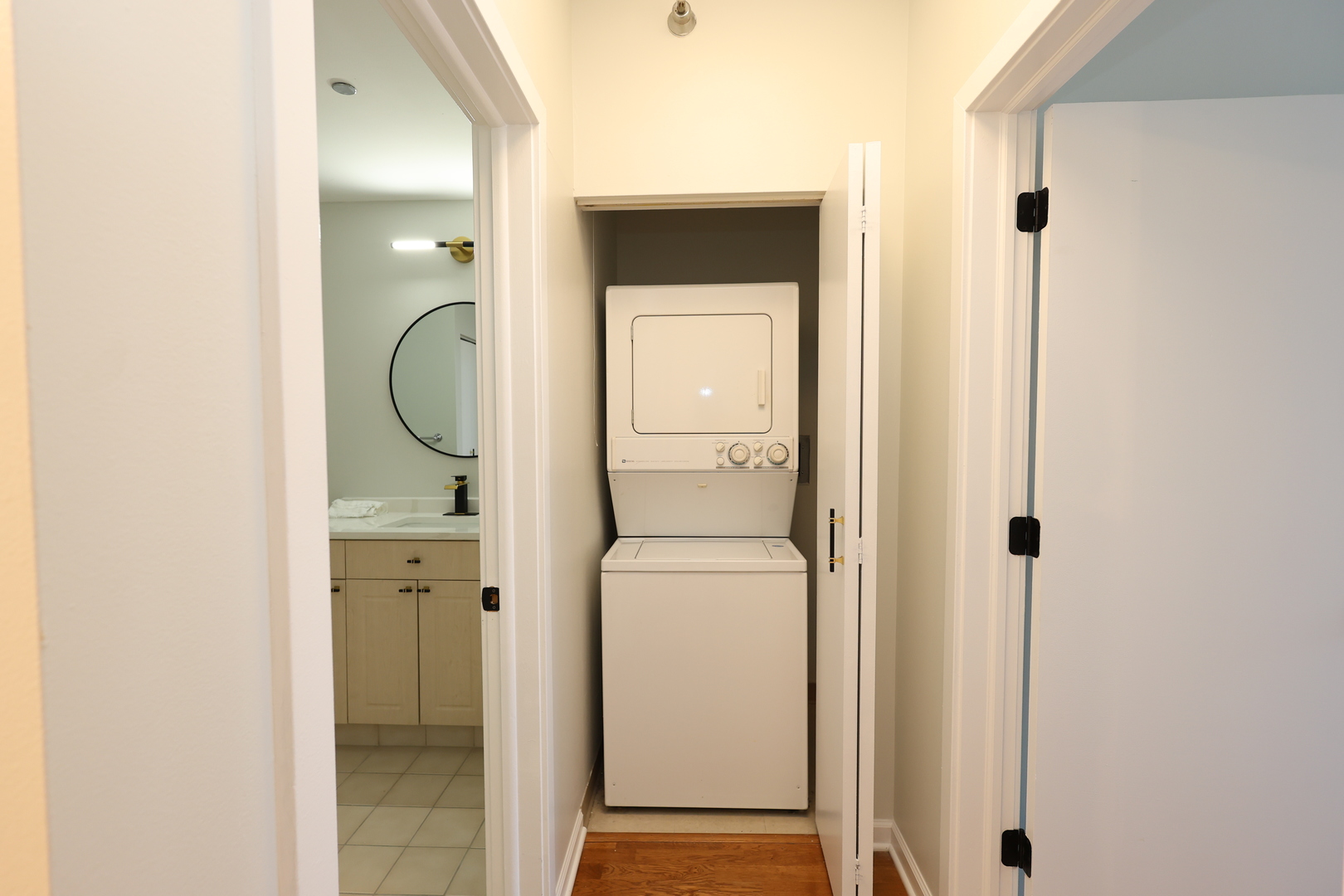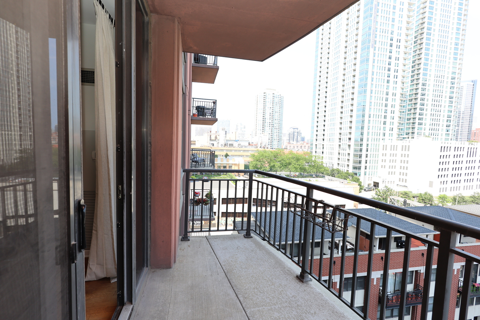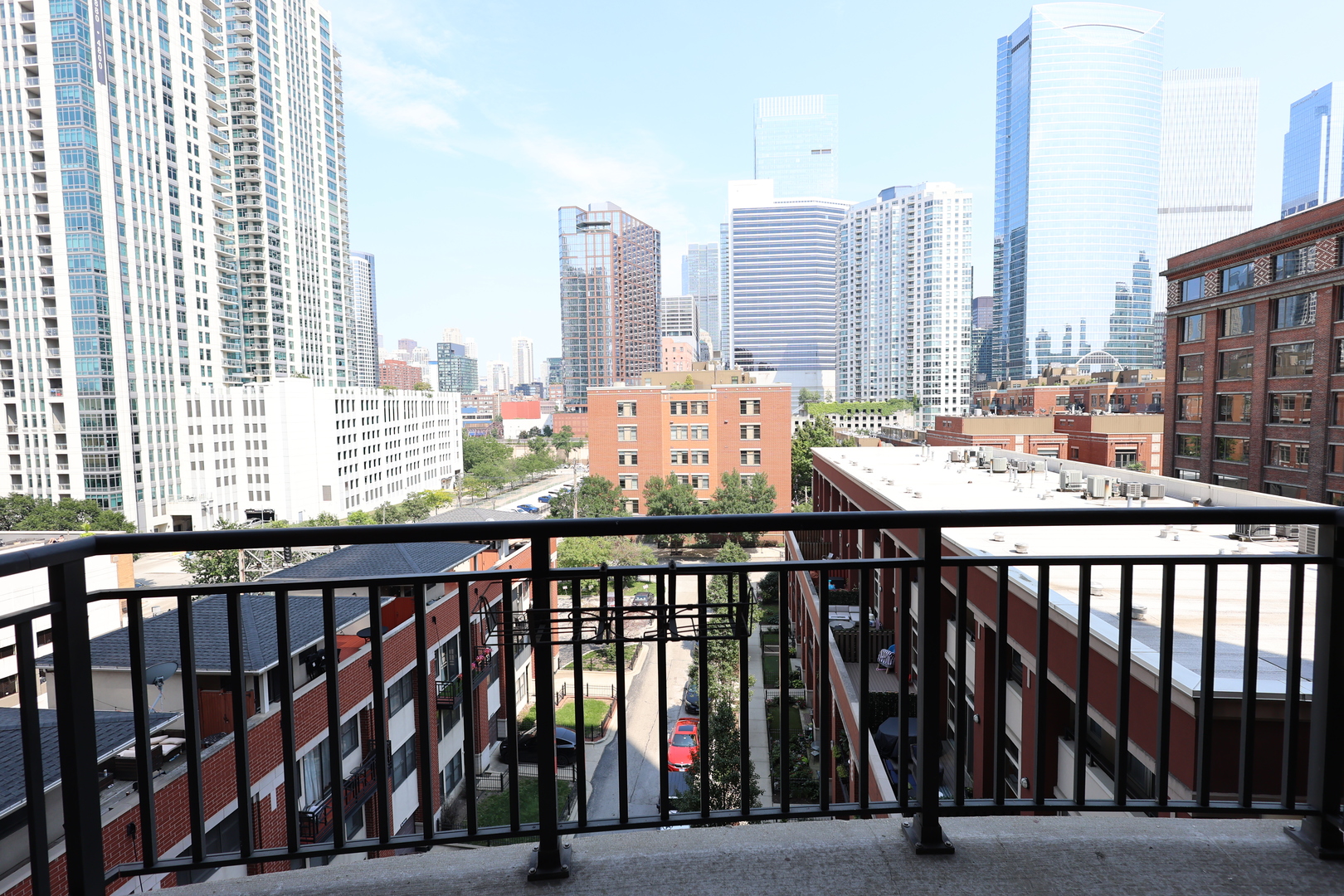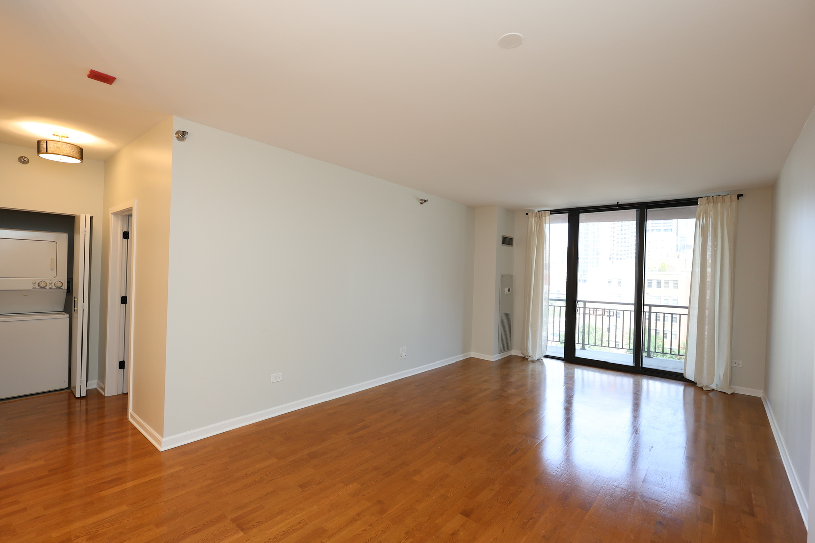Beautifully upgraded 1BR/1BA freshly painted east facing move-in ready condo at Kinzie Station located in the heart of Fulton Market/West Loop! Garage parking and additional storage included! The kitchen features brand-new Whirlpool stainless steel appliances-refrigerator, oven, microwave, and dishwasher-along with sleek quartz countertops and modern cabinetry, all complemented by engineered hardwood flooring throughout. The spacious, open layout offers a bright living area leading to a private balcony with stunning city skyline views! The bedroom offers spacious walk in closet and easily fits a king size bed and additional furniture. In-unit laundry, ample closet storage space, and central heating and cooling. The building offers full-service, 24-hour door staff, a fitness center, landscaped terrace, party room, Amazon Hub, on-site dry cleaner, and a dog relief area. Pets friendly. The monthly HOA covers gas, heat, A/C, cable, internet, water, and building amenities. Unbeatable location walking distance to restaurants and grocery stores, Metra, CTA Green/Pink/Blue lines, and major expressways-ideal for modern city living. Come to see it today!
