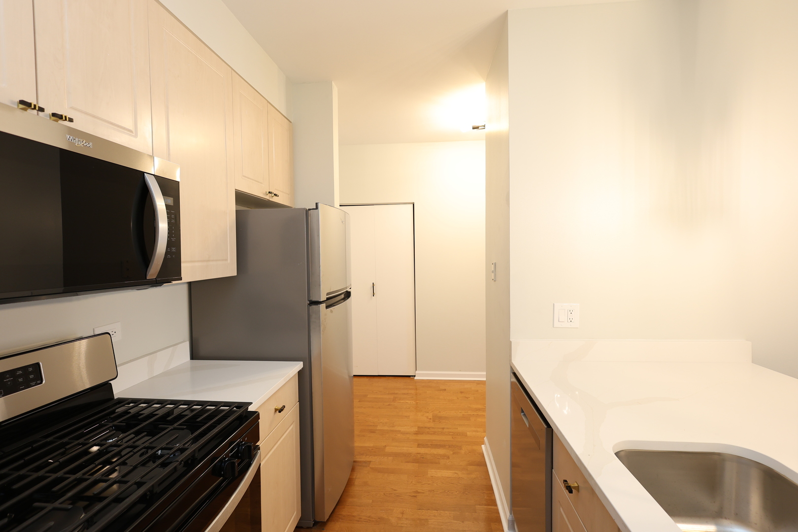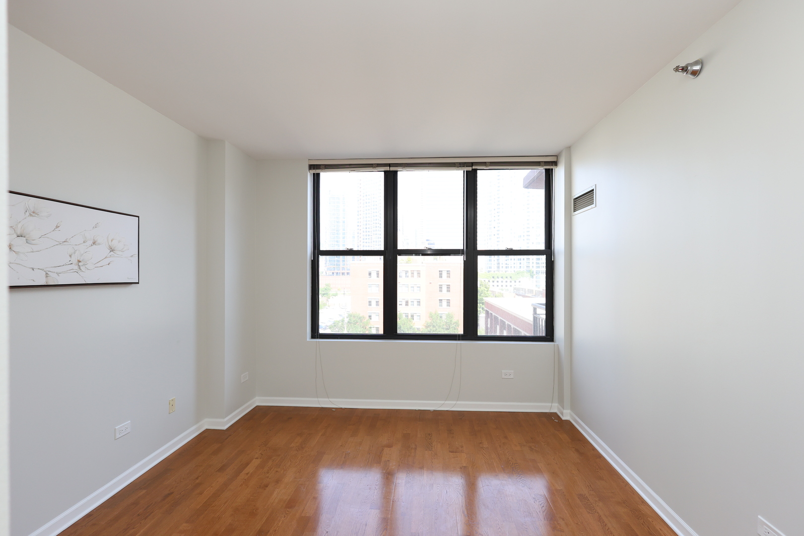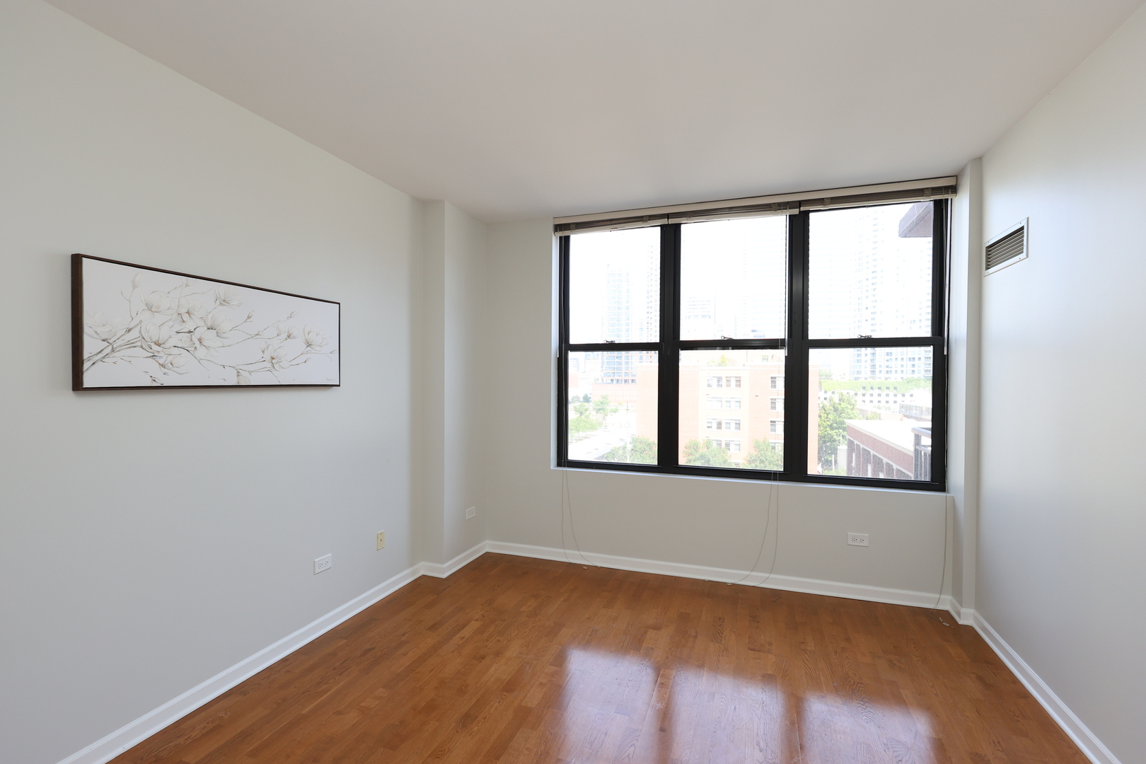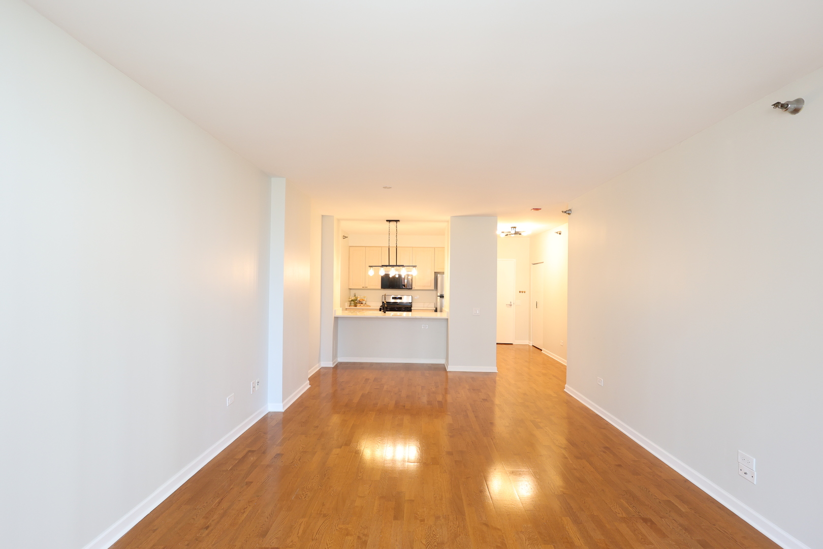 Beautifully upgraded 1BR/1BA freshly painted east facing move-in ready condo at Kinzie Station located in the heart of Fulton Market/West Loop! Garage parking and additional storage included! The kitchen features brand-new Whirlpool stainless steel appliances-refrigerator, oven, microwave, and dishwasher-along with sleek quartz countertops and modern cabinetry, all complemented by engineered hardwood flooring throughout. The spacious, open layout offers a bright living area leading to a private balcony with stunning city skyline views! The bedroom offers spacious walk in closet and easily fits a king size bed and additional furniture. In-unit laundry, ample closet storage space, and central heating and cooling. The building offers full-service, 24-hour door staff, a fitness center, landscaped terrace, party room, Amazon Hub, on-site dry cleaner, and a dog relief area. Pets friendly. The monthly HOA covers gas, heat, A/C, cable, internet, water, and building amenities. Unbeatable location walking distance to restaurants and grocery stores, Metra, CTA Green/Pink/Blue lines, and major expressways-ideal for modern city living. Come to see it today!