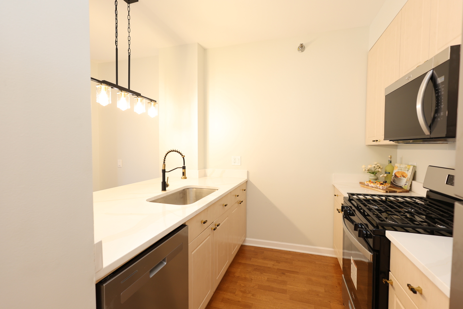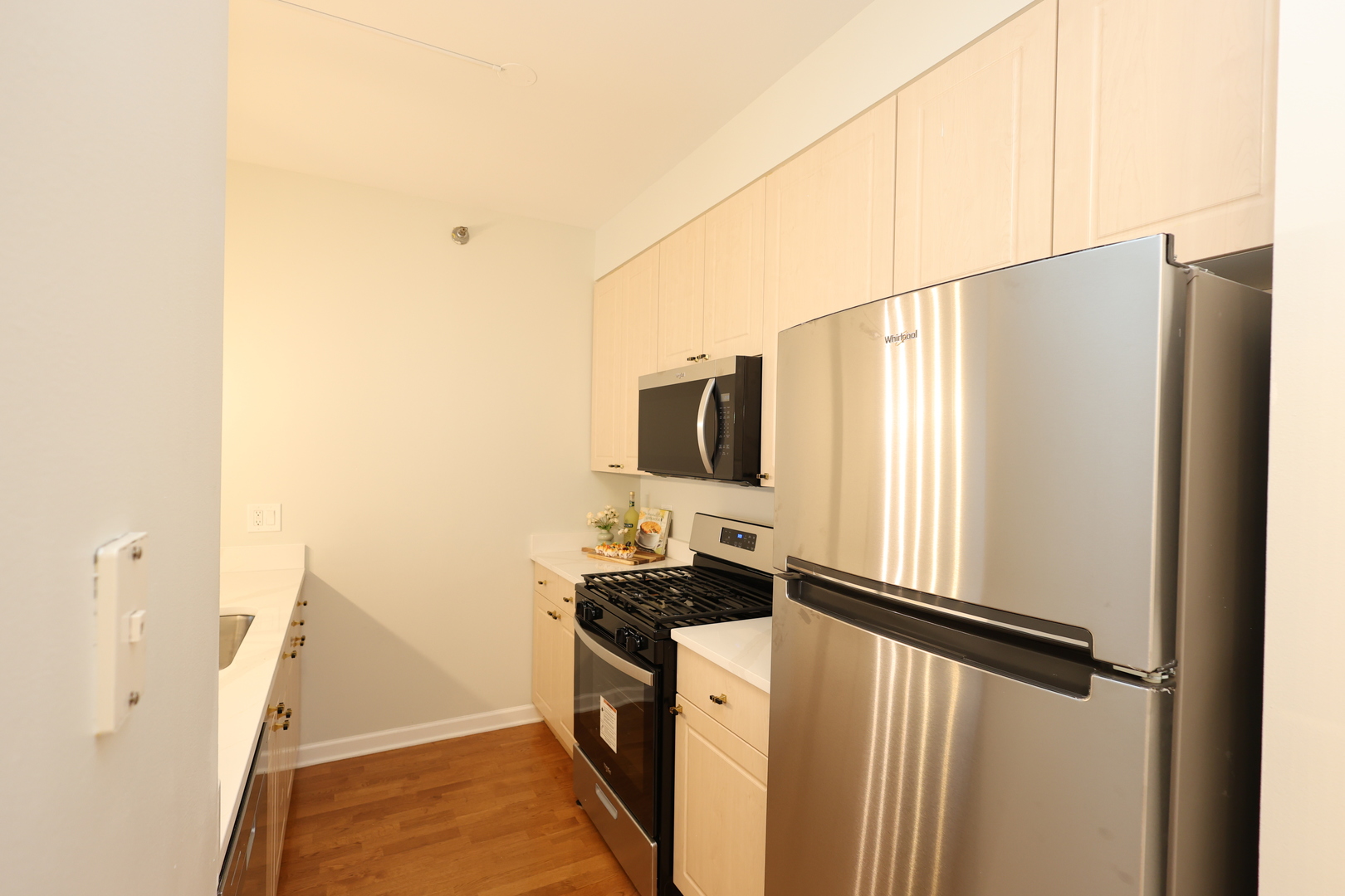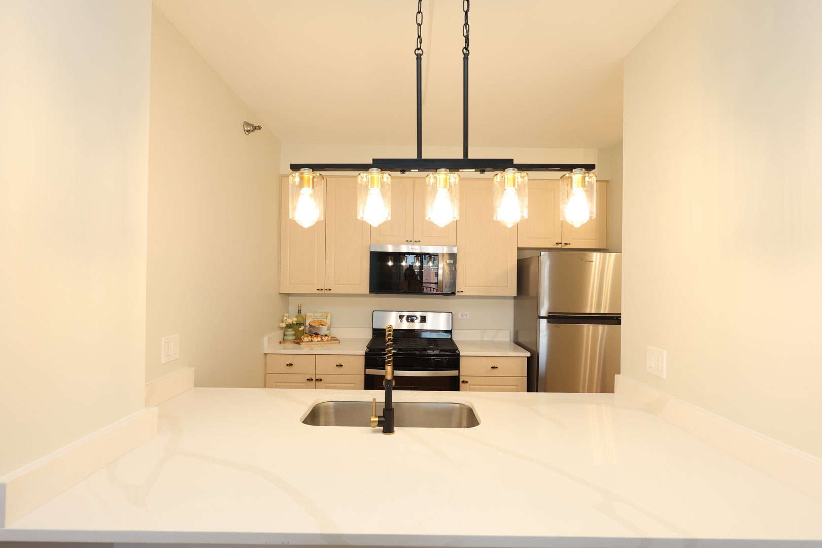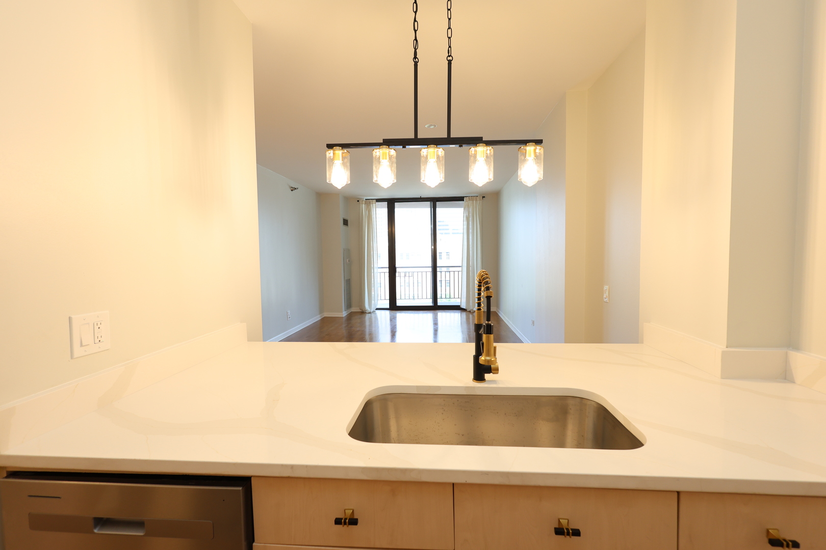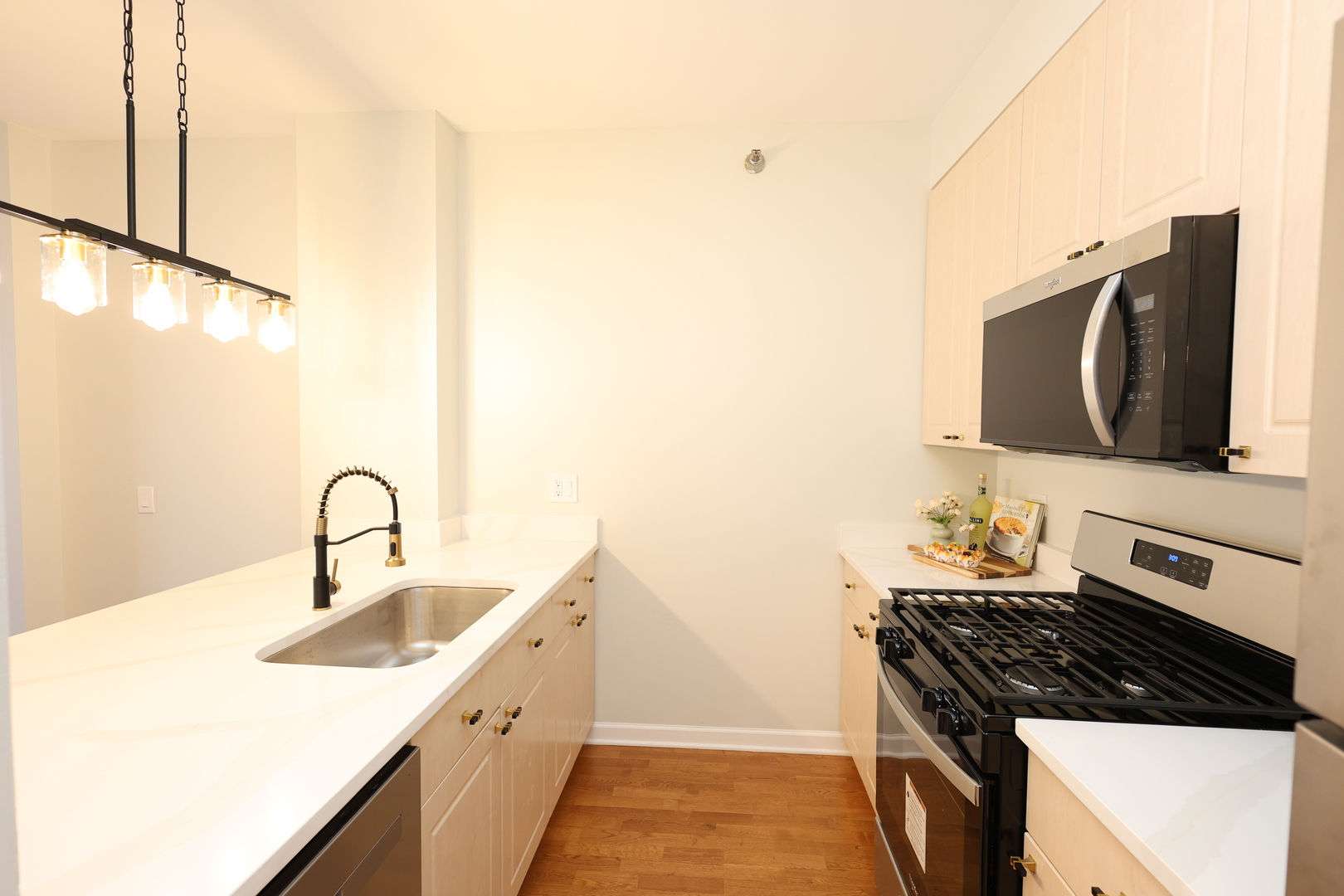Beautifully upgraded 1BR/1BA freshly painted east facing move-in ready condo at Kinzie Station located in the heart of Fulton Market/West Loop! Garage parking and additional storage included! The kitchen features brand-new Whirlpool stainless steel appliances-refrigerator, oven, microwave, and dishwasher-along with sleek quartz countertops and modern cabinetry, all complemented by engineered hardwood flooring throughout. The spacious, open layout offers a bright living area leading to a private balcony with stunning city skyline views! The bedroom offers spacious walk in closet and easily fits a king size bed and additional furniture. In-unit laundry, ample closet storage space, and central heating and cooling. The building offers full-service, 24-hour door staff, a fitness center, landscaped terrace, party room, Amazon Hub, on-site dry cleaner, and a dog relief area. Pets friendly. The monthly HOA covers gas, heat, A/C, cable, internet, water, and building amenities. Unbeatable location walking distance to restaurants and grocery stores, Metra, CTA Green/Pink/Blue lines, and major expressways-ideal for modern city living. Come to see it today!