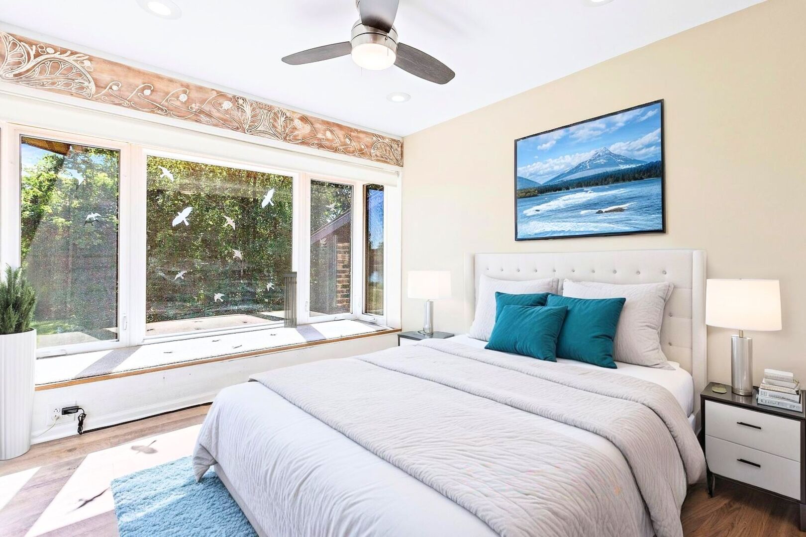 If every day you could be presented with the opportunity to live your best life shoreside, would you take it? it’s irresistible and something so radically different while set within the confines of solitude. Short of 10 acres this property offers the magical holistic healing approach with the calming sounds of water passing under the bridge from one pond to another. A sprawling ranch overshadows the private pond with magnificent panoramic aerial views from the foyer out the back of the home. The expansive family room features a gorgeous stone fireplace, exposed banister to lower level, easy access to a stunning eat-in kitchen and a wall of sliding glass doors with balcony access and mesmerizing views. The kitchen is finished with 36″ solid cherry cabinets, granite counters, high-end stainless-steel appliances, and breakfast bar with built-in organizers. Down the hallway is equally impressive with 3 generous bedrooms and 2 full bathrooms. 2 out of 3 bedrooms have sliding glass doors to an outdoor courtyard, 1 is a primary suite with direct access to an updated bathroom with double vanities and a shower/tub combination. The remaining 2 bedrooms share a full hall bathroom. Full finished walkout lower level for media or game area and a separate laundry/storage room. 2-car detached garage! Near downtown Barrington, Metra, highway, shops, restaurants and so much more! There are 2 fully equipped guest homes on the property as well with a private drive to each home. The 1st guest home offers 2 bedrooms, 1 on the main and 1 in the 2nd floor loft along with a full bathroom and laundry room. The 2nd guest home showcases 1 bedroom and 1.5 bathrooms.