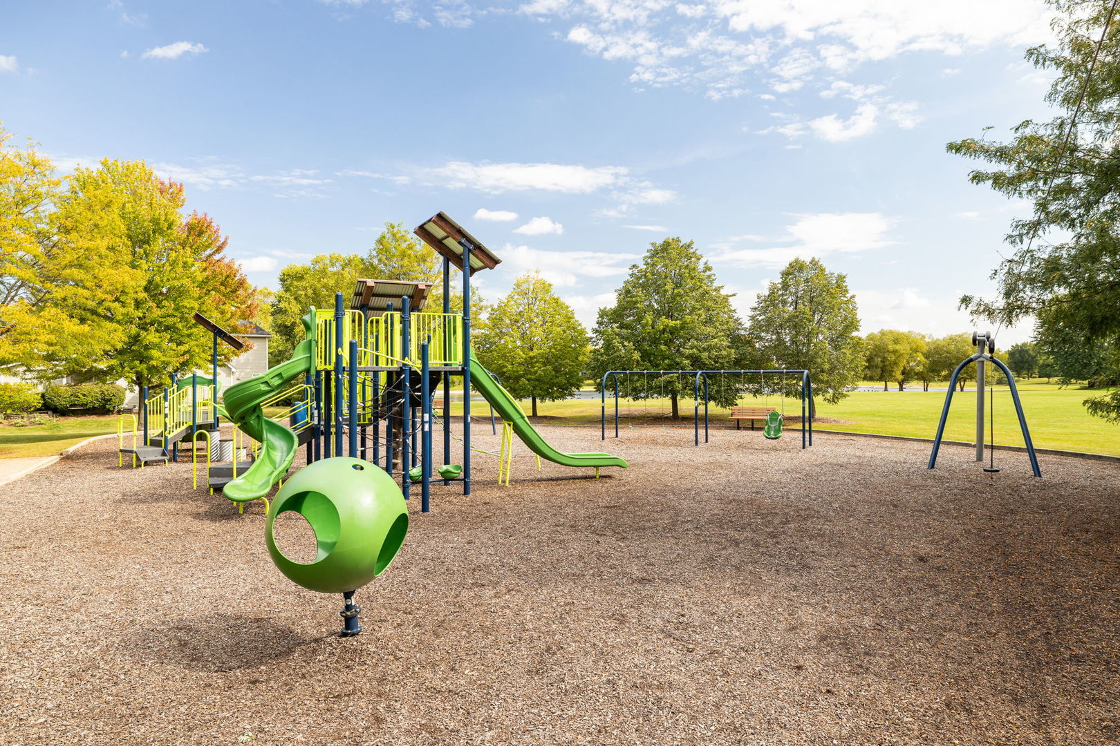 HEATHERSTONE GEM WITH A BACK VIEW YOU JUST CAN’T BEAT! Situated on a premium lot, backing to the 22nd green of neighboring, private White Eagle Golf Club, this home may just check all of the boxes! The large, welcoming front porch greets you and leads you in. Once inside, you’ll note the hardwood floors, freshly installed carpeting (10/31/25) and crisp white trim & doors. The spacious, 2-story living room floods the home with natural light and leads you into the dining room. Moving along, the kitchen was refreshed a few years back with refinished cabinets, updated stainless steel appliances and includes granite counters, white tile backsplash, an eating area and a closet pantry. The open floor plan flows right into the family room, which features a brick gas fireplace. The back of the home is covered with windows and really shows off the resort-like view of the pond and putting green. A conveniently appointed first floor laundry closet and powder room complete the main level. Upstairs, you’ll find the vaulted primary suite, which includes a recently refreshed bathroom with dual sink vanity, jetted tub, separate shower, and private water closet plus a large walk-in closet. The two other bedrooms share the full hallway bathroom, which was also given a recent facelift, including new flooring and a dual sink vanity. The upstairs loft, with a pocket door, is a generous size and includes a cutout that can easily be closed off to make it into a 4th bedroom. Down in the finished basement, you’ll first pass a large, double door den that is currently being used as an office. Around the corner, is the play and rec room, which offer plenty of additional living space. A utility room provides for downstairs storage. Just off the kitchen eating area, you’ll walk out onto the deck and then down to the stone patio–both places for you to grill and gather. BRAND NEW ROOF just installed on 11/24/25! School bus service to all three IPSD 204 Schools. Excellent location, just down the street from the neighborhood park and so close to the restaurants, entertainment, grocery stores, fitness center(s) and shopping in Naperville Crossings. Just a few minutes to the Naperville Library, YMCA, walking trails, Commissioners Park, Frontier Park and Wolfs Crossing Park. Don’t miss this one!