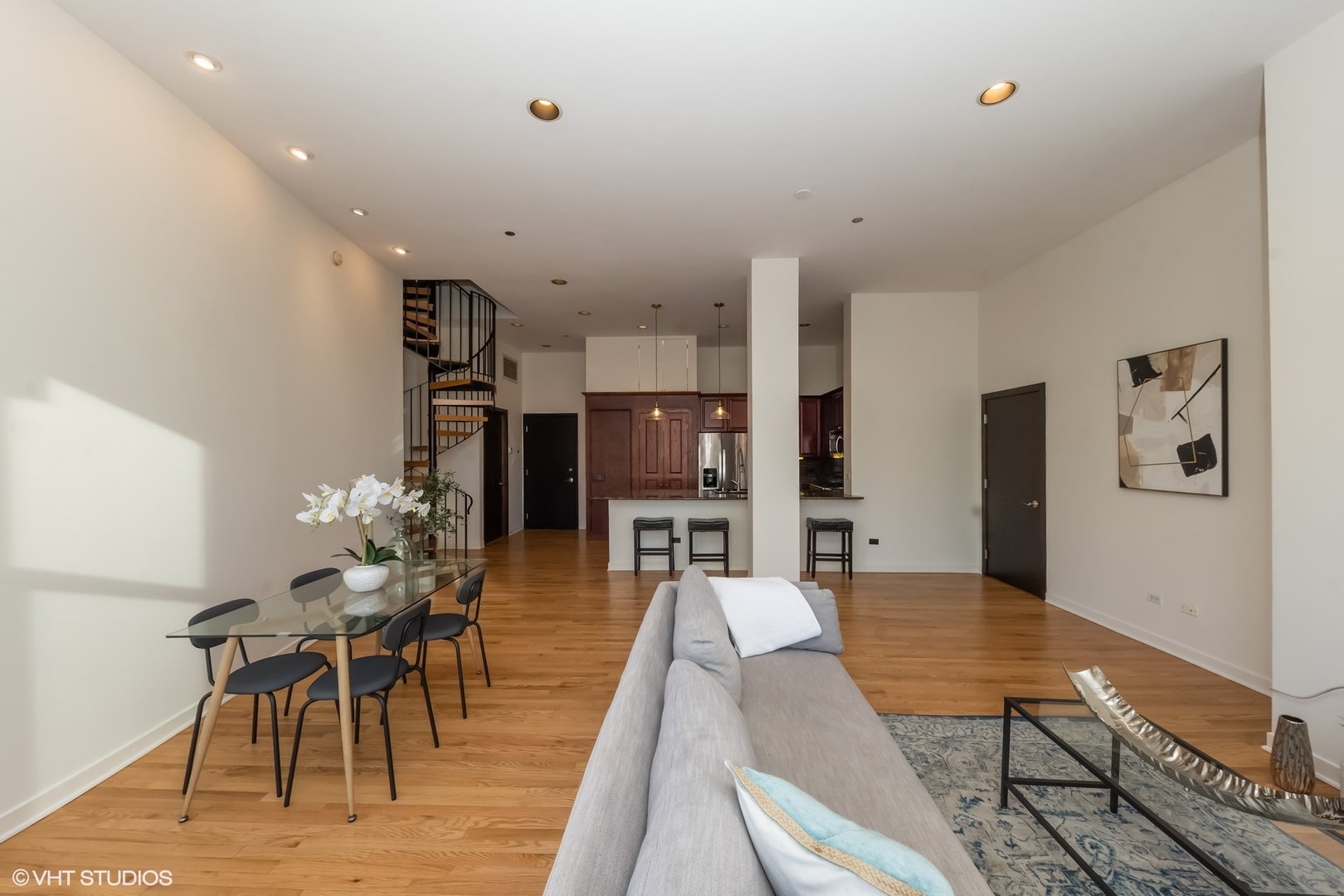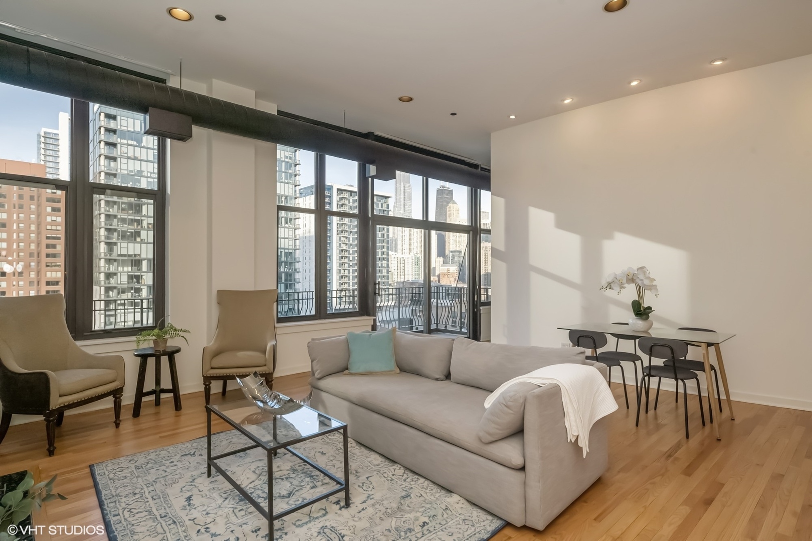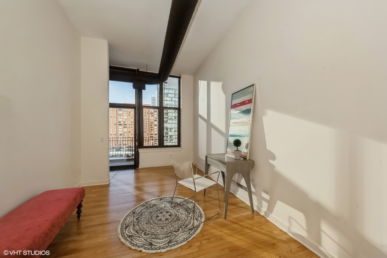 Bring us an offer! Seller ready to make a deal! Spacious and bright penthouse loft. 11ft ceilings and huge picture windows. The 2 private outdoor spaces are what really make this unit a standout; enjoy your balcony off of the main living space, and follow the spiral staircase up to your roof deck. So much potential to make the roof deck your own oasis in the middle of the bustling city. Large combined living and dining space with gas fireplace. The kitchen features gas appliances and a sizable granite counter-space with room for 4 stools at the breakfast bar. Your primary suite has a wonderfully sized walk-in closet as well as separate built in drawers and additional linen closet. En-suite bathroom with detached shower and tub as well as dual sinks. The second bedroom is connected to the second bath through another huge closet space! W/D in unit, newly re-finished floors and paint, heated parking space included in the price. Beautiful space, you must see!