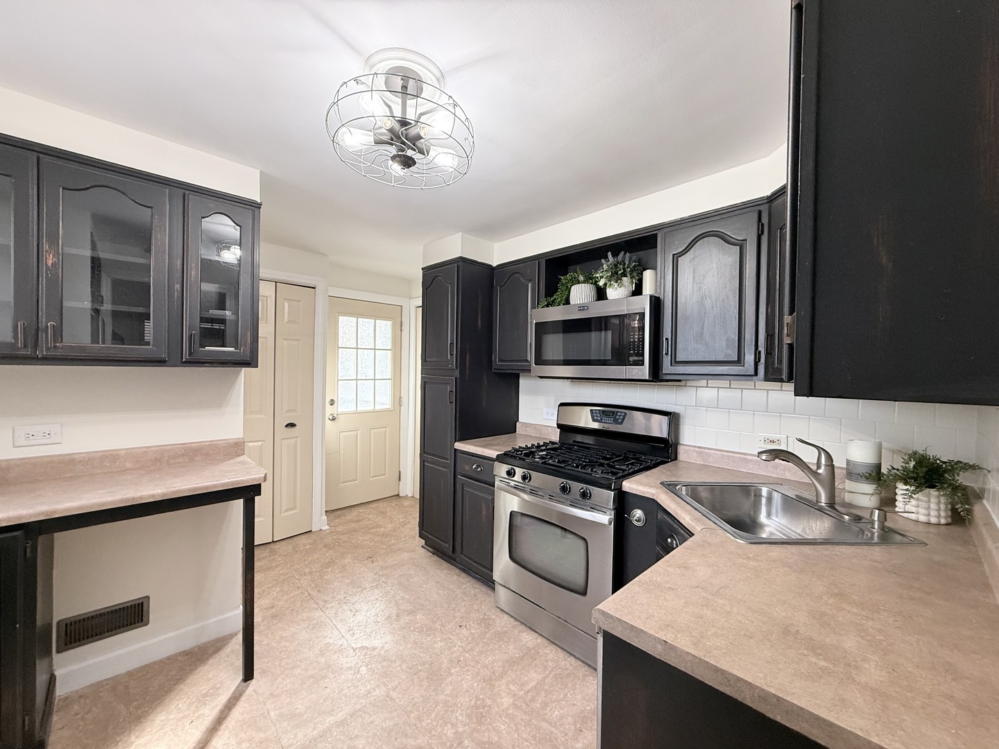 MOVE-IN READY HOME IS SOLD WITH CERTIFICATE OF COMPLIANCE! NOTHING TO DO BUT TO MOVE IN! Timeless Georgian Charm with Rare Two-Story Addition in Highly Desirable Blvd Manor – First Time on the Market in Over 40 Years! Welcome to this gorgeous all-brick oversized Georgian-style home , lovingly cared for and meticulously maintained by the same family for over four decades. This exceptional residence blends classic character with modern comfort, offering 5 spacious bedrooms and 1.5 baths across a thoughtfully expanded floor plan. Step inside to find gleaming oak hardwood floors throughout, a formal dining room with elegant wainscoting, and abundant natural light streaming through newer windows adorned with charming shutters. The main level features one bedroom, while the second floor hosts four additional bedrooms – including one adjoining room, perfect for a nursery, office, or walk-in closet. The eat-in kitchen boasts stainless steel appliances and generous cabinet space, ideal for family gatherings or casual meals. The semi-finished basement offers a cozy recreation room and a large storage/mechanical area with laundry – providing both comfort and functionality. Enjoy peace of mind with a newer roof and furnace, ensuring years of worry-free living. Set on a large corner lot, this home showcases wonderful curb appeal and extra outdoor space. You’ll love the beautifully landscaped, fully fenced yard, featuring a brick-paved patio perfect for entertaining, and a 2.5-car garage with ample parking and storage. Located in an unbeatable Blvd Manor location in Cicero, this property is just steps from local parks and the community pool, offers easy access to I-55, and is only 15 minutes from downtown Chicago – the perfect blend of suburban tranquility and city convenience. Lovingly maintained, move-in ready, and rich with timeless charm, this expanded Georgian is a true gem – a rare find you won’t want to miss!