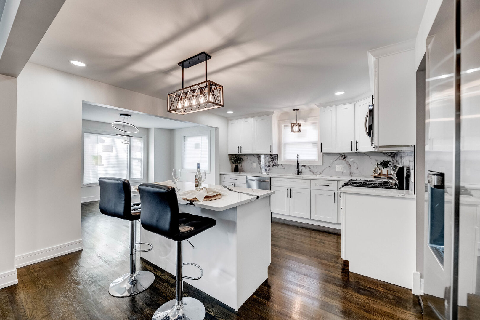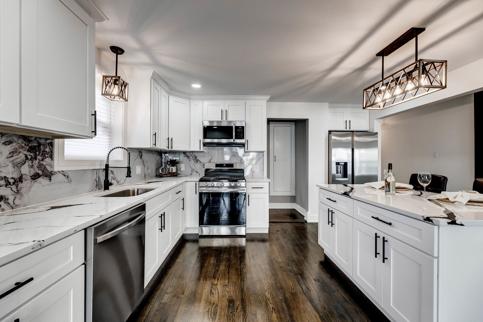 Stunning fully renovated 5BD/3BA home offering modern luxury throughout. Features include an open-concept main level with custom accent wall, refinished hardwood floors, and a designer kitchen with white shaker cabinets, quartz countertops, island, and stainless steel appliances. All bathrooms have been beautifully updated with premium tile and contemporary finishes. Spacious bedrooms, plus a fully finished lower level perfect for extra living or entertaining. Major updates include new roof, windows, AC, and furnace. Large yard and detached garage complete this turn-key property. Nothing to do but move in!