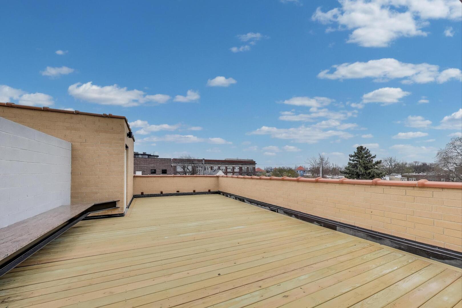 All Brick and High-Quality New Construction in Prime Avondale location, by Masonry contractor/ Builder with 25+ years of experience. Located on a tree-lined street, this boutique development on a double lot, offers a blend of comfort and style in a tranquil setting. This 3 beds 2 baths Penthouse Unit is featuring a spacious front balcony along with a Rooftop deck complete with a beautifully constructed pergola that provides both shade and style. The deck is also equipped with multiple electric outlets, offering endless possibilities for customization and personal touches. Gather with friends and family in the inviting custom seating area featuring an elegant granite top, perfect for hosting gatherings or enjoying quiet evenings under the stars. Plus, the outdoor furniture, included in the price, adds a touch of comfort and charm, making this space an ideal retreat for relaxation and entertaining. Custom finishes, sleek design and attention to detail throughout, an open kitchen with a large island with waterfall edge and premium Bosch appliances, top-quality floor to ceiling flat panel cabinets, pantry closet, tons of storage, hardwood floors, solid core doors, quartz countertops and oversized European multi-position windows that admit Tons of natural light…makes this home truly rear find and Great Value for the space and location. Perfectly located just about 0.5 mile from CTA Blue Line and local stores, restaurants, and gyms nearby, and easy access to I 90/94. Garage parking is included in price. Interior pictures of Unit 2S, but represent the same finishes.