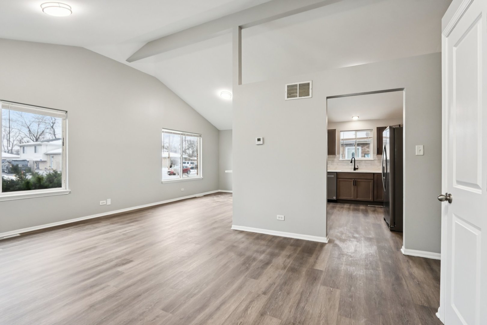 Beautifully updated 4-bedroom, 2-bath split-level home on a quiet residential street in Markham built in 2006 and rehabbed in 2025. Step inside to soaring ceilings and an open-concept first floor featuring a bright living room, dining area, and modern kitchen-perfect for everyday living and entertaining. The kitchen has been fully updated with new flooring, contemporary cabinetry, and a large breakfast bar that anchors the space. The lower level offers a spacious family room, an additional bedroom, a full bathroom, and a dedicated laundry area, with convenient access to the backyard and attached two-car garage. Upstairs, you’ll find two generously sized bedrooms with ample closet space, plus a large primary bedroom with a walk-in closet. The second-floor bathroom features a double vanity and dual access from both the hallway and the primary bedroom. Outside, enjoy a backyard and the comfort of a two-car garage, all located on a peaceful, low-traffic street. Move-in ready and thoughtfully updated, this home offers space, functionality, and modern comfort in a desirable Markham location.