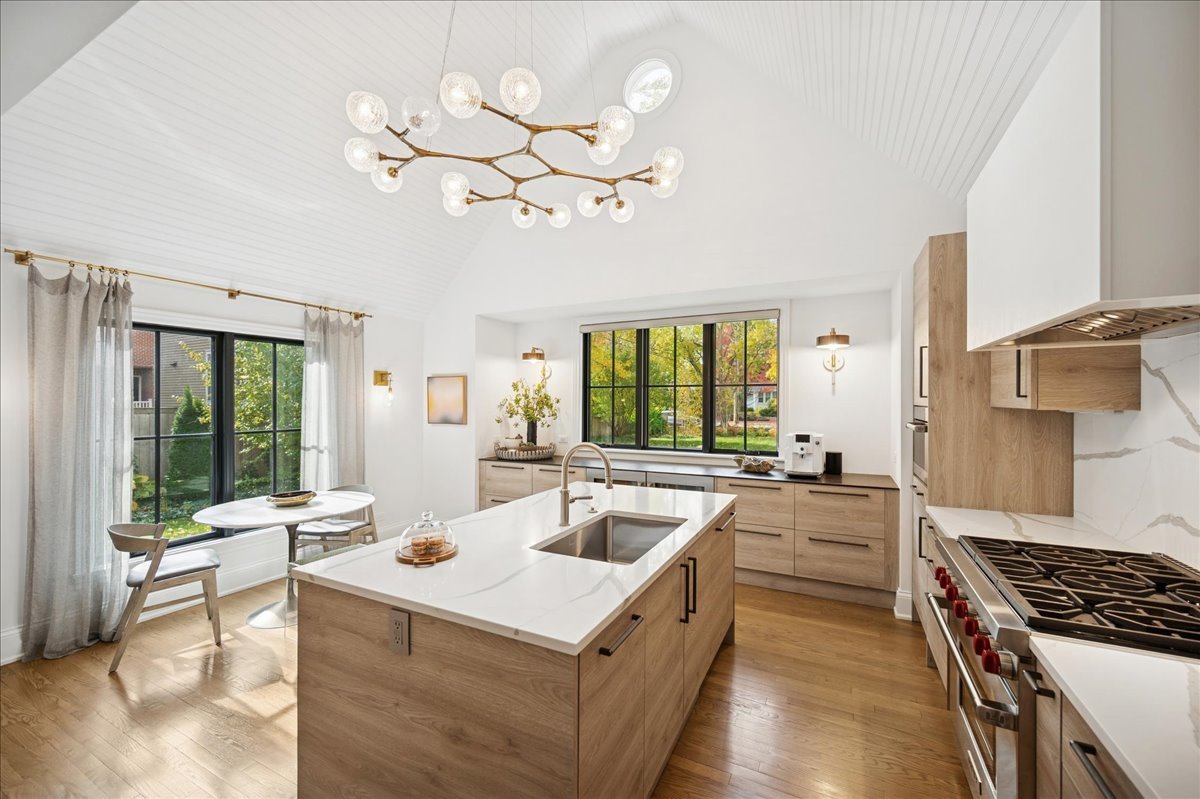 This meticulously renovated and turn-key home offers a blend of exceptional design and tranquil privacy. Completely gutted and renovated in 2022, every corner of this three-story residence has been thoughtfully finished to suit modern living. The first floor welcomes you with a welcoming entrance hall that seamlessly connects to the family room, kitchen, dining, and living room – or an ideal first floor office- and opening up to stunning patio views. The kitchen is fabulous with its high, cathedral ceilings, a central island, custom cabinetry, and top-of-the-line appliances. Also on this floor are a private powder room, a spacious mudroom adjacent to the attached garage, and a large laundry room. Ascending the custom staircase to the second floor, you’ll find four bedrooms and three full bathrooms. The primary suite is a romantic retreat with serene views, a luxurious bath, and a generous walk-in closet. Three additional bedrooms, two with en suite bathrooms, round out this level. The versatile third floor offers a perfect escape, whether as a hangout spot, a large office, or a guest suite complete with a full bath. Outside, the expansive 61 x 170 lot provides ample play space, while the patio serves as a serene setting for relaxation or entertaining. Conveniently located just steps from Lake Michigan, nearby schools,(Greeley and New Trier), the Indian Hill train stop, and the bike path, this home is truly a dream come true.