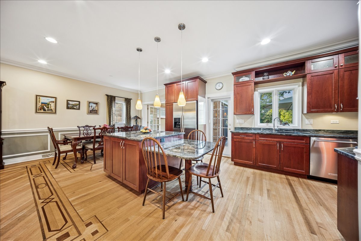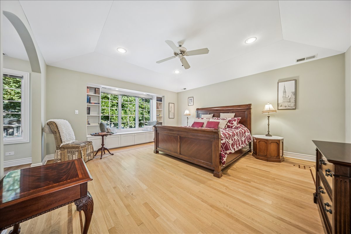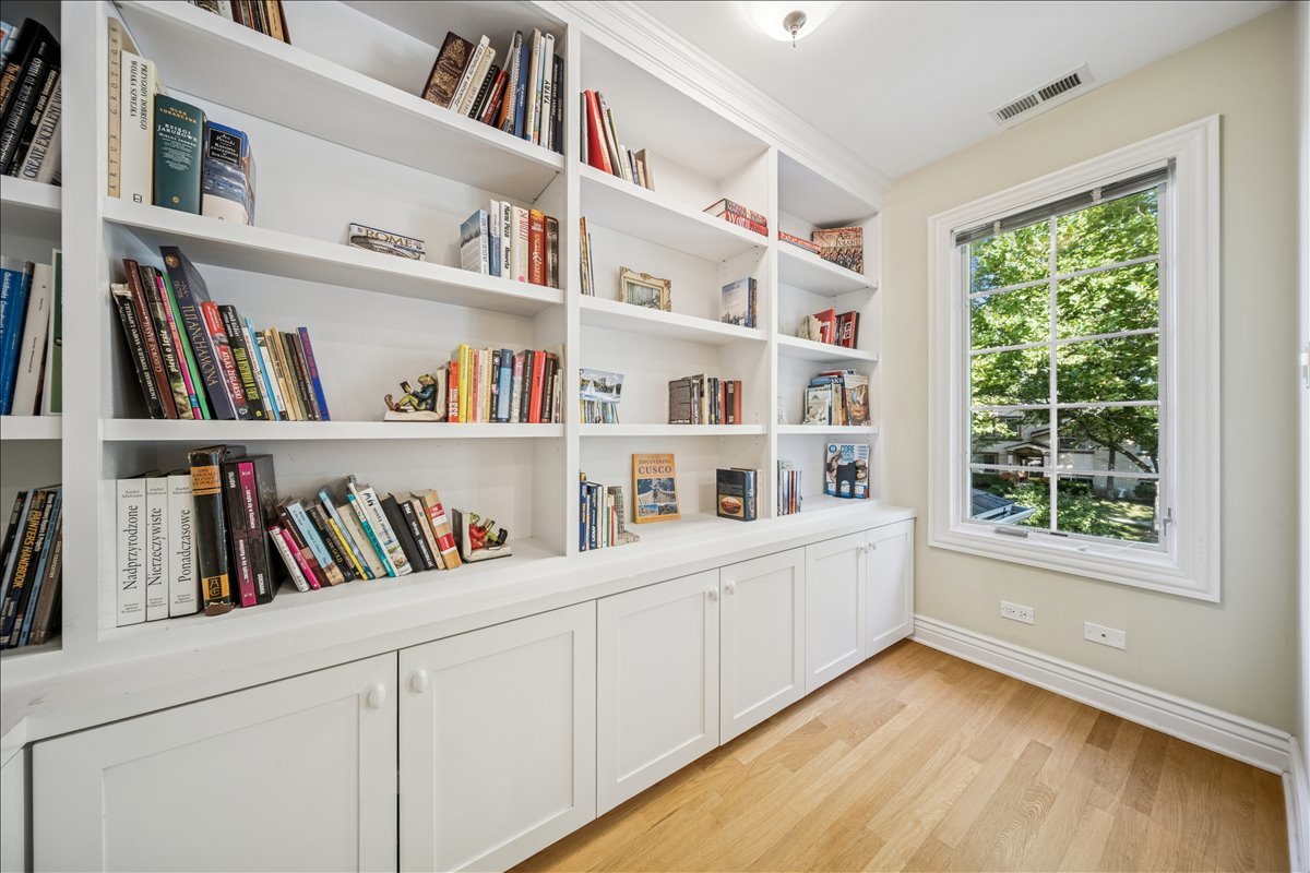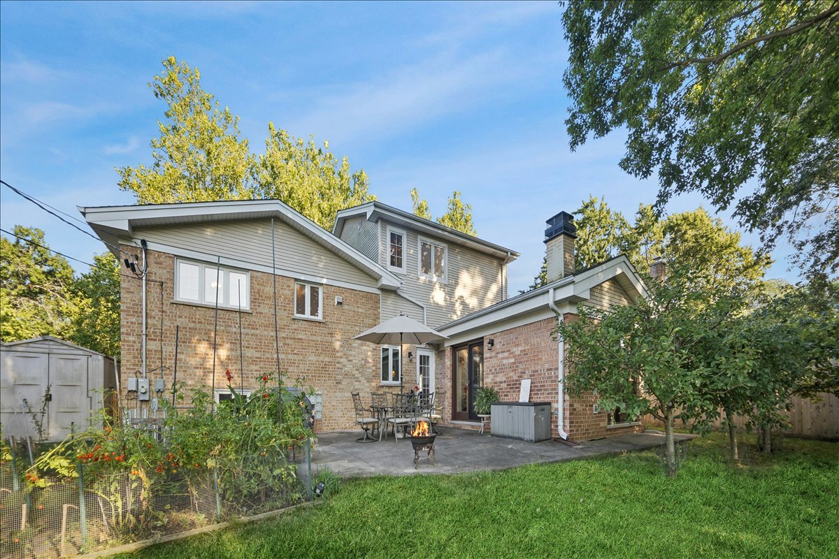 Discover 335 Vine St, a move- in ready, elegant and stylish home located on quiet tree- lined cul-de-sac in the heart of the highly sought-after village of Wilmette. Perfectly blending charm and modern convenience, this residence offers a serene lifestyle just moments from top-rated schools, parks, and vibrant local amenities. The main floor boasts an open-concept layout, enhanced with tall ceilings and custom crown and wainscoting decorative moldings. The spacious living and dining room elegantly flow into the kitchen. The bright custom kitchen with lush views of the back yard offers abundant cabinet space and includes expansive island with seating table for four. The light filled family room has vaulted wooden ceiling, large brick corner fireplace and sliding glass doors opening to the back patio. Upstairs there are three large bedrooms and a full bathroom. Impressive private primary suite features tray ceiling, custom built-in shelves, walk-in closet, library/den area plus spacious en-suite bathroom with dual vanity, shower and whirlpool. The lower level offers additional living space with recreation room, full bathroom and laundry. The National Hardwood Flooring Association NWFA award nominated custom hardwood floors run throughout all levels adding warmth and character to each space. Outside you will enjoy fenced back yard with big patio next to the kitchen and garden areas great for relaxing, entertaining, planting or playing. The attached large two car garage with driveway provides ample space for cars, bikes and gear. There is also a shed for additional garden tools storage. Just steps away from the Wilmette Park District top-notch Centennial Park facilities including outdoor swimming pool, ice rinks, and indoor tennis/pickle ball courts. An unbeatable location in the award -winning district Wilmette/D39 and New Trier High School. Walkable distance to all three K-8 District 39 schools and to Westmoreland Country Club. Close proximity to vibrant downtown Wilmette restaurants, shopping, the Metra and Gilson Beach. Love where you live!