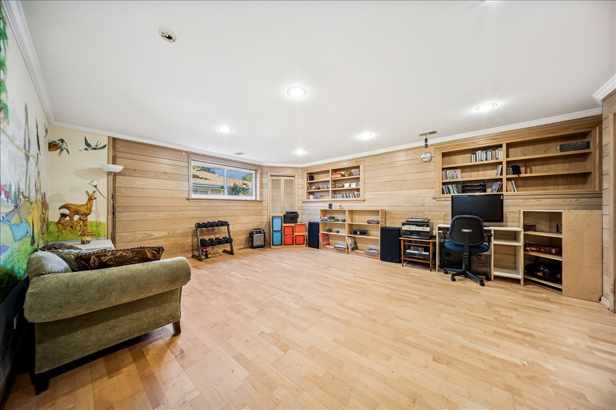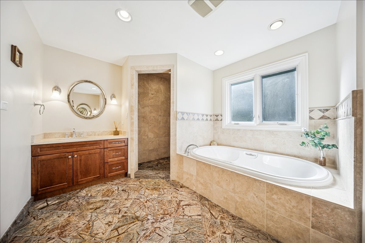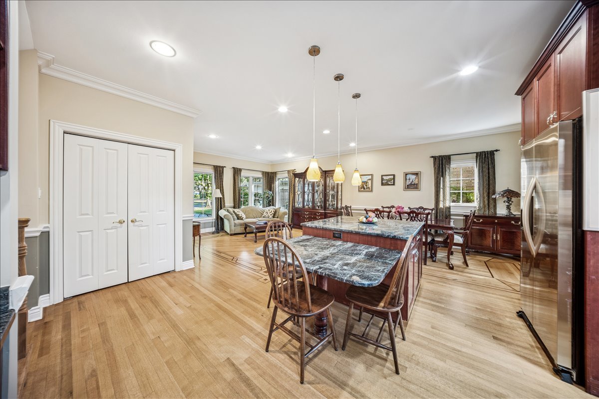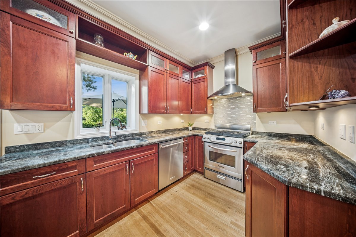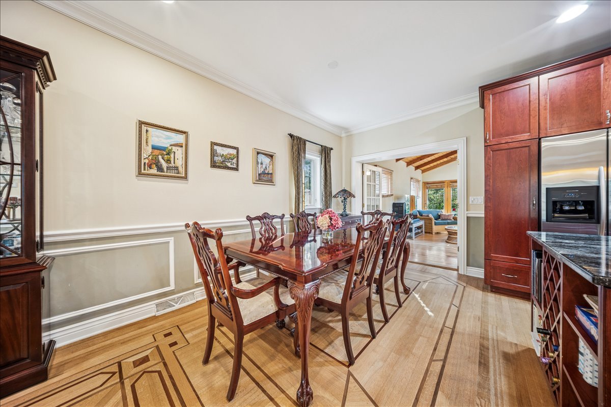 Discover 335 Vine St, a move- in ready, elegant and stylish home located on quiet tree- lined cul-de-sac in the heart of the highly sought-after village of Wilmette. Perfectly blending charm and modern convenience, this residence offers a serene lifestyle just moments from top-rated schools, parks, and vibrant local amenities. The main floor boasts an open-concept layout, enhanced with tall ceilings and custom crown and wainscoting decorative moldings. The spacious living and dining room elegantly flow into the kitchen. The bright custom kitchen with lush views of the back yard offers abundant cabinet space and includes expansive island with seating table for four. The light filled family room has vaulted wooden ceiling, large brick corner fireplace and sliding glass doors opening to the back patio. Upstairs there are three large bedrooms and a full bathroom. Impressive private primary suite features tray ceiling, custom built-in shelves, walk-in closet, library/den area plus spacious en-suite bathroom with dual vanity, shower and whirlpool. The lower level offers additional living space with recreation room, full bathroom and laundry. The National Hardwood Flooring Association NWFA award nominated custom hardwood floors run throughout all levels adding warmth and character to each space. Outside you will enjoy fenced back yard with big patio next to the kitchen and garden areas great for relaxing, entertaining, planting or playing. The attached large two car garage with driveway provides ample space for cars, bikes and gear. There is also a shed for additional garden tools storage. Just steps away from the Wilmette Park District top-notch Centennial Park facilities including outdoor swimming pool, ice rinks, and indoor tennis/pickle ball courts. An unbeatable location in the award -winning district Wilmette/D39 and New Trier High School. Walkable distance to all three K-8 District 39 schools and to Westmoreland Country Club. Close proximity to vibrant downtown Wilmette restaurants, shopping, the Metra and Gilson Beach. Love where you live!