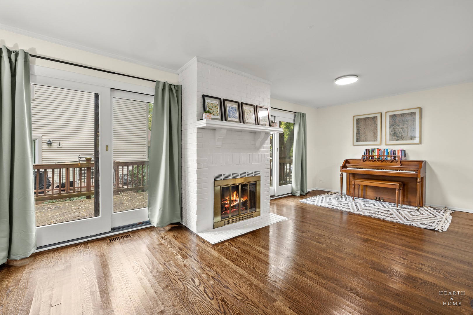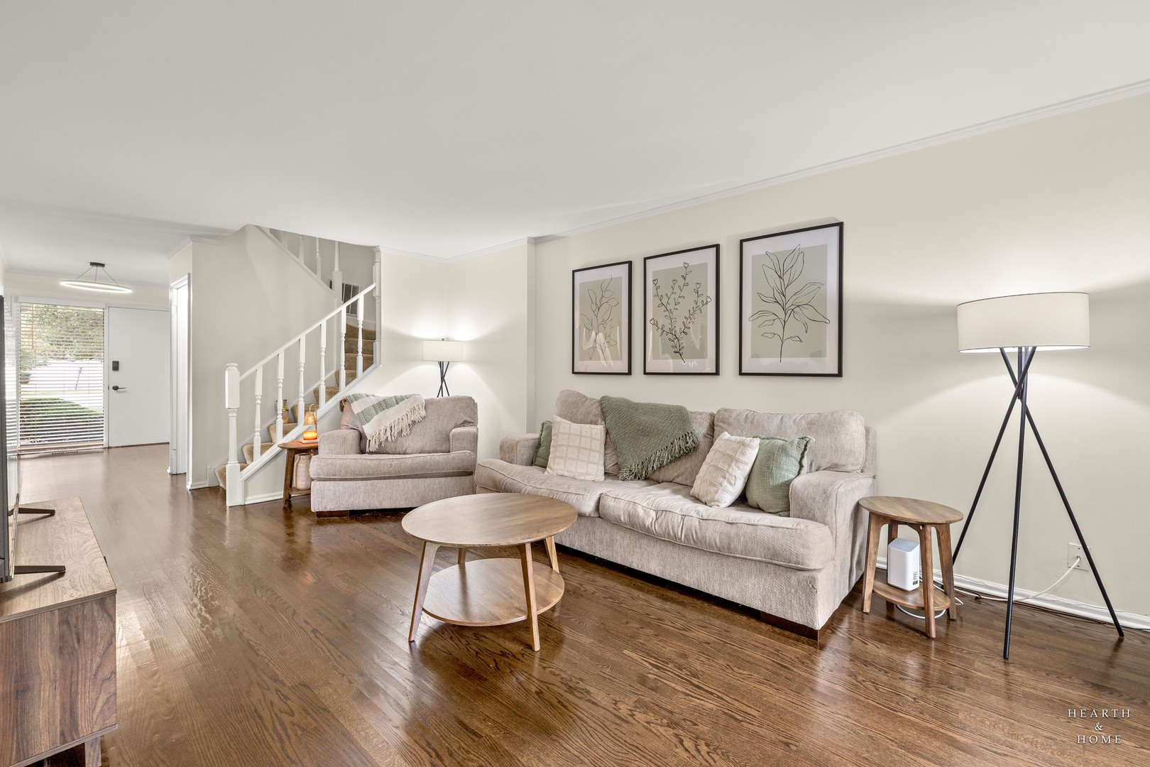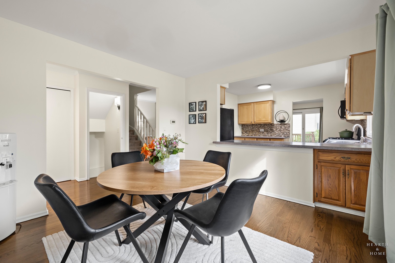 Bright and welcoming, this end-unit 3-bedroom townhome in Palatine combines fresh updates with the comfort of low-maintenance living. Enjoy a private entry and attached 1-car garage. The main level features brand-new gleaming hardwood floors and fresh, neutral paint, creating a clean and modern lifestyle feeling. The kitchen offers plenty of cabinet and counter space, a newer dishwasher, and a separate breakfast area-ideal for morning coffee or casual meals. The living room features a brick gas-start fireplace and two patio doors that bring in natural light and open to the deck, making it easy to enjoy the outdoor space. Upstairs, the primary bedroom includes a walk-in closet with built-in organizers. The extra-large hallway walk-in closet adds storage space along with two additional bedrooms that can flex for family, guests, or a home office. The finished basement with built-in bar and sink is perfect for game days, movie nights, or hosting friends. A separate laundry area and storage keep things organized. Step outside to the deck-great for grilling and relaxing. Convenience at its best-shops, dining, and amenities are all just minutes away.