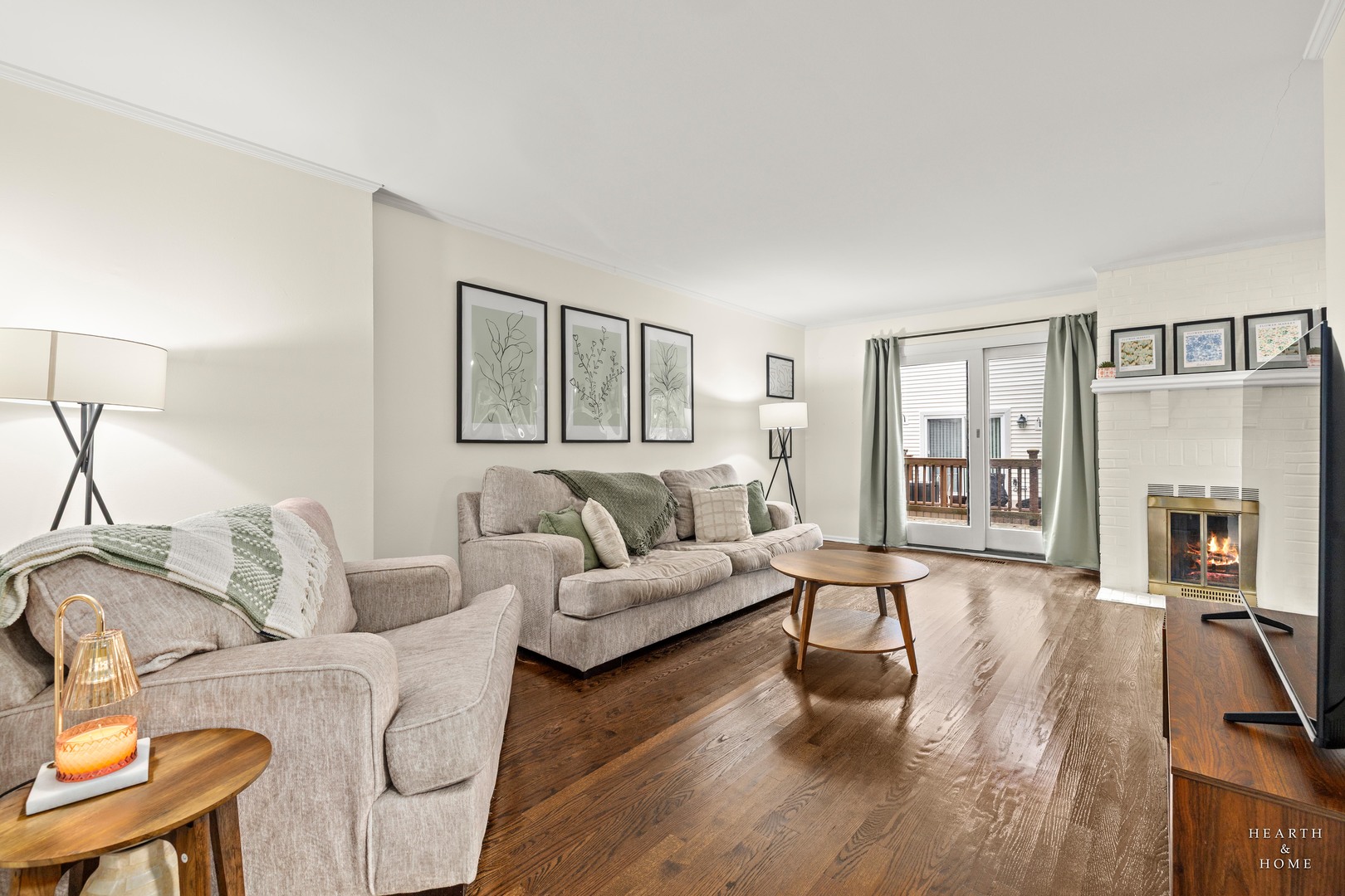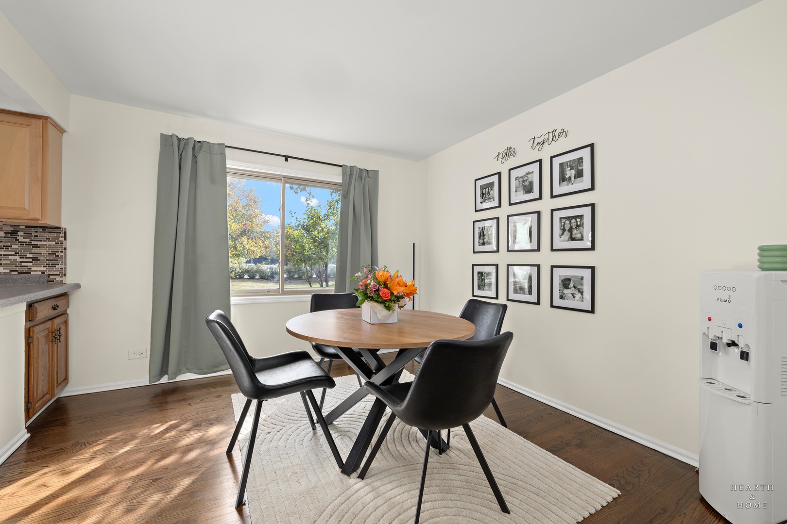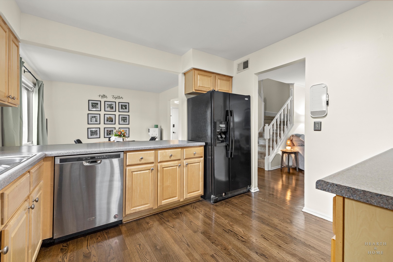 Bright and welcoming, this end-unit 3-bedroom townhome in Palatine combines fresh updates with the comfort of low-maintenance living. Enjoy a private entry and attached 1-car garage. The main level features brand-new gleaming hardwood floors and fresh, neutral paint, creating a clean and modern lifestyle feeling. The kitchen offers plenty of cabinet and counter space, a newer dishwasher, and a separate breakfast area-ideal for morning coffee or casual meals. The living room features a brick gas-start fireplace and two patio doors that bring in natural light and open to the deck, making it easy to enjoy the outdoor space. Upstairs, the primary bedroom includes a walk-in closet with built-in organizers. The extra-large hallway walk-in closet adds storage space along with two additional bedrooms that can flex for family, guests, or a home office. The finished basement with built-in bar and sink is perfect for game days, movie nights, or hosting friends. A separate laundry area and storage keep things organized. Step outside to the deck-great for grilling and relaxing. Convenience at its best-shops, dining, and amenities are all just minutes away.