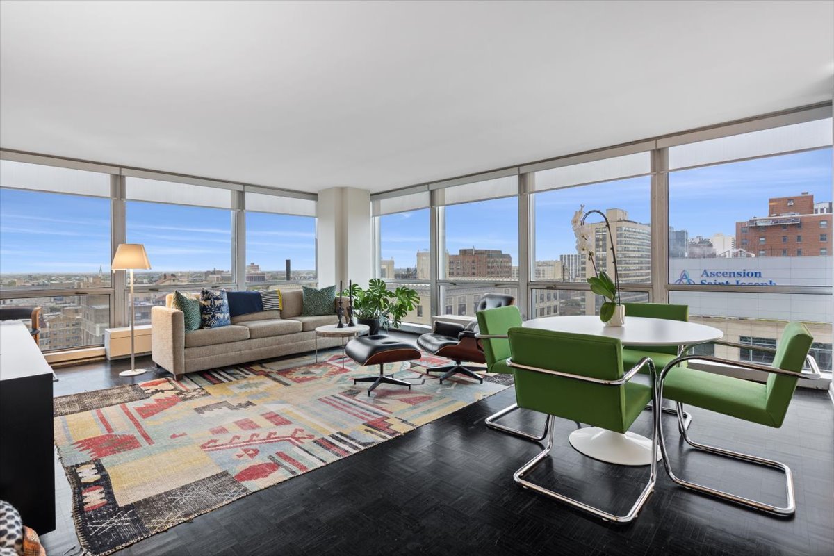 Stunning views from this high floor, corner unit at Mies van der Rohe’s Commonwealth Plaza! Enjoy gorgeous sunsets from this northwest corner! Huge living/dining room with 2 walls of floor to ceiling windows. Galley kitchen with marble counters, stainless steel appliances, and nice sized pantry. Primary bedroom has walls of glass with amazing western sunlight and walk in closet. Additional storage unit in the building included in sale. Full amenity building with outdoor pool, 2 fitness rooms, recently renovated hospitality room, 24 hour door staff, smart package room, and no wait list parking available for lease. Steps to lakefront, CTA, Trader Joe’s, Fresh Market, and tons of shops and boutiques along Broadway!