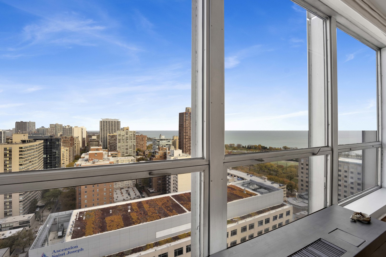 Experience modern city living in this iconic Mies van der Rohe building, ideally located right across from from Lincoln Park and moments from Lake Michigan! This spacious 2 bed, 2 bath residence welcomes you with a gracious foyer that opens into an expansive, light-filled living area, where floor-to-ceiling windows showcase sweeping lake and city views enjoyed from every room, including both bedrooms. The open kitchen overlooks the great room and features stainless steel appliances, 42″ cabinetry with pull-out drawers, a wine lattice, and a large pantry closet. Warm hardwood floors anchor the sun-drenched living space, while both bedrooms are thoughtfully placed down the hall for privacy. The generous primary suite includes a walk-in closet and ensuite bath, and the second bedroom sits conveniently across from the second full bath. Full-service amenities elevate daily living: outdoor pool and sundeck, grilling stations, playground, 24-hour door staff, updated fitness center with new LifeFitness equipment, award-winning hospitality room, smart package rooms, herb garden, bike storage, laundry facilities, and on-site management. Located in the sought-after Nettelhorst Elementary School District with easy access to DuSable Lake Shore Drive, multiple CTA bus routes, Trader Joe’s, Mariano’s, cafes, dining, nightlife, and the lakefront parks and trails. Investor-friendly with a one-year lease minimum. Valet parking available. Monthly assessment includes heat, A/C, water, 1-gig fiber internet, cable (HBO & Showtime), and all amenities. This home is the one if you’re looking for the perfect blend of comfort and city energy – come home and love where you live!
