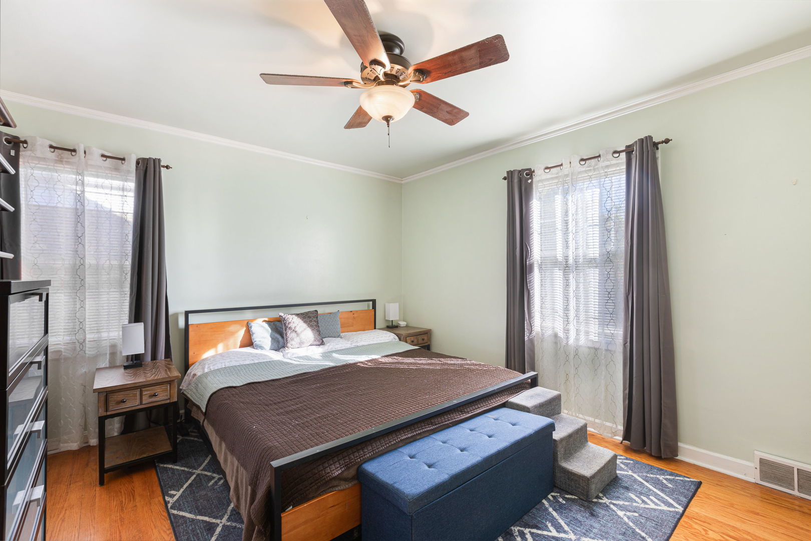 Great bones! Don’t miss this meticulously-maintained, charming, brick Georgian home on a beautiful, oversized corner lot bordering desirable Schorsch Village & Portage Park! Features beautiful front bay window, remodeled master bath and updated half bath; good bedroom sizes, NEW furnace and AC; solid oak cabinet kitchen with tile backsplash, stainless steel fridge and microwave, and hardwood floors throughout top two floors. Finished family room in the basement with parquet floors, custom storage room and nice laundry/utility room with front load washer and dryer (8 yrs). Tankless hot water heater (6-8 yr old) Enjoy entertaining and gardening in the large backyard with the new, maintenance-free fencing, trellis, brick paver patio/borders and two-car brick garage with driveway and additional parking spot off Roscoe. Close to Shabbona Park, Brickyard Mall, and short drive to Portage Park bars/restaurants/grocery stores/amenities and amazing Portage Park with tennis/pickleball courts,Olympic-sized outdoor pool, indoor pool, baseball diamonds, playground and bike trails and more. ESTATE SALE- SOLD AS IS.
