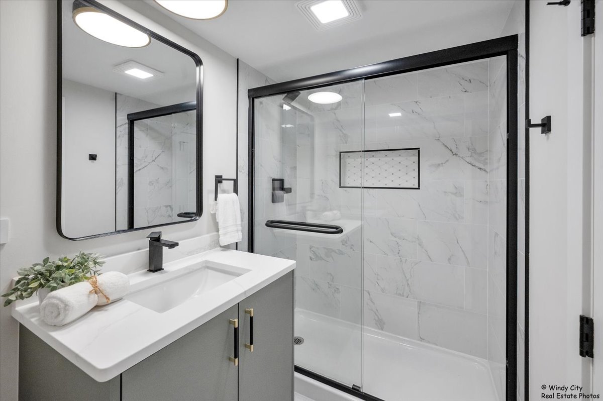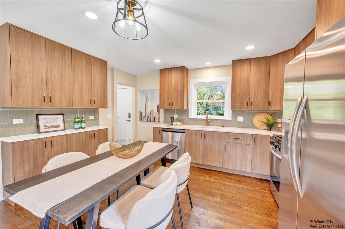 Welcome to this stunning, fully remodeled home in beautiful Arlington Heights, IL! Every detail has been thoughtfully updated – from newly refinished hardwood floors and brand-new interior doors to a modern kitchen featuring sleek, slow-close cabinetry, quartz countertops, and stainless-steel appliances. The bathrooms shine with new vanities, quartz counters, elegant tile floors and walls, and all-new fixtures including showers, bathtubs, and toilets. Enjoy extra living space in the finished basement with luxury vinyl plank flooring, plus peace of mind with a newer roof and windows, a new furnace and A/C, and a whole-home water filtration system with a 10-year warranty. Sitting on nearly a half-acre private lot surrounded by mature trees, this home offers a rare blend of privacy and conven ience – just minutes from top-rated schools, shops, and restaurants. Truly move-in ready, this home feels brand new inside and out!
