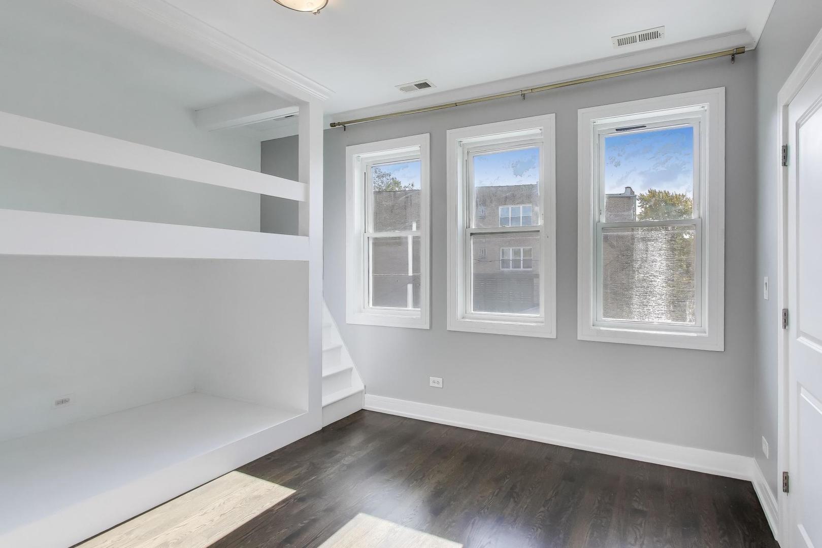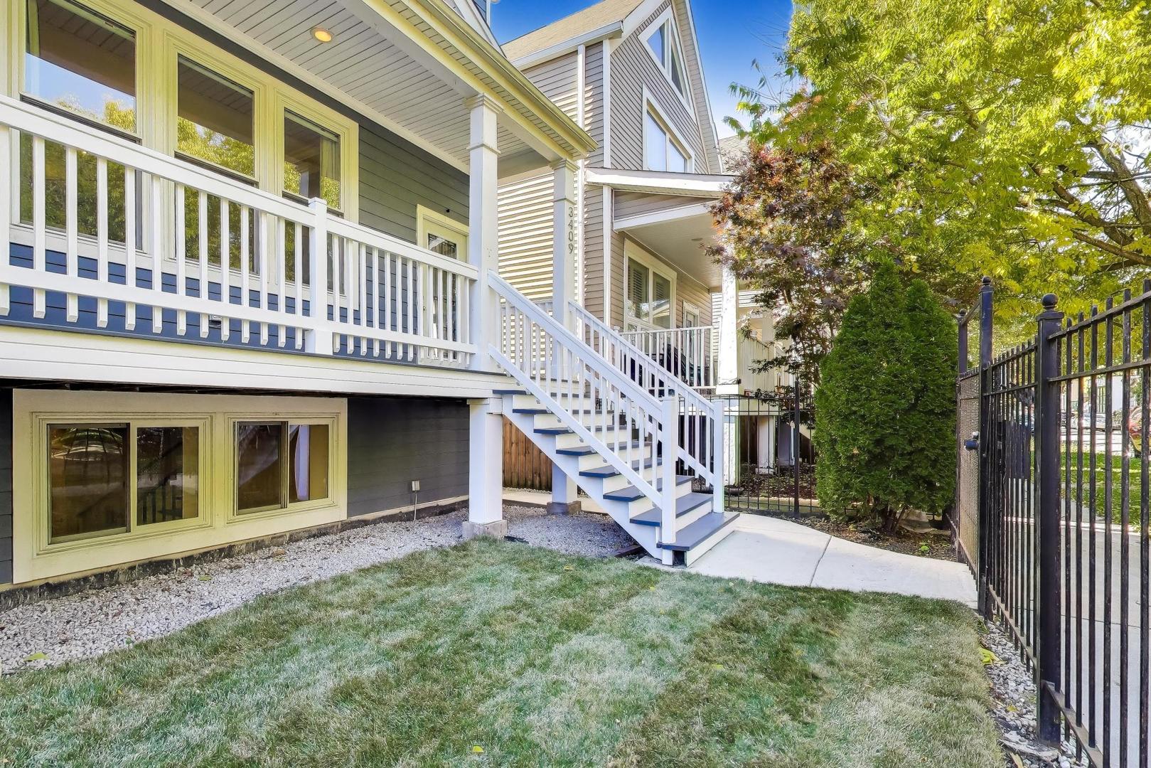 This Single-family home in Logan Square was built in 2014 on an extra-deep 25′ x 138′ lot. With over 3,000 sq ft across three finished levels, this freshly painted residence blends modern design, quality craftsmanship, and prime location. A newly refinished and painted front porch welcomes you inside, where hardwood floors, high ceilings, crown molding, wainscoting, and skylights create a bright, elegant feel. The main level offers a gas-starter, wood-burning fireplace with marble surround, a designer powder room, and an open-concept kitchen and family room-ideal for entertaining. The chef’s kitchen features Italian two-tone cabinetry, quartz countertops, a glass tile backsplash, stainless steel appliances, and a large island with breakfast bar. Step out to the huge rear deck and fenced backyard for outdoor dining and relaxation. A feature only available due to the additional depth of the lot. Upstairs, find three bedrooms and two baths, including a primary suite with walk-in closet, soaking tub, and steam shower. A secondary bedroom with built-in bunk beds adds functional charm. The lower level includes a versatile family/media room, a wet bar with mini-fridge, two additional bedrooms, a full bath, laundry, and ample storage. Additional highlights: zoned HVAC with Nest thermostats, wired for sound, and a 2-car garage. Just one block from the 606 Trail and near Logan Square’s best restaurants, cafes, and bars-this home delivers space, style, and city living at its best.