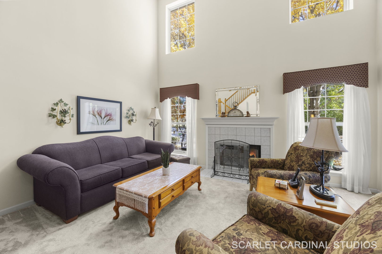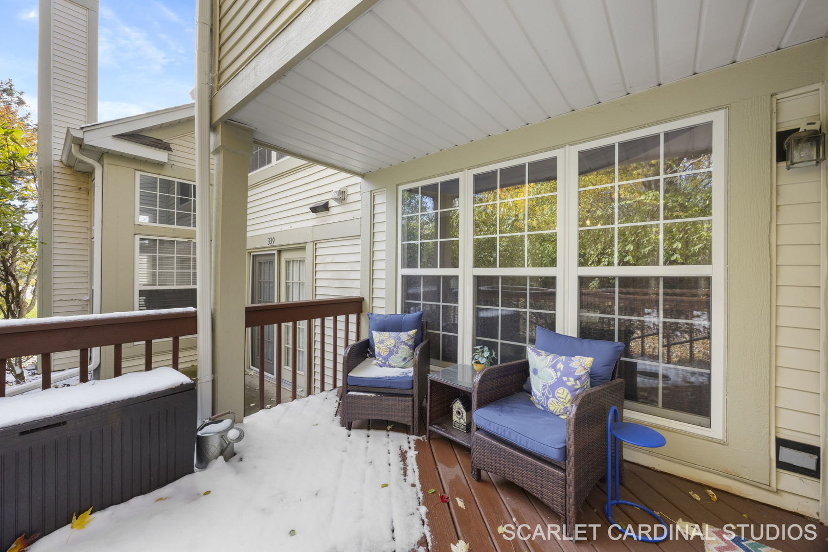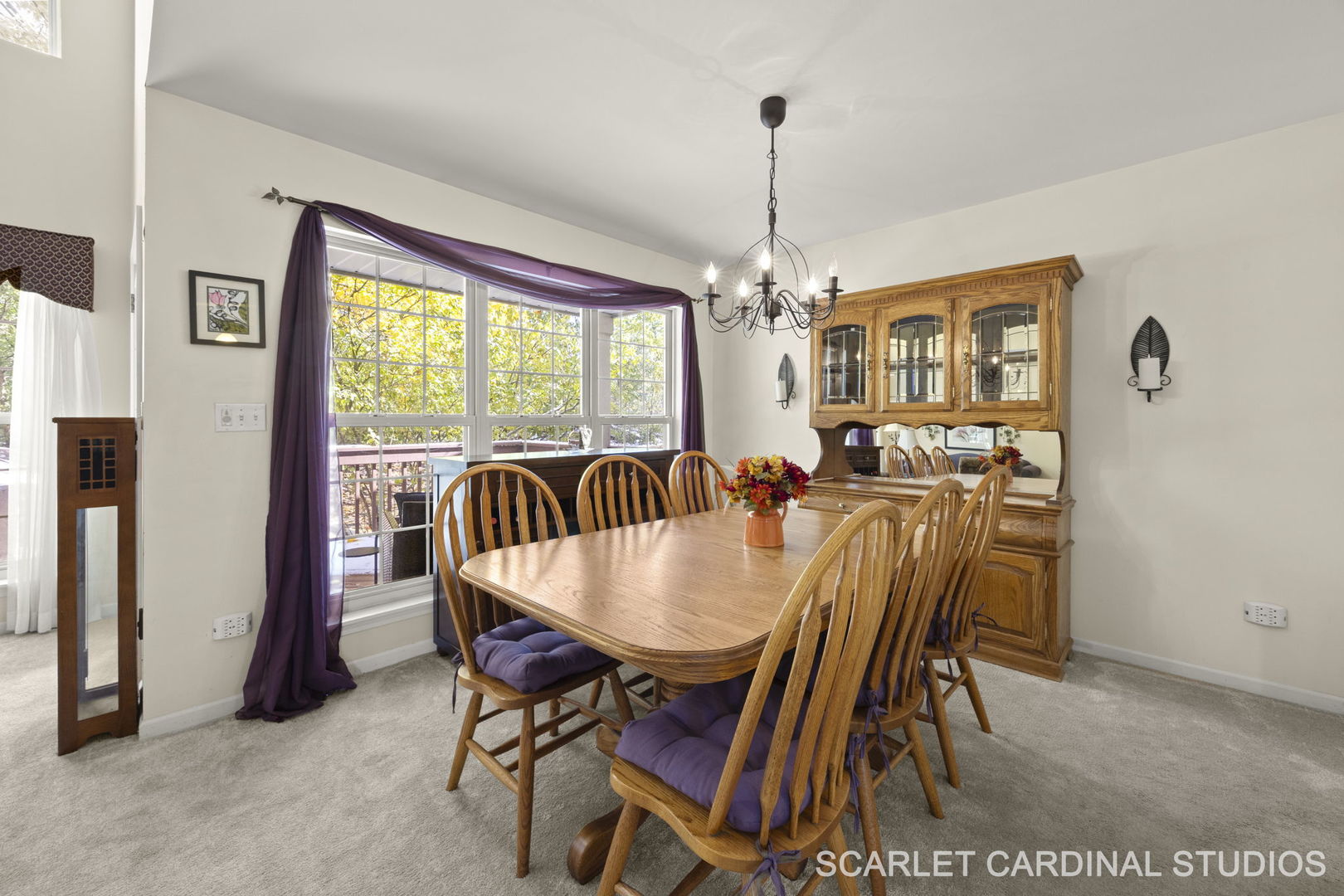 A carefree lifestyle awaits you in this light and bright 3-bedroom, 2.5-bath unit located in the beautifully maintained Columbine Glen Townhomes! Abundant windows fill the space with natural light, creating a warm and inviting atmosphere throughout. Enjoy award-winning Glen Ellyn schools-elementary, junior high, and Glenbard West High School! The main level features a dramatic two-story living room with a cozy wood-burning fireplace, ceiling fan, and newer carpet (2023). The spacious eat-in kitchen offers refaced cabinets, quartz countertops, a pantry, newer vinyl plank flooring, and stainless-steel appliances. A separate dining room and convenient half bath complete the main floor, along with a coat closet and good sized storage closet under the stairs. Just off the garage, you’ll find a utility room with a side-by-side washer and gas dryer. Step outside to your private 10×10 wood deck overlooking a peaceful, wooded area-perfect for relaxing or entertaining! Upstairs, the primary suite impresses with a vaulted ceiling, ceiling fan, walk-in closet, and private bath featuring double sinks, a soaking tub, and a separate shower. Some second-floor windows have been replaced. Two additional bedrooms share a full hall bath. Additional highlights include a 2-car attached garage with shelving for storage and a new roof installed by the HOA (approx. 2 years ago). The HOA covers lawn care, snow removal, and exterior maintenance-giving you more time to enjoy everything this desirable location has to offer, including the Great Western Bike Trail, Churchill Woods Forest Preserve, shopping, and restaurants. Conveniently located near downtown Lombard, Metra, and I-355. Just move in and enjoy! HWA Home Warranty Included!