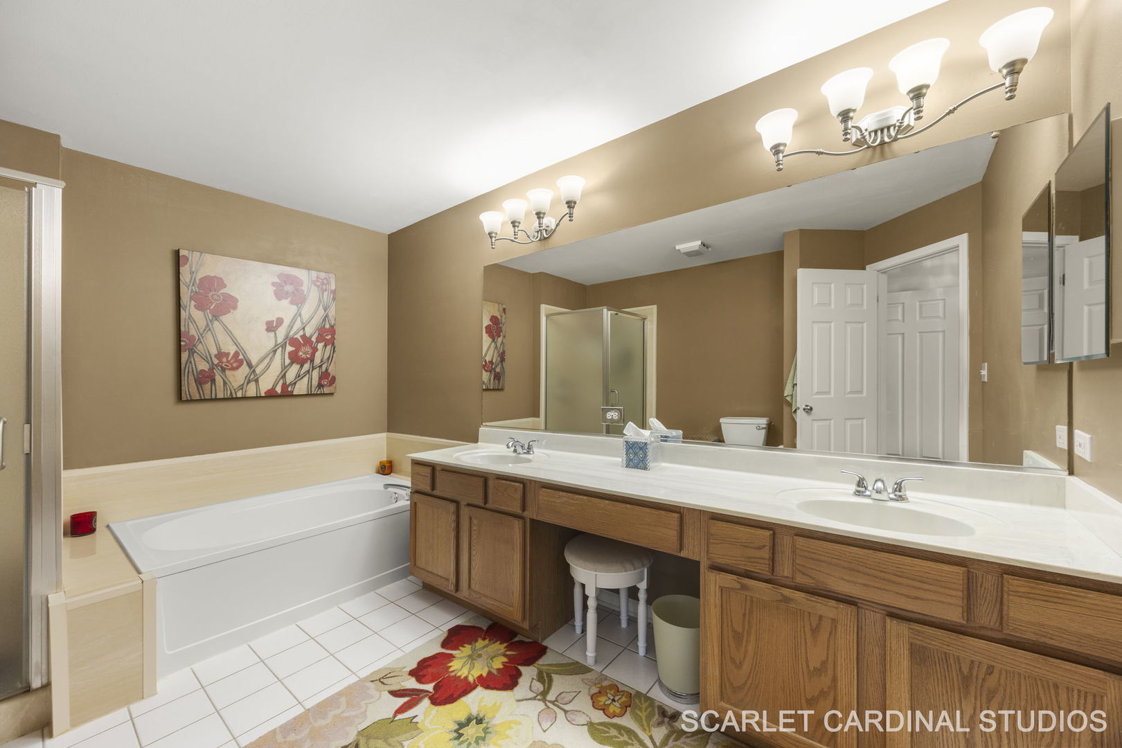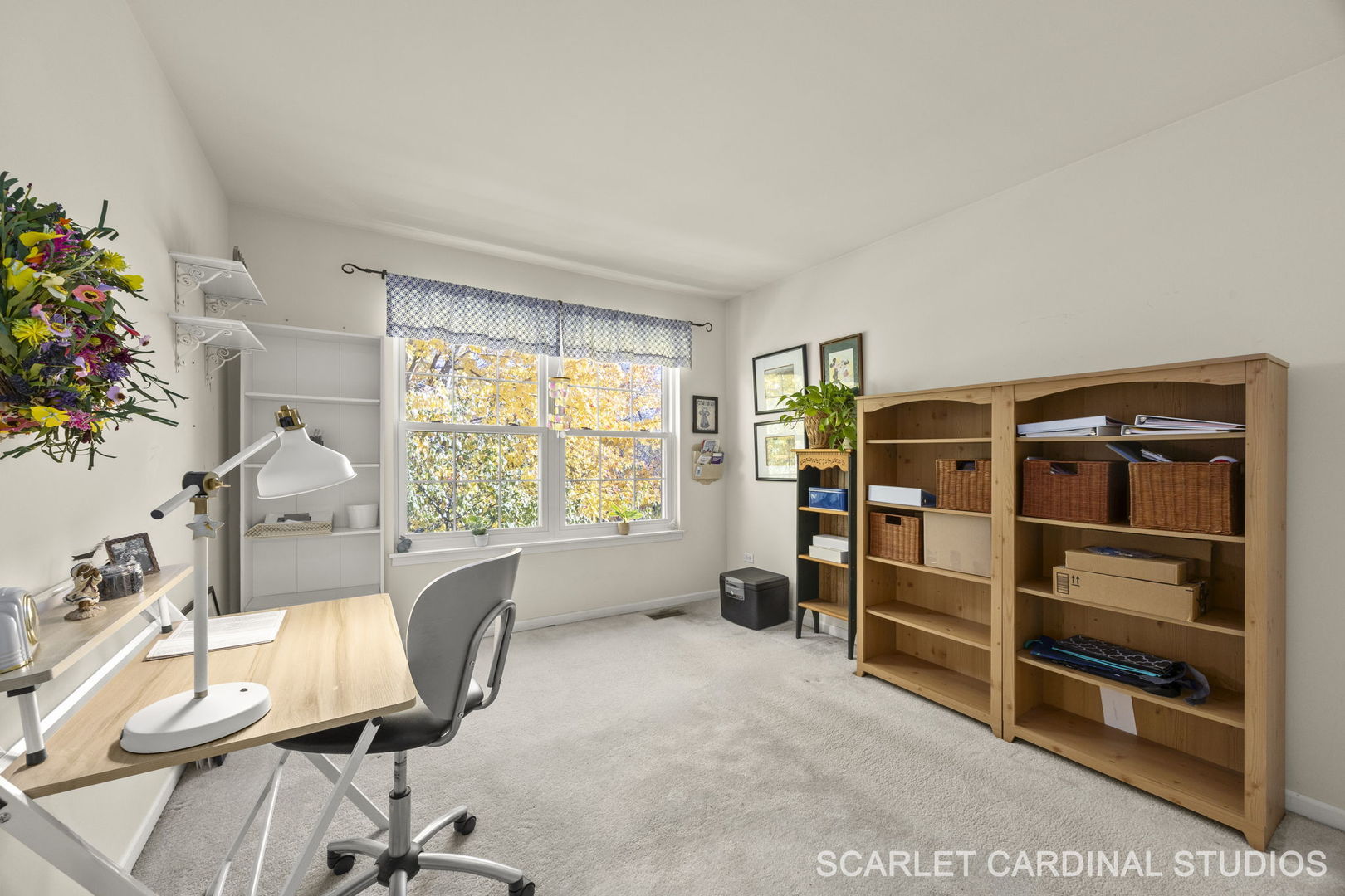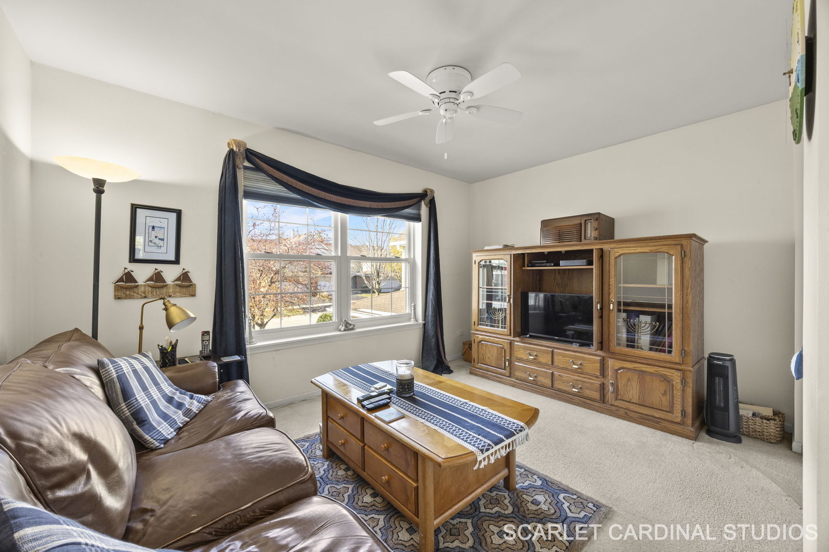 A carefree lifestyle awaits you in this light and bright 3-bedroom, 2.5-bath unit located in the beautifully maintained Columbine Glen Townhomes! Abundant windows fill the space with natural light, creating a warm and inviting atmosphere throughout. Enjoy award-winning Glen Ellyn schools-elementary, junior high, and Glenbard West High School! The main level features a dramatic two-story living room with a cozy wood-burning fireplace, ceiling fan, and newer carpet (2023). The spacious eat-in kitchen offers refaced cabinets, quartz countertops, a pantry, newer vinyl plank flooring, and stainless-steel appliances. A separate dining room and convenient half bath complete the main floor, along with a coat closet and good sized storage closet under the stairs. Just off the garage, you’ll find a utility room with a side-by-side washer and gas dryer. Step outside to your private 10×10 wood deck overlooking a peaceful, wooded area-perfect for relaxing or entertaining! Upstairs, the primary suite impresses with a vaulted ceiling, ceiling fan, walk-in closet, and private bath featuring double sinks, a soaking tub, and a separate shower. Some second-floor windows have been replaced. Two additional bedrooms share a full hall bath. Additional highlights include a 2-car attached garage with shelving for storage and a new roof installed by the HOA (approx. 2 years ago). The HOA covers lawn care, snow removal, and exterior maintenance-giving you more time to enjoy everything this desirable location has to offer, including the Great Western Bike Trail, Churchill Woods Forest Preserve, shopping, and restaurants. Conveniently located near downtown Lombard, Metra, and I-355. Just move in and enjoy! HWA Home Warranty Included!