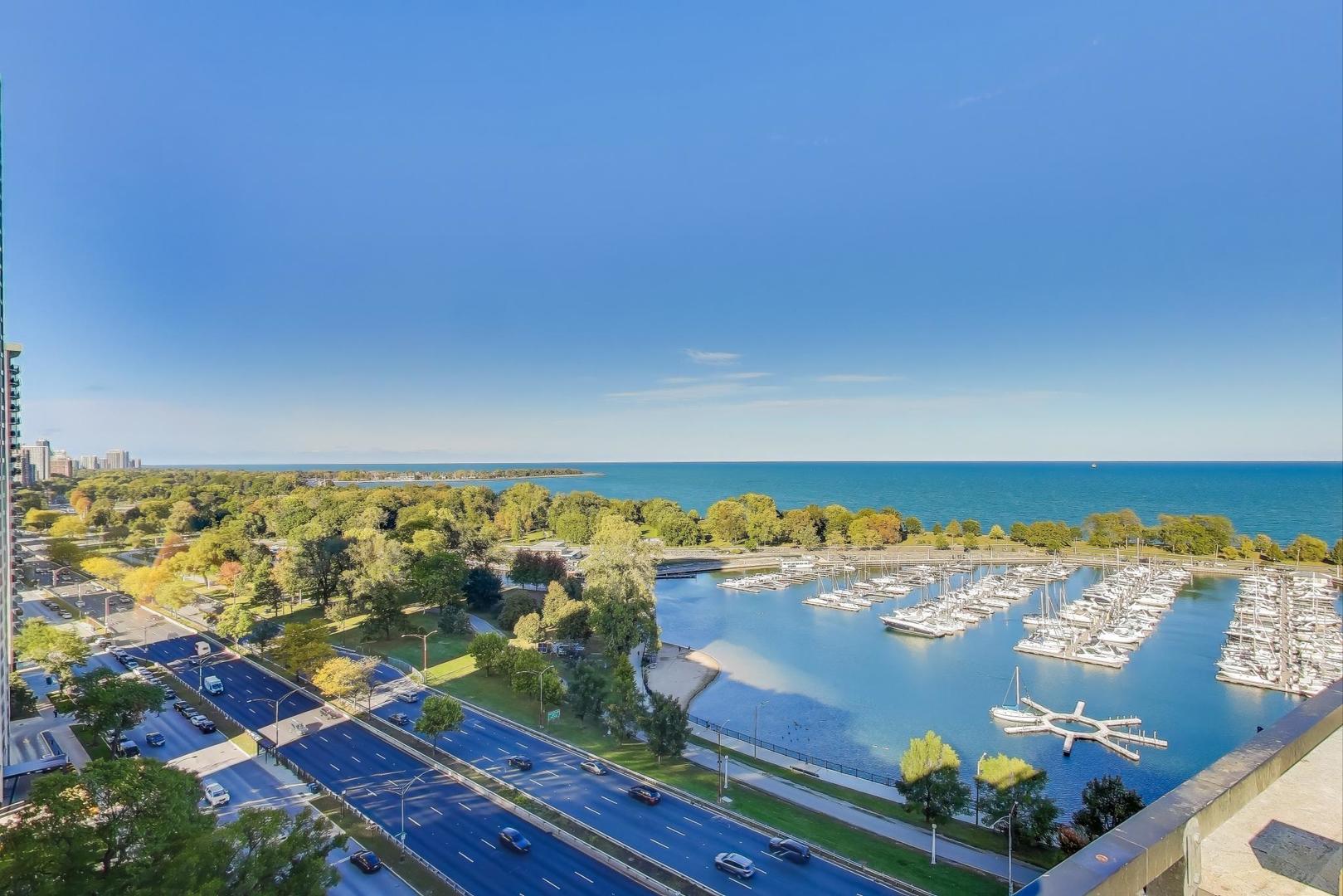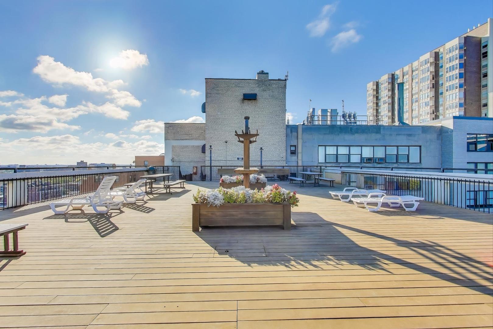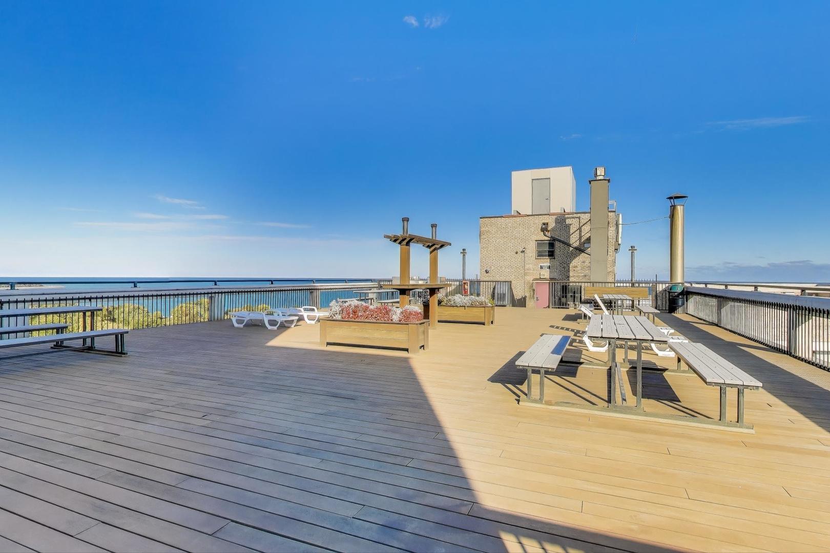 Rarely available, this expansive 2-bedroom + office space, 2-bathroom home in prime East Lakeview offers incredible space and a coveted private deck-one of only four in the building. Located directly across from Belmont Harbor and Lake Michigan, the residence combines generous square footage with modern updates and unbeatable outdoor living. The bright and spacious living area is surrounded by two walls of oversized windows, flooding the home with natural light. The open-concept kitchen is perfect for entertaining, featuring sleek white cabinetry, beige countertops, and matching appliances for a clean, cohesive look. The primary suite includes an update en-suite bathroom and a massive walk-in closet. A large walk-in pantry adds to the exceptional in-unit storage, and two additional 4’x4′ storage cages are included on the 2nd floor. An assigned heated garage parking space (Space #58) is included in the price-no need to worry about street parking. Building amenities include 24-hour door staff, a fitness center, bike room, receiving room, rooftop deck, and shared laundry. Monthly assessments cover nearly everything: heat, water, internet, cable, parking, door staff, building insurance, exterior maintenance, snow removal, and more. Set in one of the most walkable neighborhoods in the city, you’re steps from the lakefront, Belmont Harbor, running and biking trails, Wendt Playlot Park, and Wrigley Field. Red, Brown, and Purple Line trains-and express buses-are just blocks away. Pet-friendly and move-in ready. This is Lakeview living at its finest