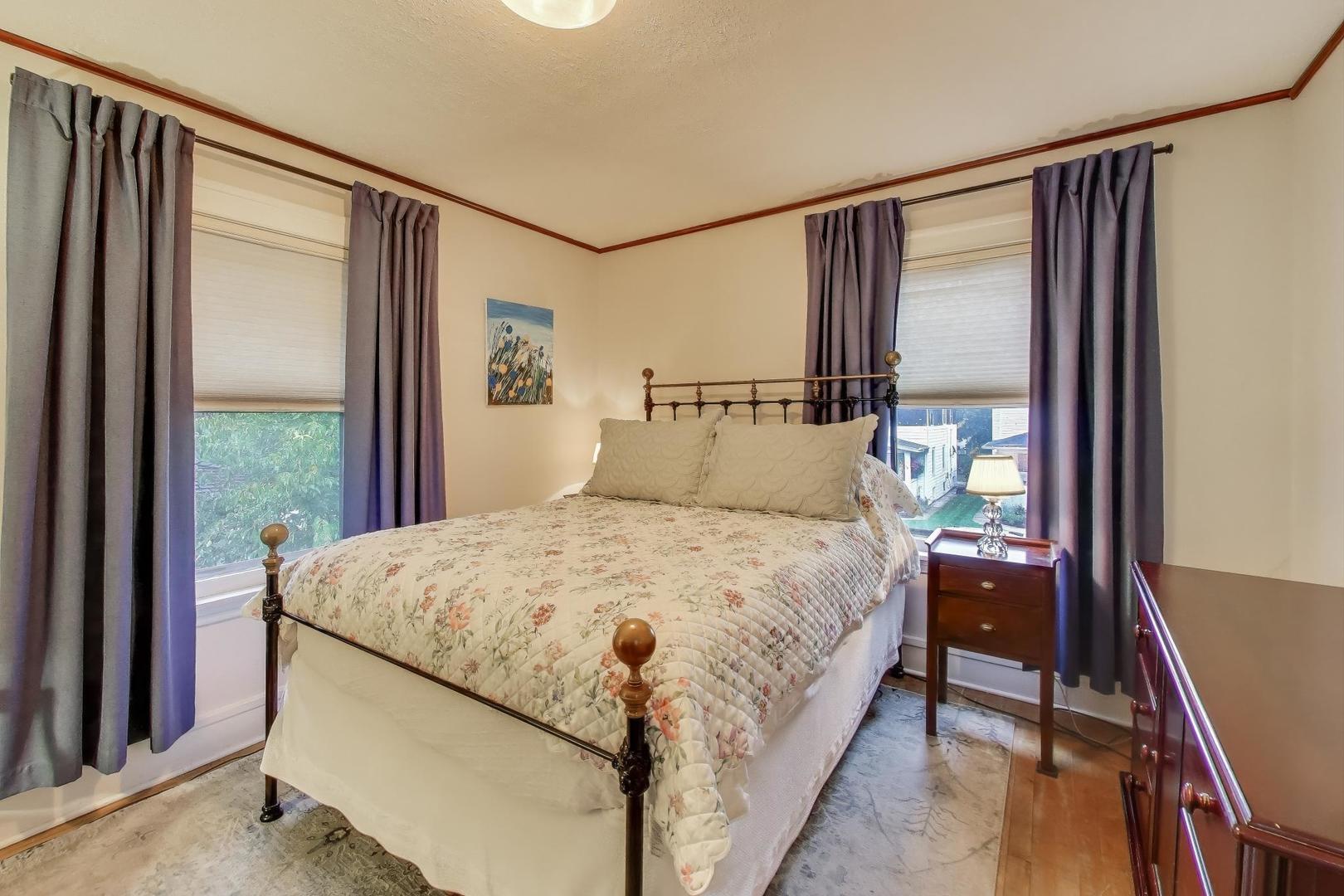 Welcome to 3418 Wesley Ave in Berwyn – a lovingly maintained two-story home thoughtfully improved by its long-time owners. Major updates include a beautiful kitchen with new cabinets, countertops, tile flooring, and recessed lighting (2017), new furnace and central A/C (2017), a new stone fireplace surround, and a new steel support beam in the basement. Additional improvements include a new house and garage roof, eaves, gutters, gutter guards, and concrete walkways (2021), complete air duct cleaning and a new washer (2024), plus a new 100-amp electric panel, dishwasher, and water heater (2025). This 3-bedroom, 1.5-bath home retains its original doors, windows, and trim, along with a charming fireplace, built-in bookshelves, and a cozy window seat bench – talk about character! The bright unfinished basement with half bath is ideal for storage or future finishing, and a walk-up attic provides even more space. Outside, enjoy a large backyard with patio, a 2.5-car garage, and a finished “she shed” or kids’ playhouse. Located on a tree-lined street in the heart of Berwyn – just 8 miles from downtown Chicago – this home perfectly blends vintage charm with modern quality and offers easy access to parks, schools, shopping, dining, and the Metra train. Come see all that Berwyn has to offer – you’re going to love it here!