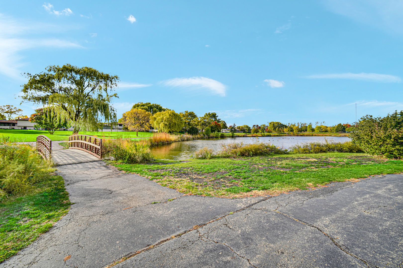 Cozy and convenient 1st floor 1 bed 1 bath condo with in unit laundry, living room with dining combo, if desired, or possible eat in kitchen. Two patios to enjoy, one off the living room that overlooks the courtyard and another off the kitchen for possible outside dining. Extra storage area available just outside the back door of the unit. The complex offers plenty of parking in its large lot, a private pool, and a play ground along with being located next to the beautiful walking trail and lake, not to mention just a short walk to the recreation center and park district too. Centrally located between North Ave and Army Trail Rd provides easy commuter access and a short drive to restaurants, shopping, schools, and more. Come take a look for yourself! This unit just needs your personal touches to make it home!