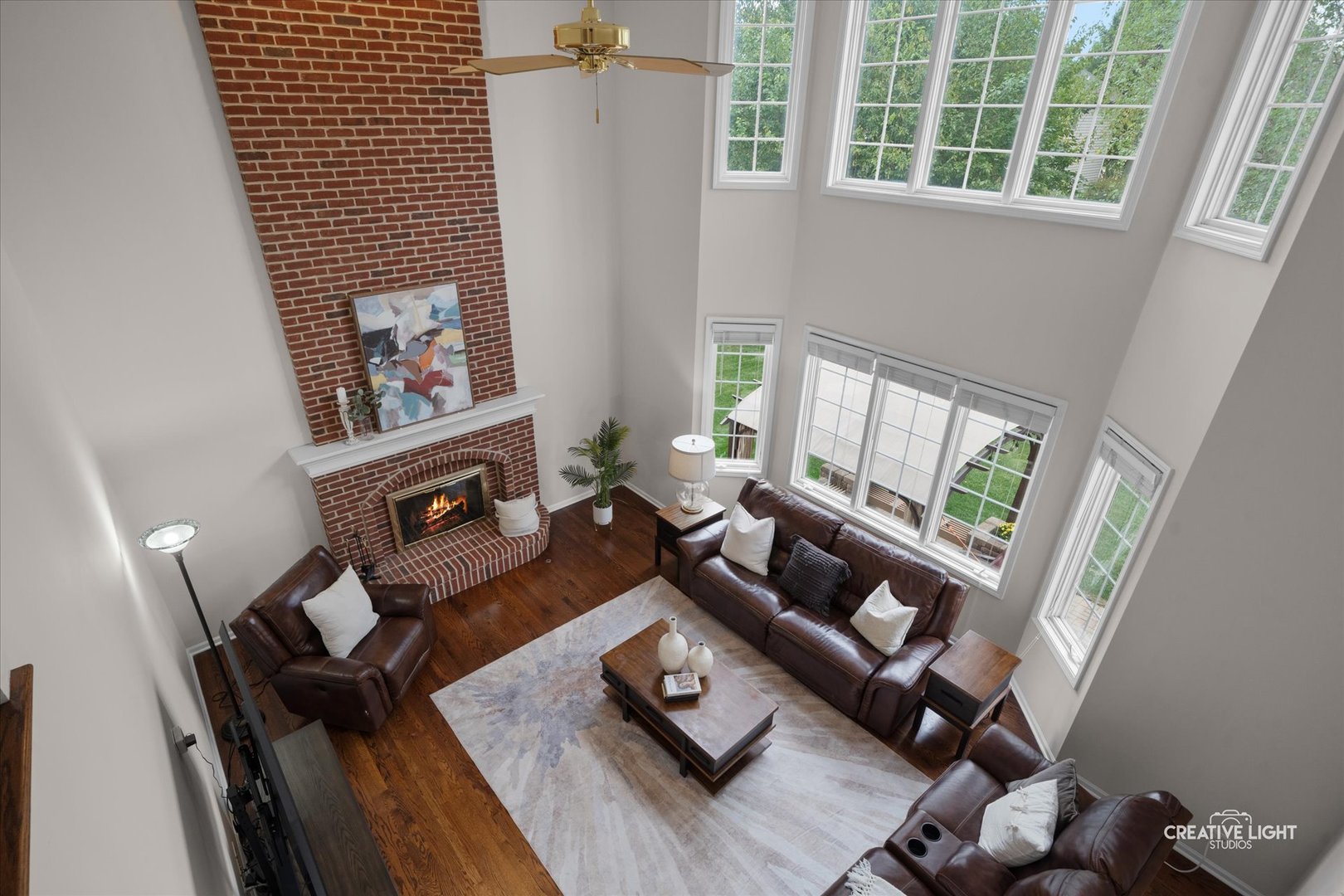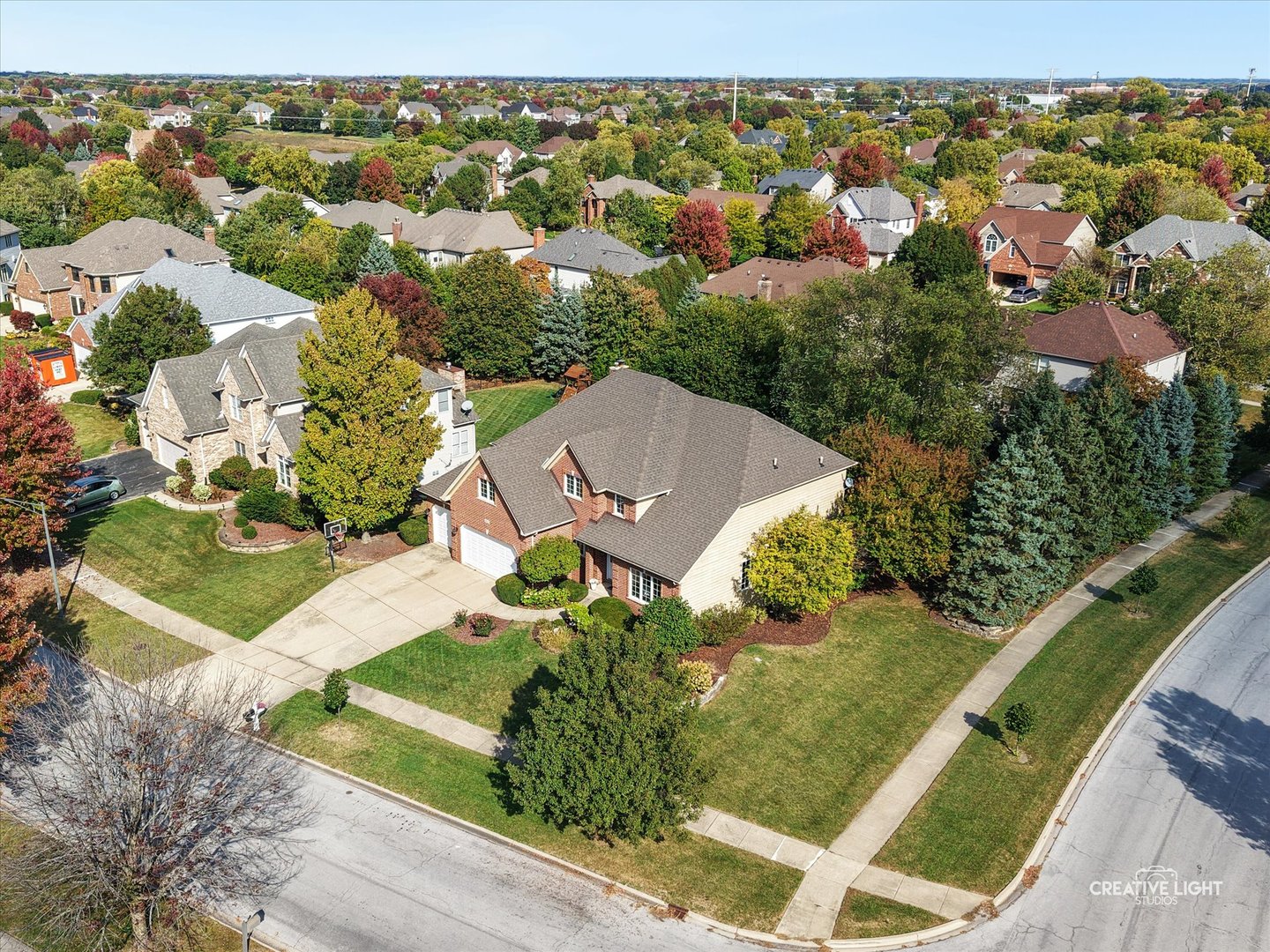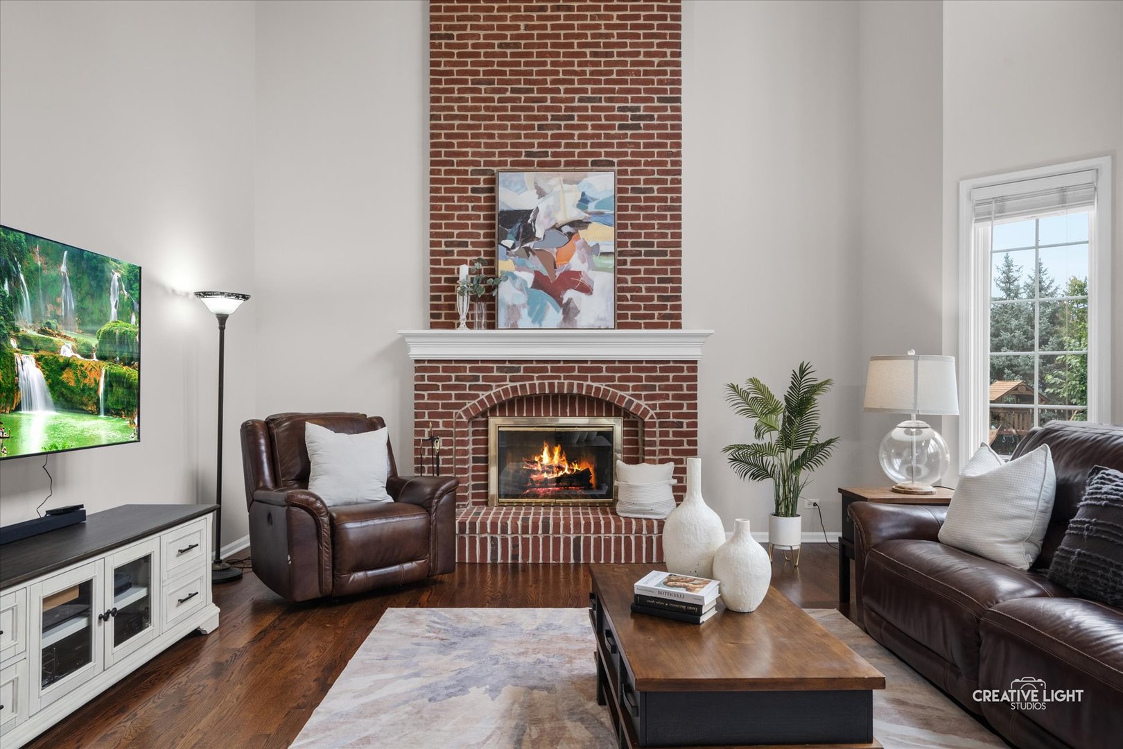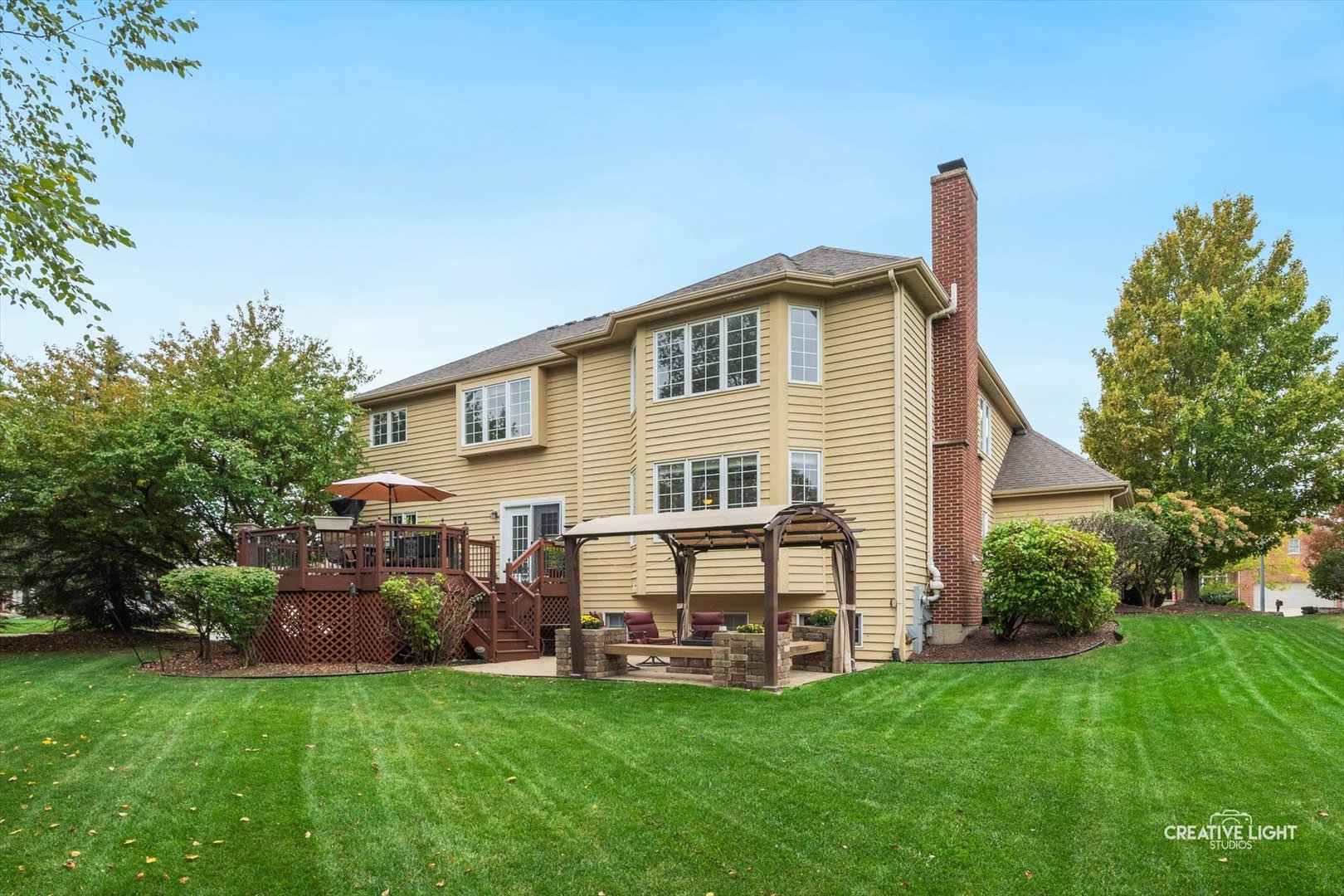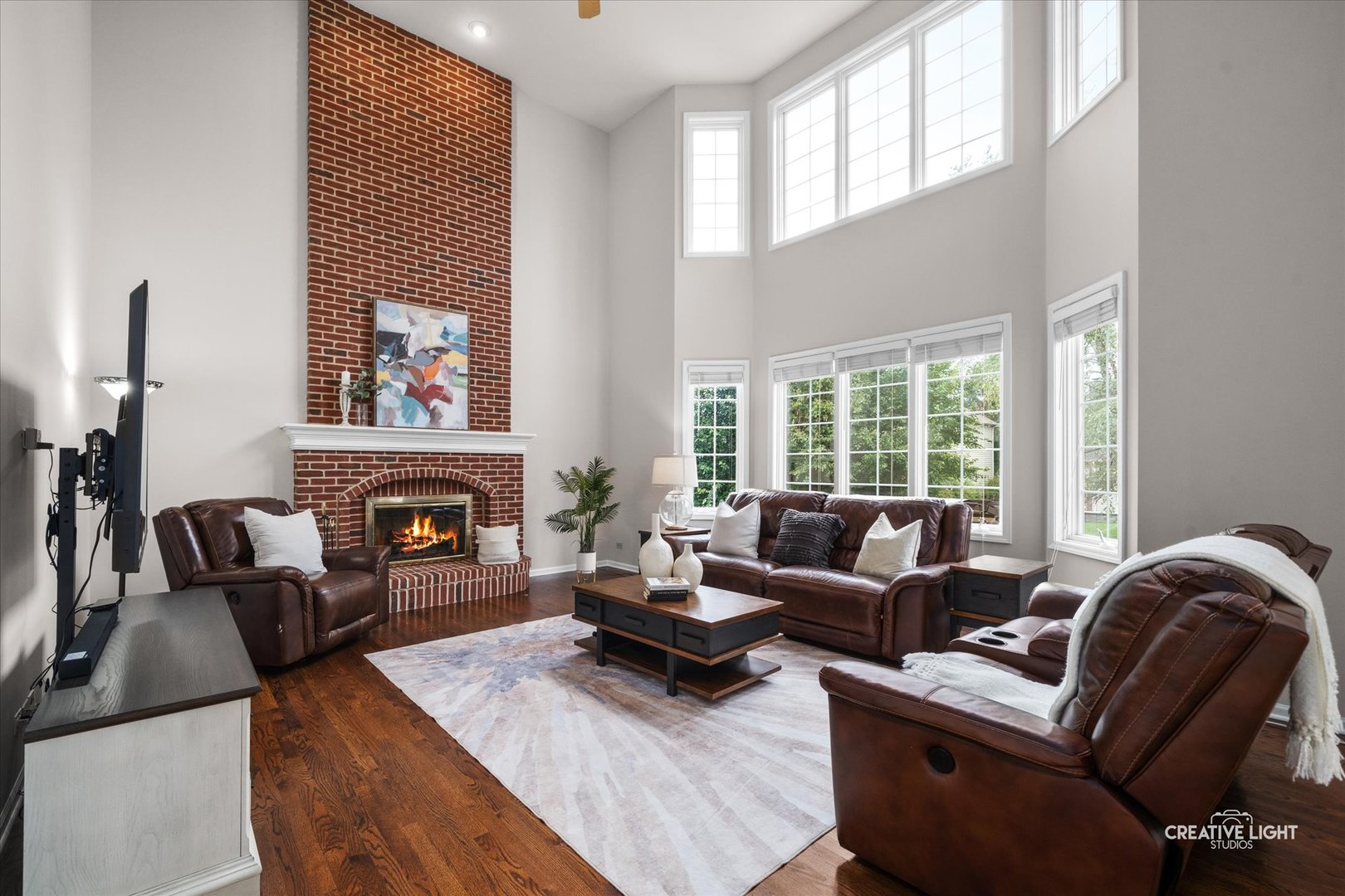 Style and sophistication shine throughout this beautifully refreshed home! Recently updated with fresh City Loft paint & new carpet upstairs. Hardwood floors were added & existing floors refinished on the main level. Not your typical floor plan – this home offers thoughtful design and distinctive details throughout. The impressive two-story foyer features a turned staircase with stained treads and wrought iron spindles. The dramatic Living Room with vaulted ceiling opens to the Dining Room, perfect for entertaining. The spacious Kitchen features an oversized island, granite countertops, stainless steel appliances, and a large walk-in pantry. The heart of the home is the two-story Family Room, with a floor-to-ceiling brick fireplace and a wall of windows that fill the space with natural light. A private main-floor Office is tucked away at the back of the home and is adjacent to a full bath-ideal for guests or an in-law arrangement. The first-floor bath has been updated with a white vanity, quartzite countertop, new mirror, and lighting. Upstairs, the Primary Suite features a vaulted ceiling and a spa-like bath with an updated dual-sink vanity, quartzite countertop, whirlpool tub, and newly tiled shower. Bedrooms two and three share a refreshed hall bath with dual-sink vanity, while the fourth bedroom includes a private ensuite bath. Both feature updated white vanities with quartzite countertops and modern fixtures. The finished lookout basement adds exceptional living space with Rec Room, kitchenette with sink, and dishwasher, plus a full bath with tub/shower combo. The Theater Room is great for family movie night! The projector, screen & surround sound speaks remain with the home! Two level entertaining outside with the deck & lower level brick paver patio with gazebo & fire pit. Transferrable Choice Home Warranty until 11/2026! 2 NEW WATER HEATERS 2019! NEW PATIO DOOR 2018! NEW SAMSUNG REFRIGERATOR 2018! NEW ROOF 2016! ADDED HARDWOOD FLOORS & REFINISHED 2014! Tall Grass is a swim & tennis community. Award winning Fry Elementary & Scullen Middle schools are on site. Route 59 shopping, restaurants are close by & the new Block 59 restaurant area is 4 miles north! Downtown Naperville is a short 15 minute drive! Seller would love a December 12/17 close date.
