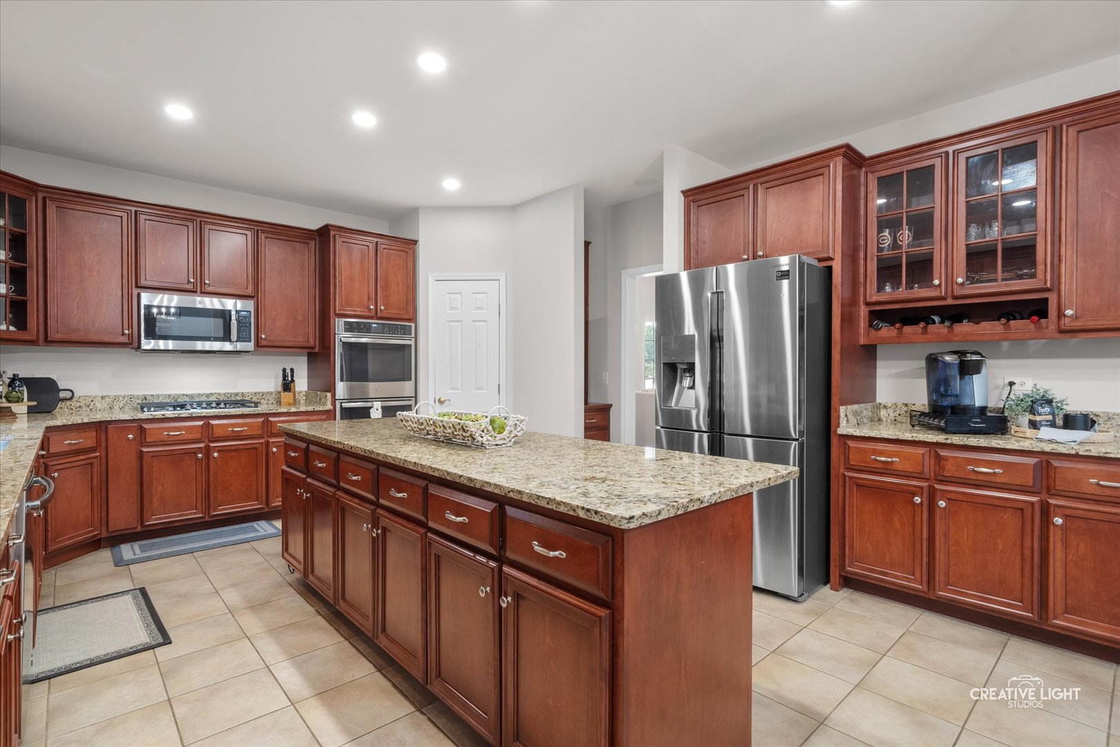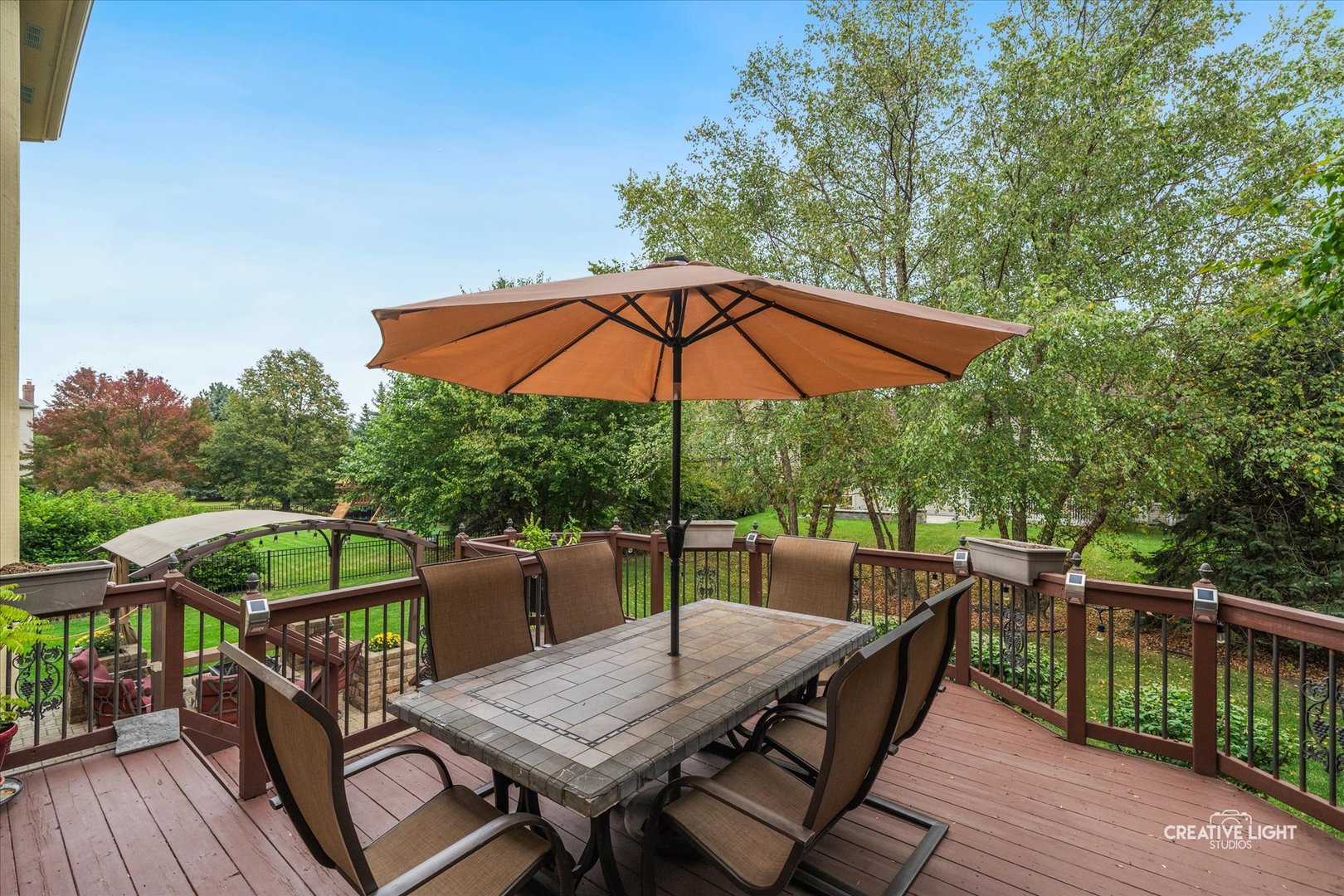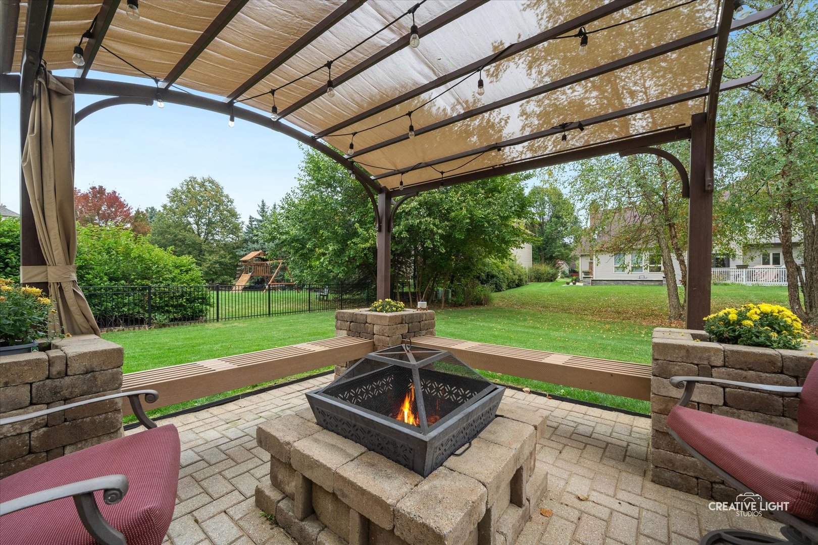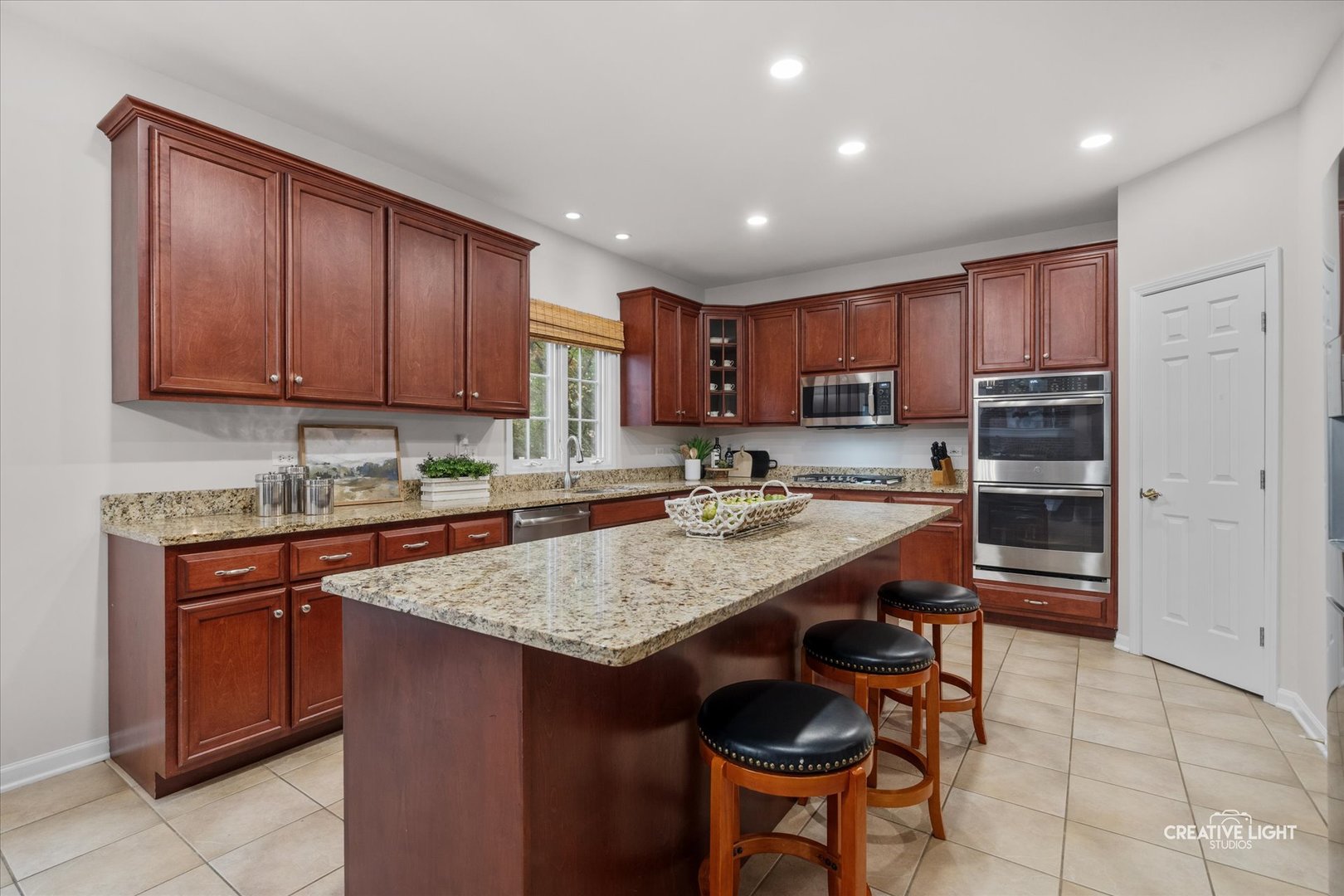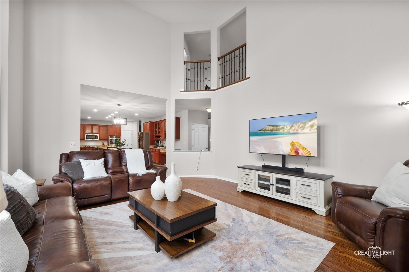 Style and sophistication shine throughout this beautifully refreshed home! Recently updated with fresh City Loft paint & new carpet upstairs. Hardwood floors were added & existing floors refinished on the main level. Not your typical floor plan – this home offers thoughtful design and distinctive details throughout. The impressive two-story foyer features a turned staircase with stained treads and wrought iron spindles. The dramatic Living Room with vaulted ceiling opens to the Dining Room, perfect for entertaining. The spacious Kitchen features an oversized island, granite countertops, stainless steel appliances, and a large walk-in pantry. The heart of the home is the two-story Family Room, with a floor-to-ceiling brick fireplace and a wall of windows that fill the space with natural light. A private main-floor Office is tucked away at the back of the home and is adjacent to a full bath-ideal for guests or an in-law arrangement. The first-floor bath has been updated with a white vanity, quartzite countertop, new mirror, and lighting. Upstairs, the Primary Suite features a vaulted ceiling and a spa-like bath with an updated dual-sink vanity, quartzite countertop, whirlpool tub, and newly tiled shower. Bedrooms two and three share a refreshed hall bath with dual-sink vanity, while the fourth bedroom includes a private ensuite bath. Both feature updated white vanities with quartzite countertops and modern fixtures. The finished lookout basement adds exceptional living space with Rec Room, kitchenette with sink, and dishwasher, plus a full bath with tub/shower combo. The Theater Room is great for family movie night! The projector, screen & surround sound speaks remain with the home! Two level entertaining outside with the deck & lower level brick paver patio with gazebo & fire pit. Transferrable Choice Home Warranty until 11/2026! 2 NEW WATER HEATERS 2019! NEW PATIO DOOR 2018! NEW SAMSUNG REFRIGERATOR 2018! NEW ROOF 2016! ADDED HARDWOOD FLOORS & REFINISHED 2014! Tall Grass is a swim & tennis community. Award winning Fry Elementary & Scullen Middle schools are on site. Route 59 shopping, restaurants are close by & the new Block 59 restaurant area is 4 miles north! Downtown Naperville is a short 15 minute drive! Seller would love a December 12/17 close date.
