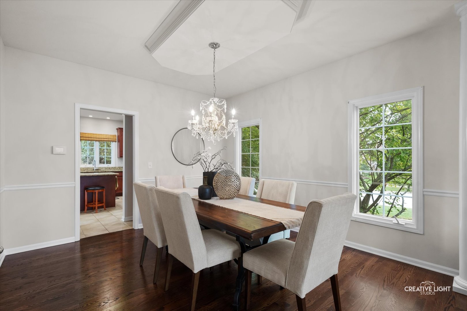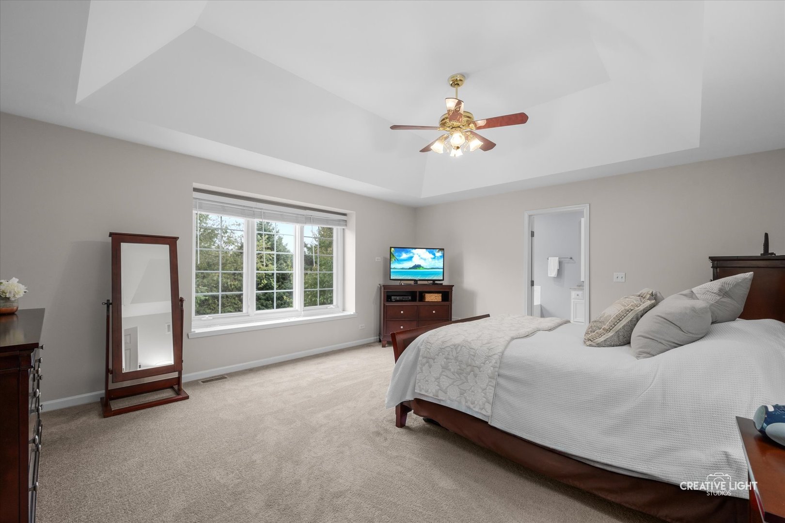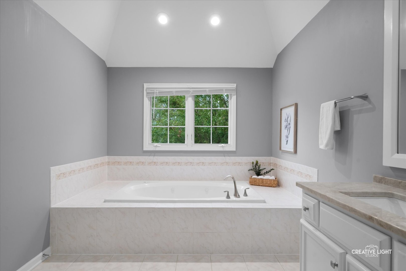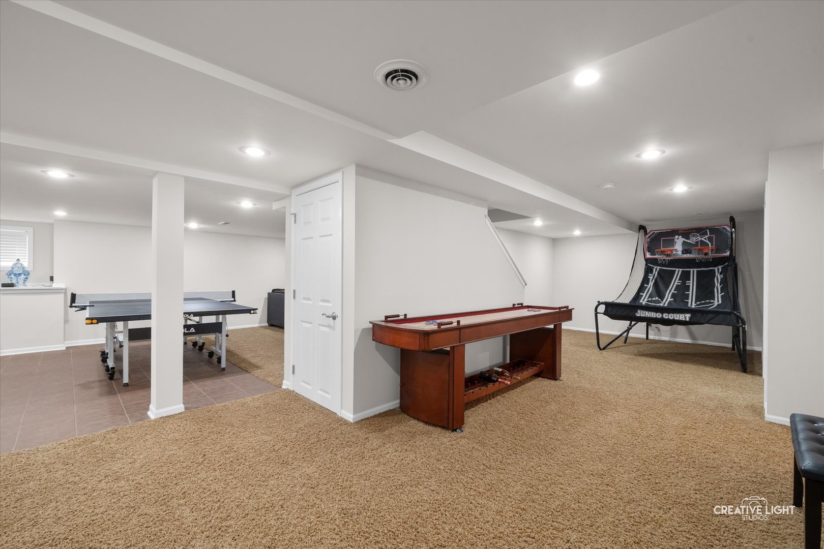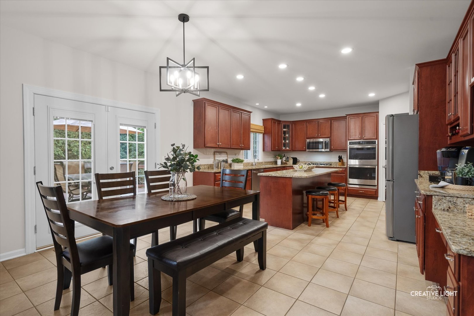 Style and sophistication shine throughout this beautifully refreshed home! Recently updated with fresh City Loft paint & new carpet upstairs. Hardwood floors were added & existing floors refinished on the main level. Not your typical floor plan – this home offers thoughtful design and distinctive details throughout. The impressive two-story foyer features a turned staircase with stained treads and wrought iron spindles. The dramatic Living Room with vaulted ceiling opens to the Dining Room, perfect for entertaining. The spacious Kitchen features an oversized island, granite countertops, stainless steel appliances, and a large walk-in pantry. The heart of the home is the two-story Family Room, with a floor-to-ceiling brick fireplace and a wall of windows that fill the space with natural light. A private main-floor Office is tucked away at the back of the home and is adjacent to a full bath-ideal for guests or an in-law arrangement. The first-floor bath has been updated with a white vanity, quartzite countertop, new mirror, and lighting. Upstairs, the Primary Suite features a vaulted ceiling and a spa-like bath with an updated dual-sink vanity, quartzite countertop, whirlpool tub, and newly tiled shower. Bedrooms two and three share a refreshed hall bath with dual-sink vanity, while the fourth bedroom includes a private ensuite bath. Both feature updated white vanities with quartzite countertops and modern fixtures. The finished lookout basement adds exceptional living space with Rec Room, kitchenette with sink, and dishwasher, plus a full bath with tub/shower combo. The Theater Room is great for family movie night! The projector, screen & surround sound speaks remain with the home! Two level entertaining outside with the deck & lower level brick paver patio with gazebo & fire pit. Transferrable Choice Home Warranty until 11/2026! 2 NEW WATER HEATERS 2019! NEW PATIO DOOR 2018! NEW SAMSUNG REFRIGERATOR 2018! NEW ROOF 2016! ADDED HARDWOOD FLOORS & REFINISHED 2014! Tall Grass is a swim & tennis community. Award winning Fry Elementary & Scullen Middle schools are on site. Route 59 shopping, restaurants are close by & the new Block 59 restaurant area is 4 miles north! Downtown Naperville is a short 15 minute drive! Seller would love a December 12/17 close date.