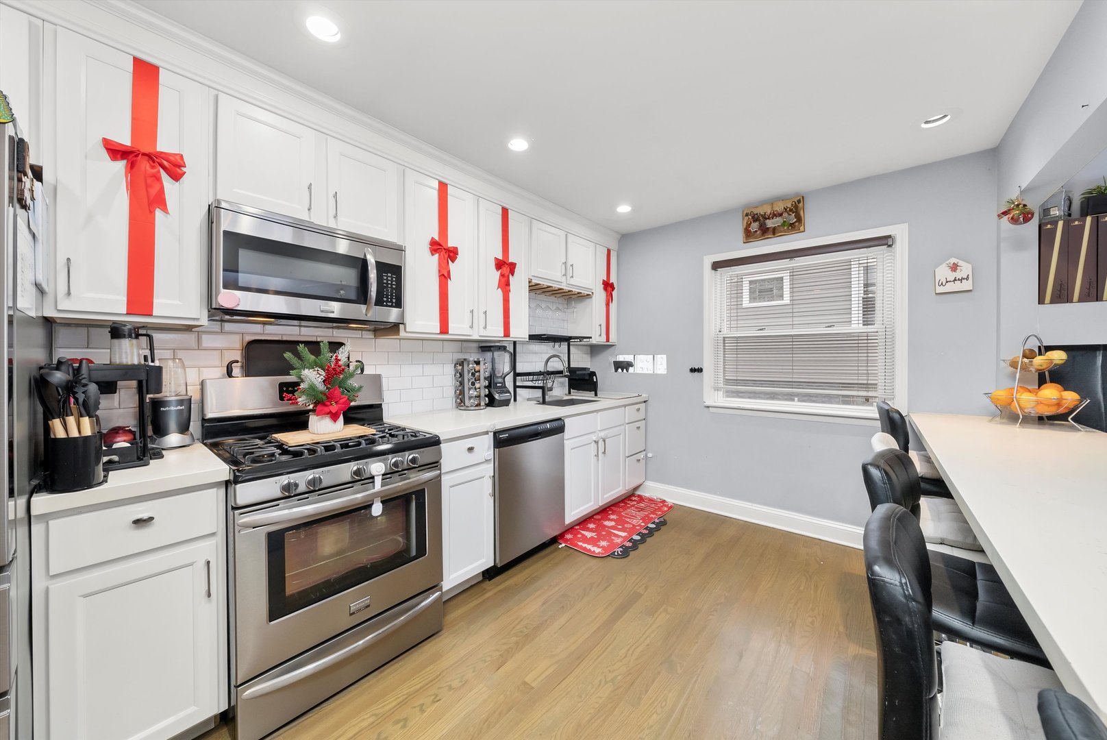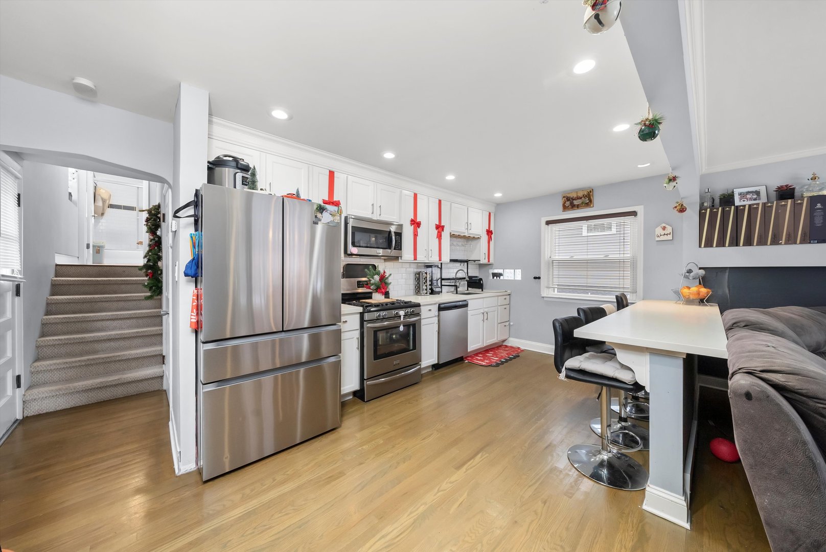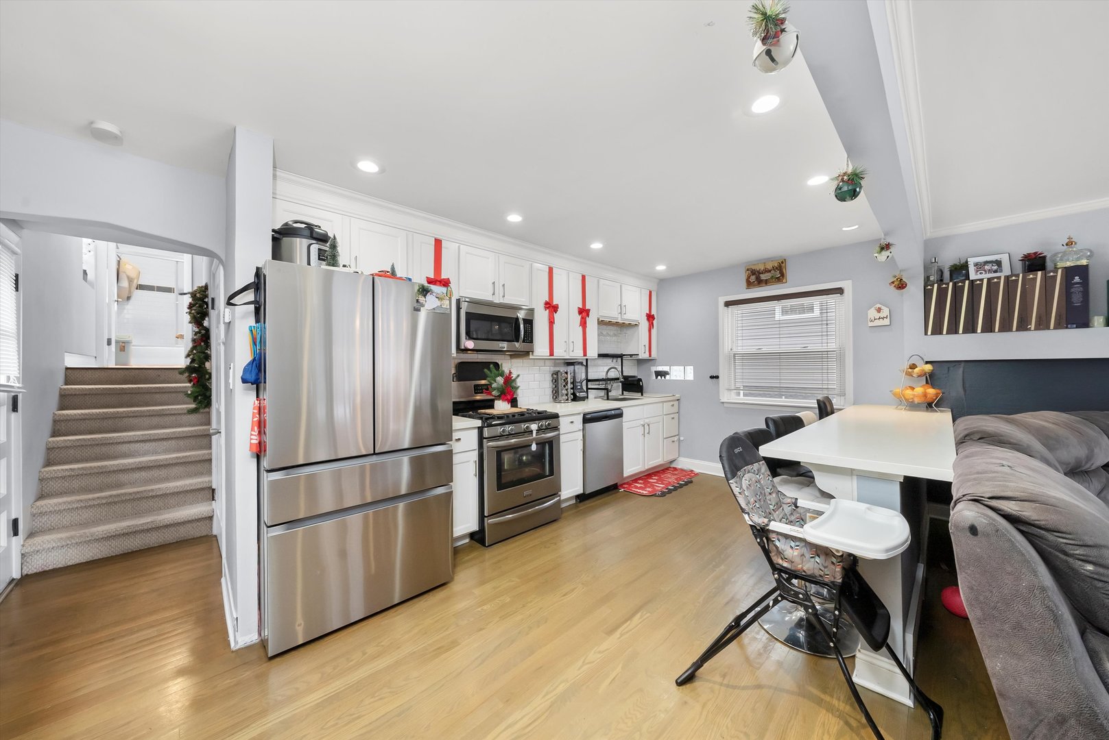 WELCOME HOME! Discover this beautifully remodeled 2-bedroom bi-level home nestled on a quiet, tree-lined street in South Cicero-the perfect starter home offering style, comfort, and modern updates throughout. The bright white kitchen features stainless steel appliances, quartz countertops, and classic cabinetry. Enjoy refinished hardwood floors, a full updated bathroom, and a finished partial basement ideal for additional living space or storage. Step outside to a spacious backyard, perfect for entertaining or relaxing. Conveniently located near shopping, dining, and recreation. Truly move-in ready!