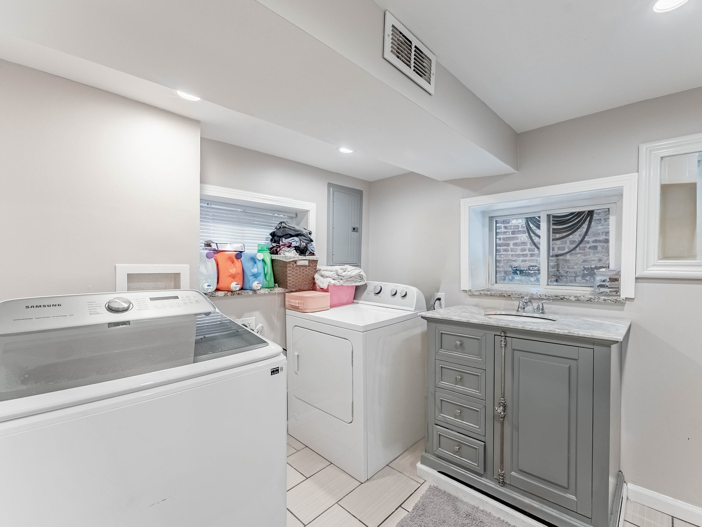 Meticulously maintained and thoughtfully updated oversized Georgian, steps from Senka Park, K-12 schools, and the heart of Gage Park. This home offers major recent improvements throughout, including brand-new central AC (2025) and two fully renovated full bathrooms (2025). Additional updates include a modern 2023 kitchen with quartz countertops and stainless steel appliances, 2023 windows, 2023 refinished hardwood floors, roof (2020) and hot water heater (2019). A spacious rear addition completed in 2015 expands the open concept living area, complemented by a private backyard retreat with a 2015 paver patio and oversized paver planter. Inside, enjoy a bright tray-ceiling living room, formal dining room, two generous bedrooms upstairs with a primary featuring his-and-hers closets, and a finished basement with a family room and flex space. Truly move-in ready with updates spanning the entire home, built for lasting comfort.