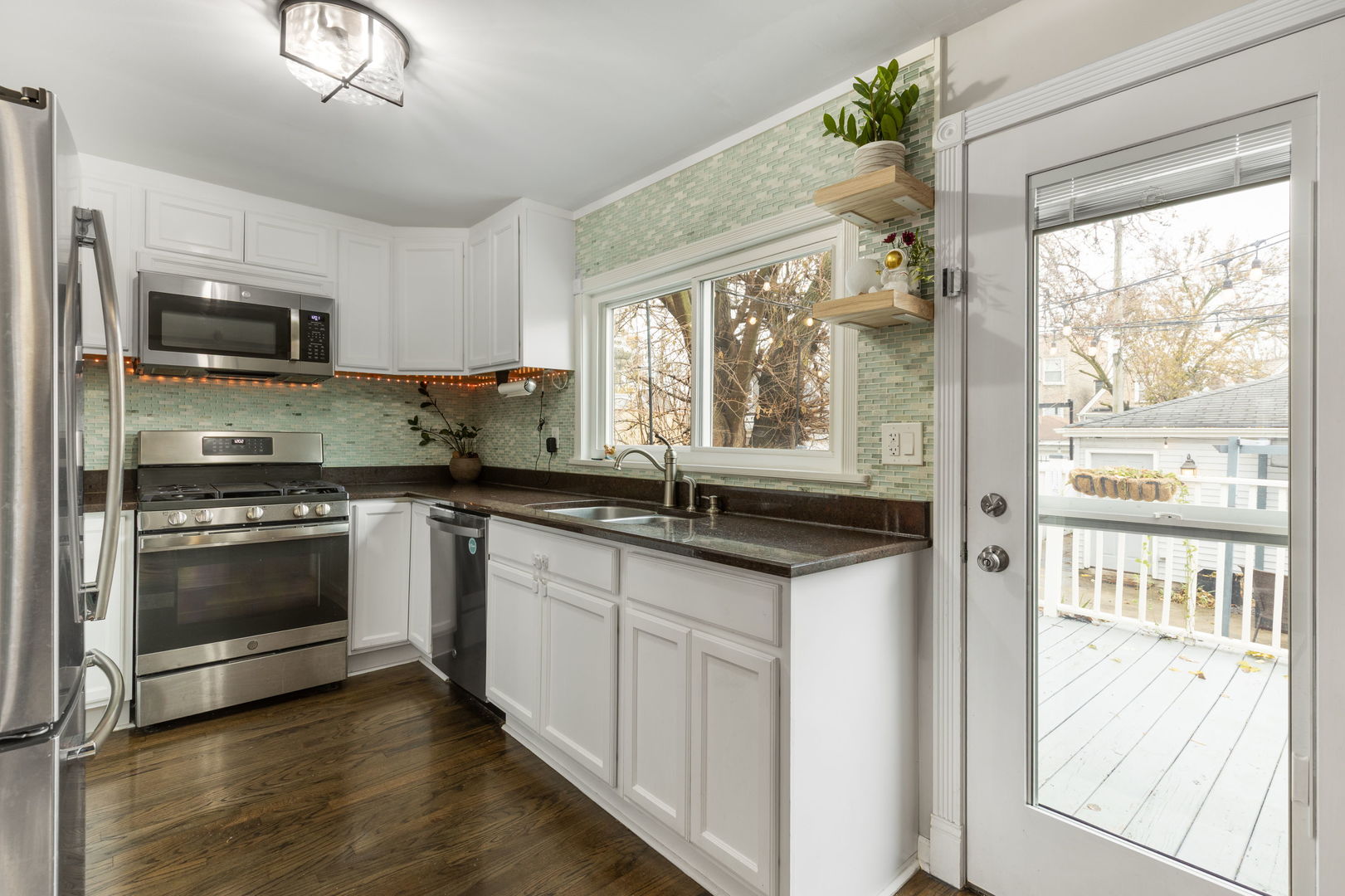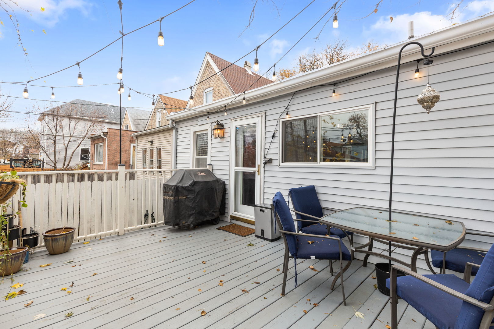 Fully updated Humboldt Park charmer-move-in ready and waiting for its new family! The inviting white picket fence and spacious front porch lead you into a beautifully renovated 5-bedroom, 2-bath home with modern updates throughout. Enjoy a bright and expansive living/dining room combo with hardwood floors, plus a flexible third bedroom on the main level featuring new barn doors-perfect as an office, workout room, or extension of your eat-in kitchen. A large picture window fills the kitchen with natural light, and the oversized back porch creates the ideal indoor/outdoor entertaining space. Peace of mind comes easy with brand-new electrical throughout the entire home, including 220V in the garage-ready for your hybrid or electric vehicle. Thoughtful hidden storage is tucked throughout the home for added convenience.