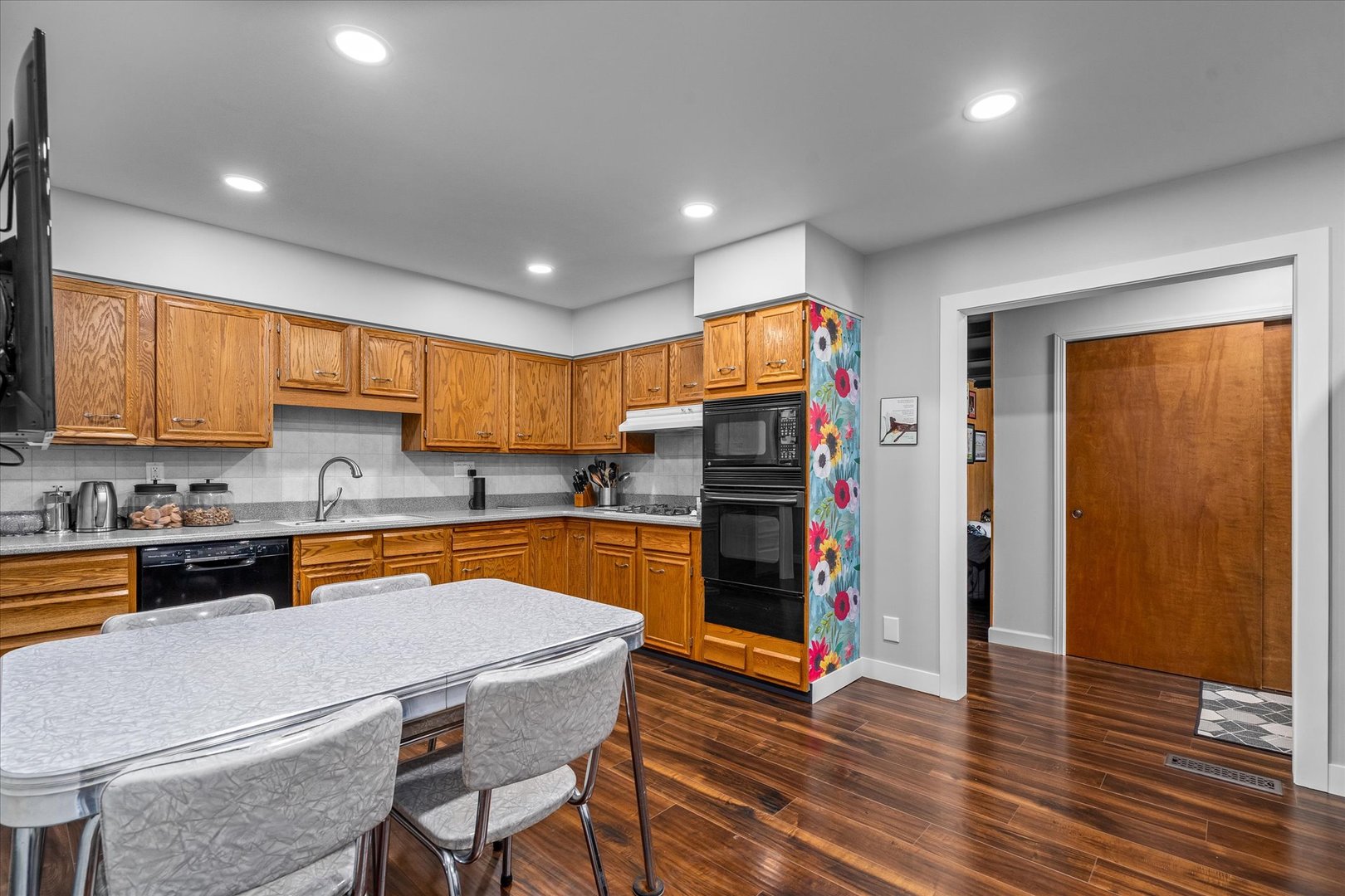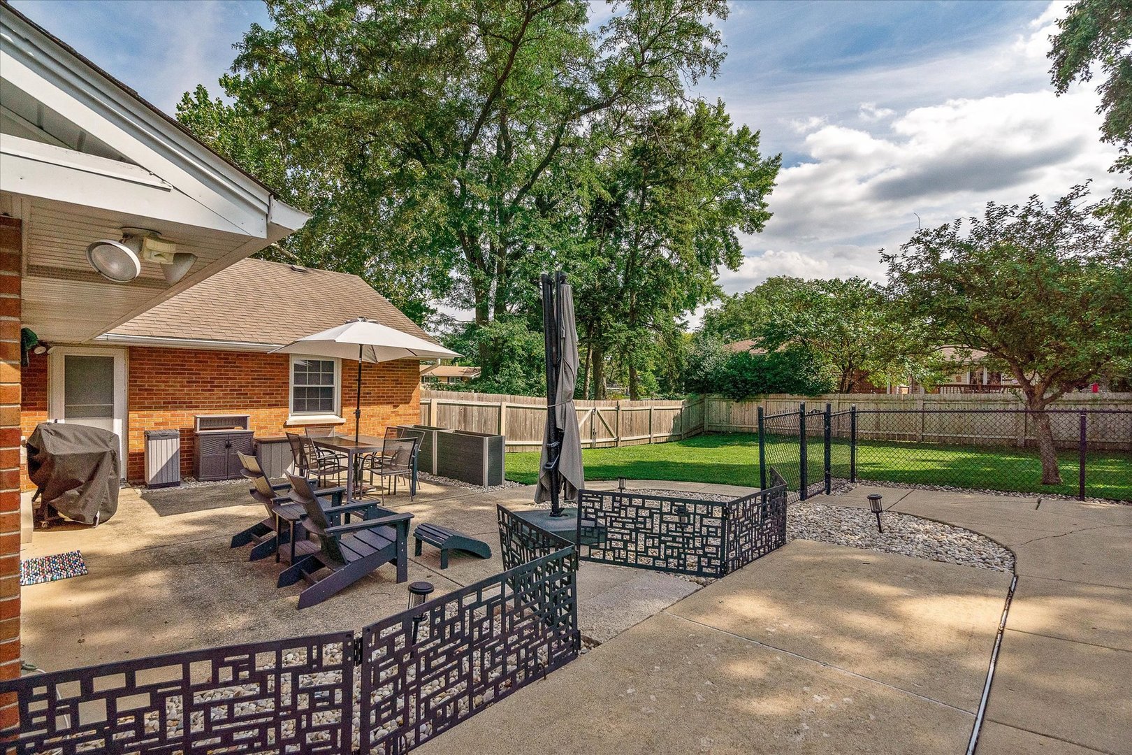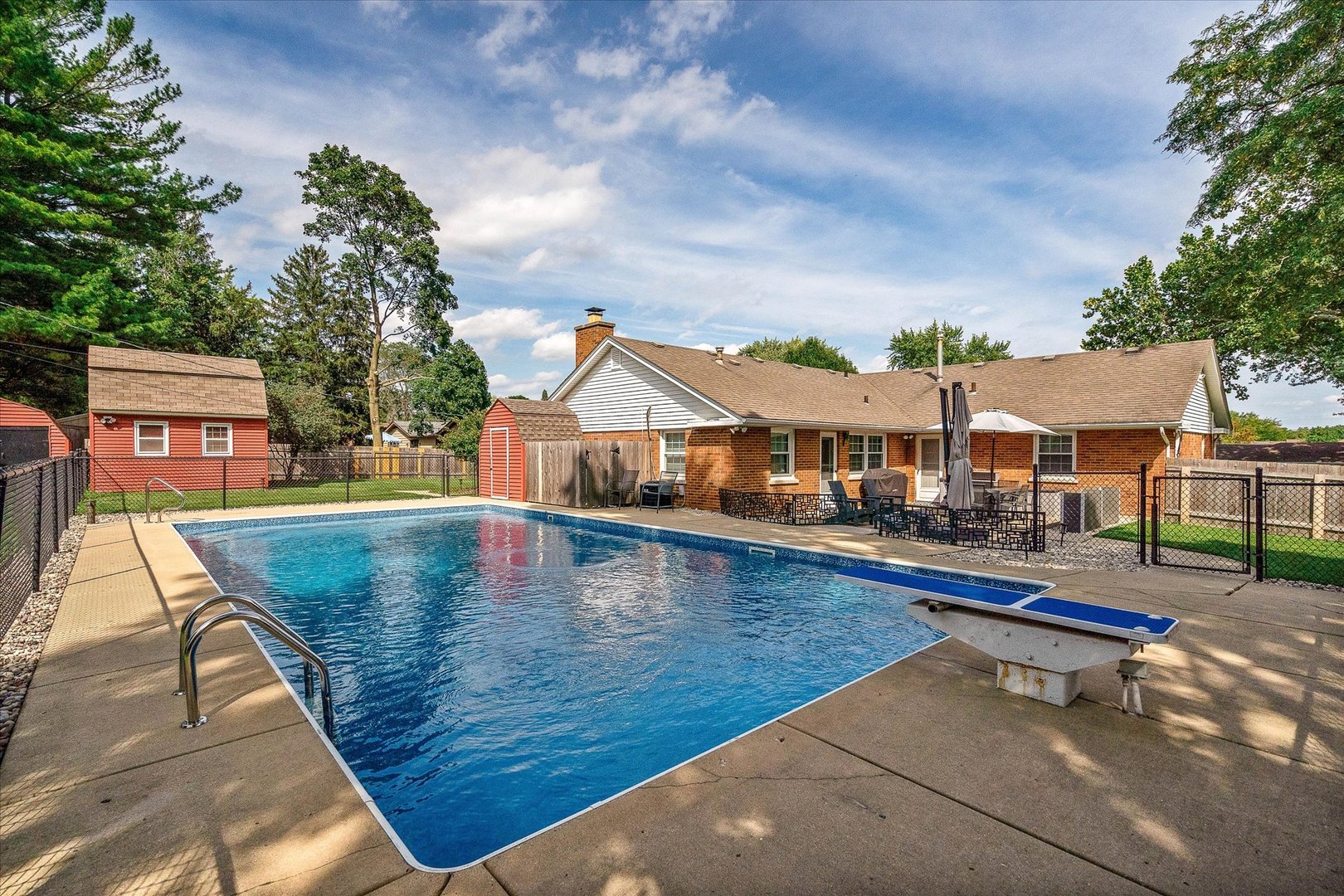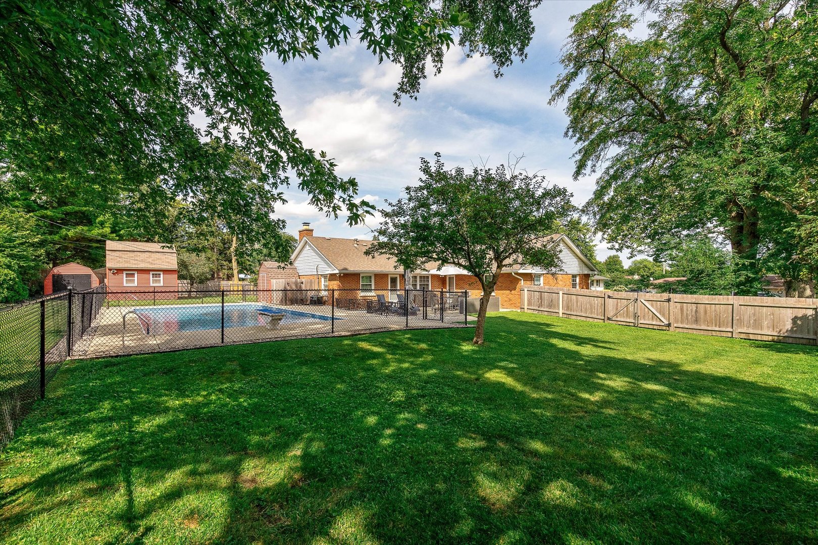 Welcome to this North Aurora gem on just about ahalf-acre lot with all the features you’ve been looking for! The backyard is an entertainer’s dream with an inground pool, multiple sheds, two fenced areas for kids or pets, plus a concrete patio and paver patio perfect for gatherings. Inside, you’ll find 3 bedrooms, 2 full baths, a spacious living and dining room accented with a birch wrapped beam, and a large kitchen with table space, Corian counters, and pantry closet. The family room with cozy fireplace and an enclosed porch add plenty of flexible living space.The primary suite includes a large walk-in closet, full bath, and direct access to the pool area.So many updates have been made including: flooring, paint, trim, new bath, HVAC, garage doors, and more. See the “Additional Information” section for the complete list of improvements.