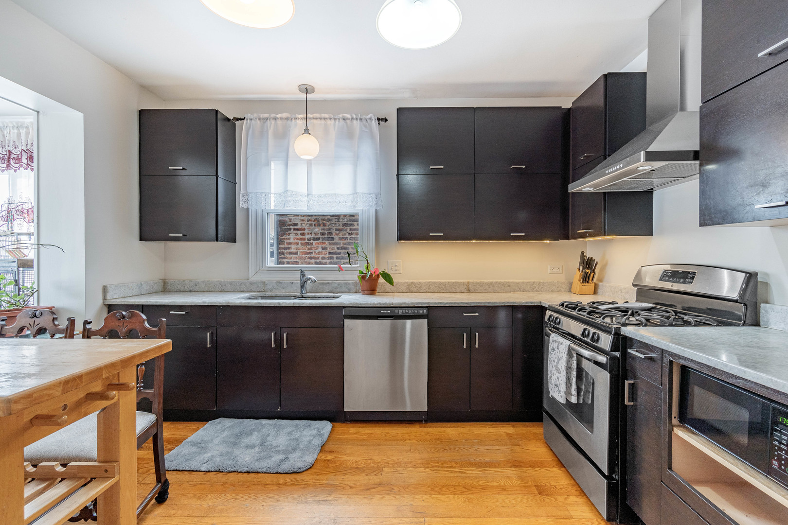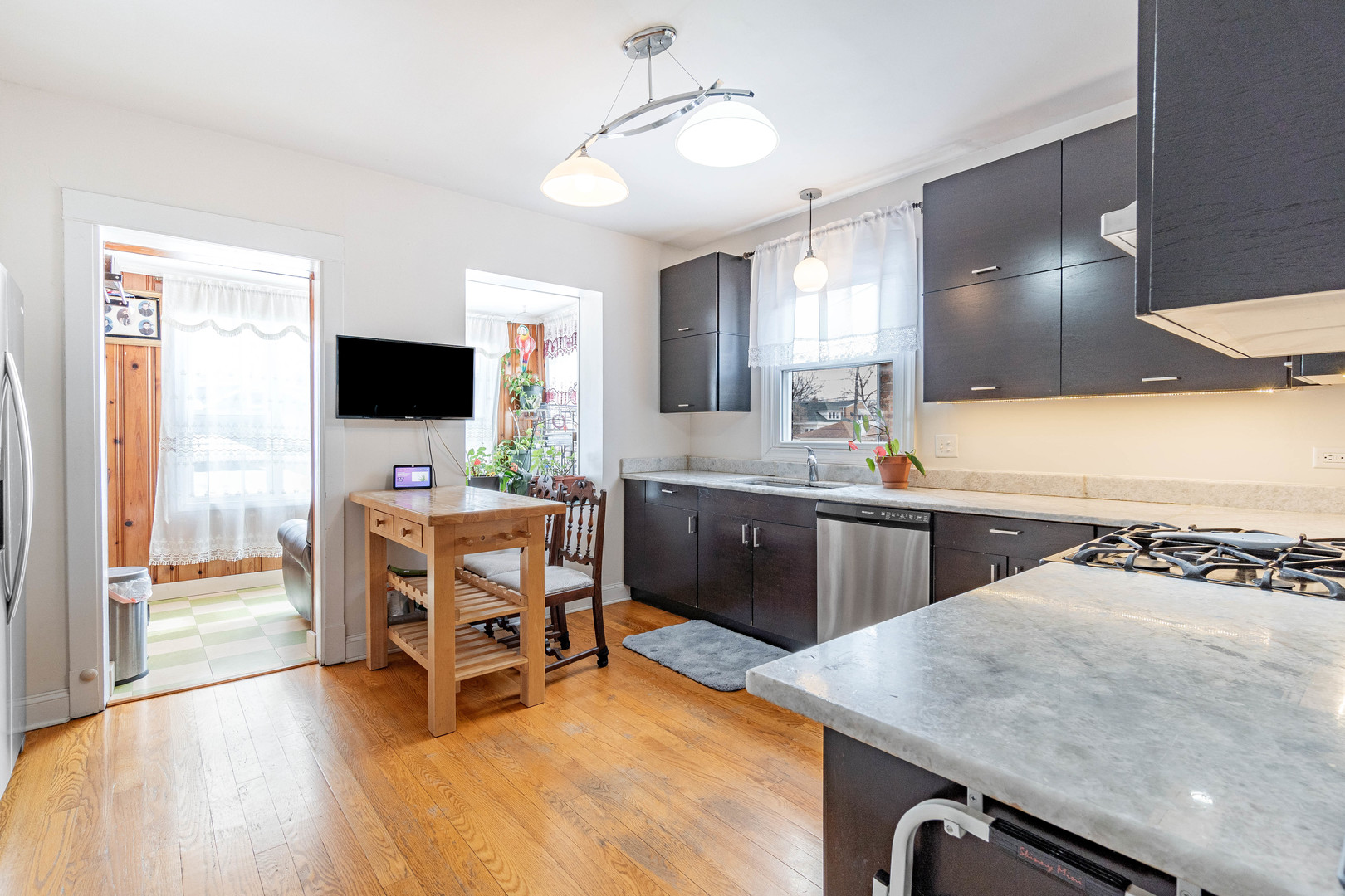 Solid brick “Chicago bungalow” in South Berwyn offering charm, updates, and future potential. This home features 2 bedrooms, 1 full bath, hardwood floors throughout, and an updated kitchen (prior to 2023) with stainless steel appliances. Enjoy additional living space in the enclosed porch/sunroom. The full semi-finished basement offers 7 ft ceilings, an overhead sewer system, and potential to add a 3rd bedroom and 2nd bath. Recent improvements include new furnace and A/C (2021), newer windows (prior to 2023), and a 2-car garage. Well-maintained with room to grow-an excellent opportunity in a desirable Berwyn location.