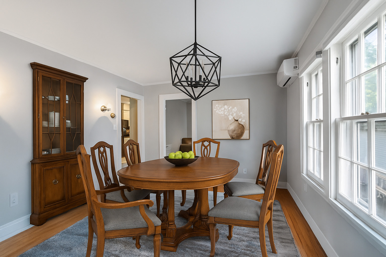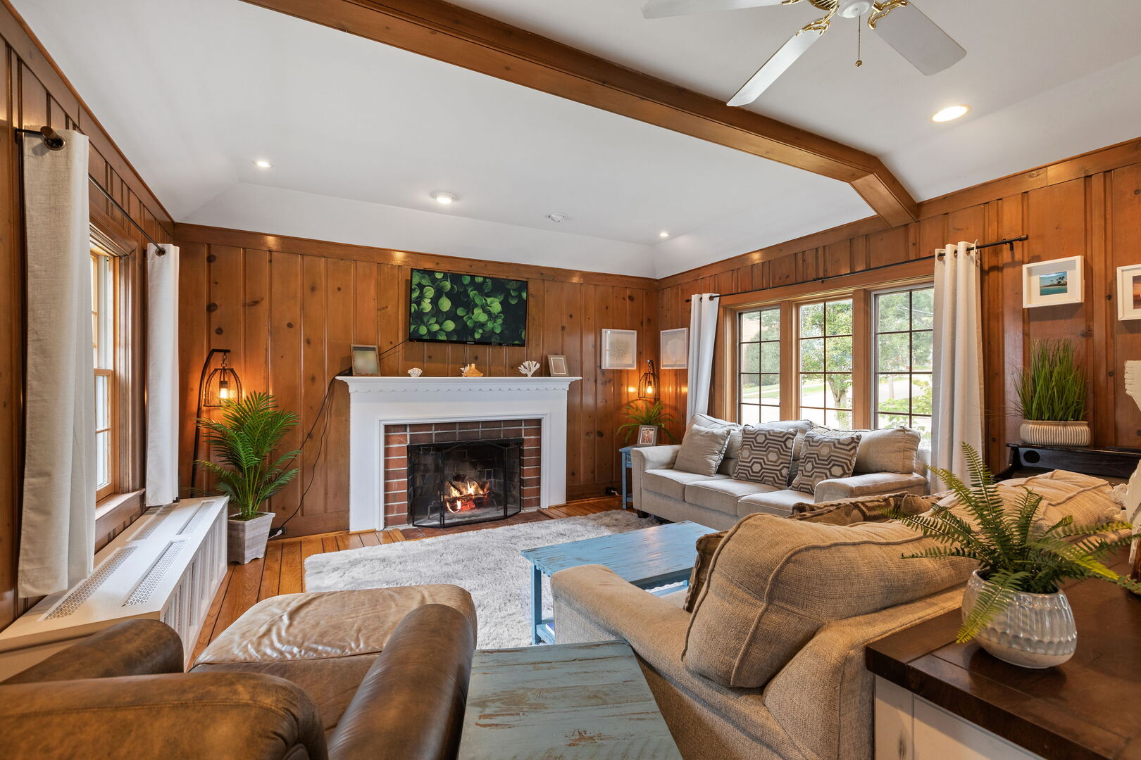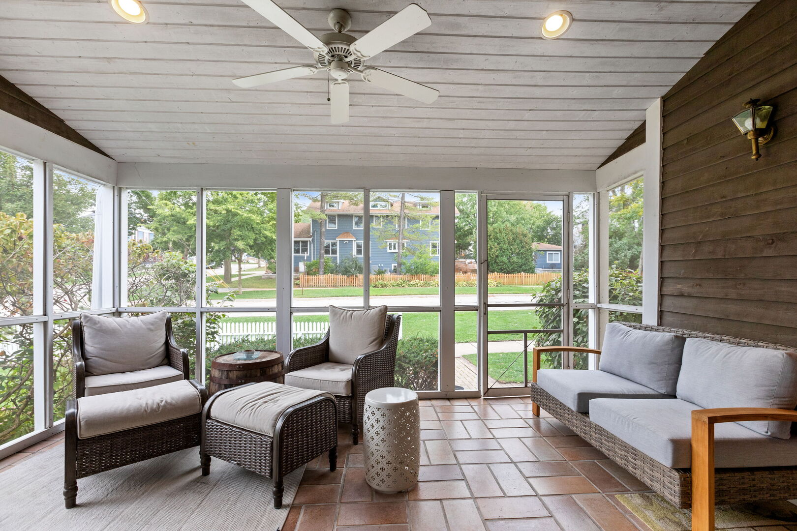 The picket fence charm that suits the Village of Barrington to perfection! A corner parcel in the heart of downtown with a storybook entry through a gorgeous, vaulted screen porch. The porch showcases French door access to the family room on one side and separate foyer entry on the opposing. Upon entering a sense of warmth embraces you with an exposed staircase and gorgeous hardwood floors that lead the way to a refined kitchen with 36″ white shaker cabinets, black counters, and new stainless-steel appliances. Adjacent to the kitchen is a generous dining room universally used as an office. The dining room is conveniently open to a phenomenal family room with exposed beams, gorgeous windows on all 3 sides of the room complimenting the fireplace and French door access to the screen porch. The main floor also showcases a 4th bedroom and powder room. The second floor is equally impressive with 3 spacious bedrooms and a shared full bath. The bath is complete with a single vanity and shower/tub combination. Full unfinished lower level perfect for a playroom, recreation room or workout area. 2-car detached garage with a beautiful brick patio the home and garage, ideal for cool evening and bonfires or privacy on a sunny day. Near restaurants, shopping, entertainment, Metra Station and so much more. New central air system, zoning each room with a temperature of your selection, new concrete driveway, new landscaping, refined kitchen, new patio and a fresh coat of paint on the exterior.