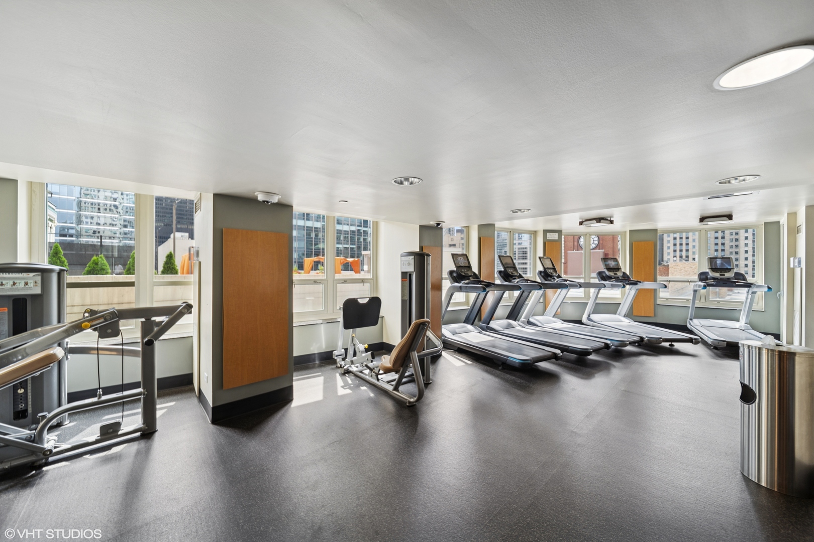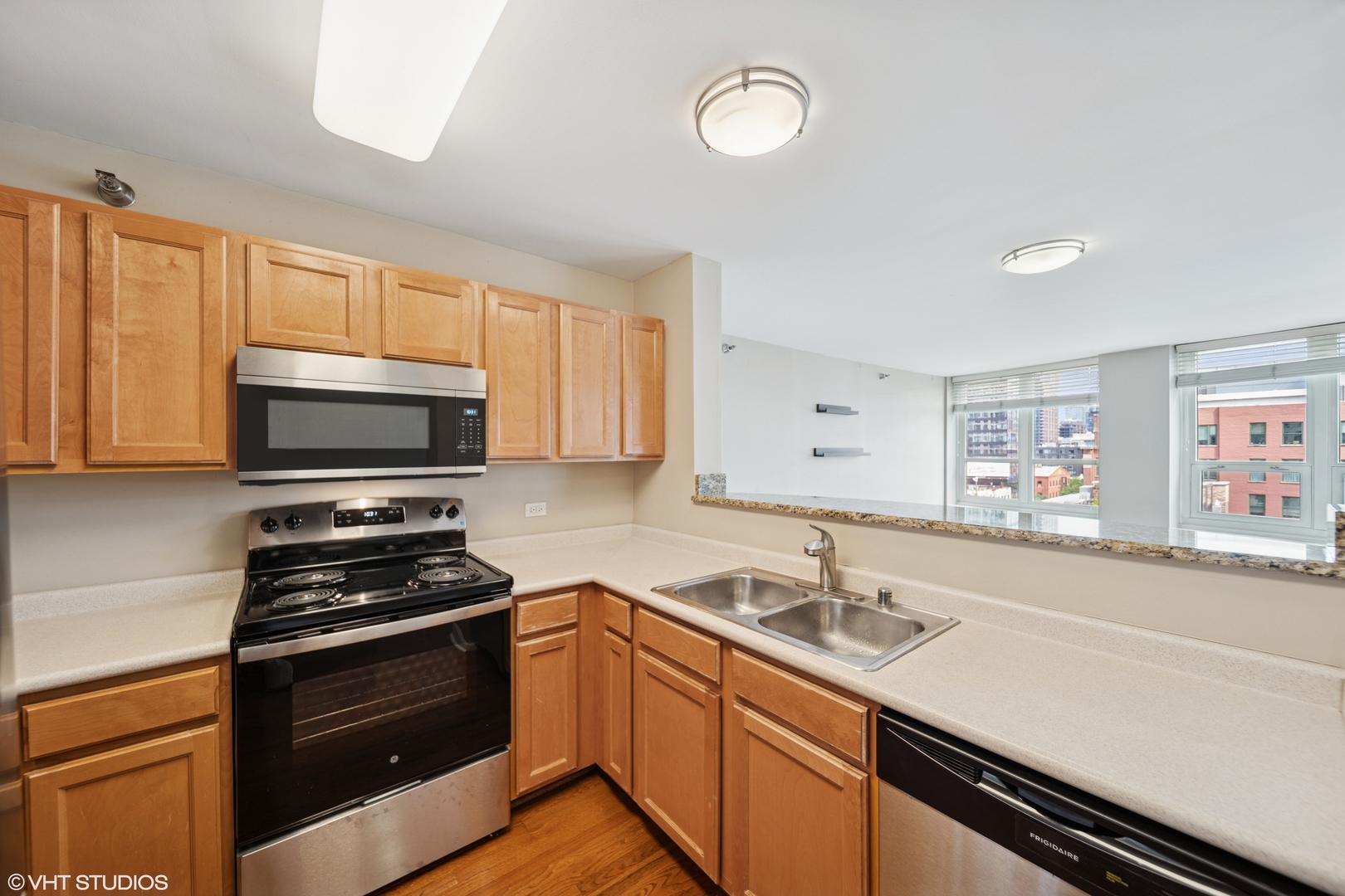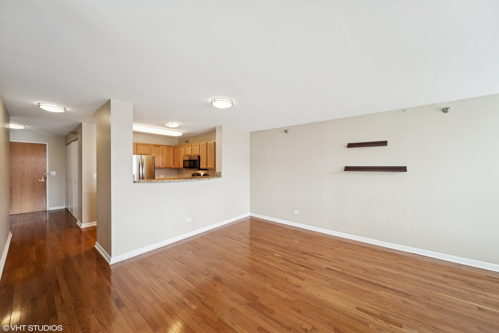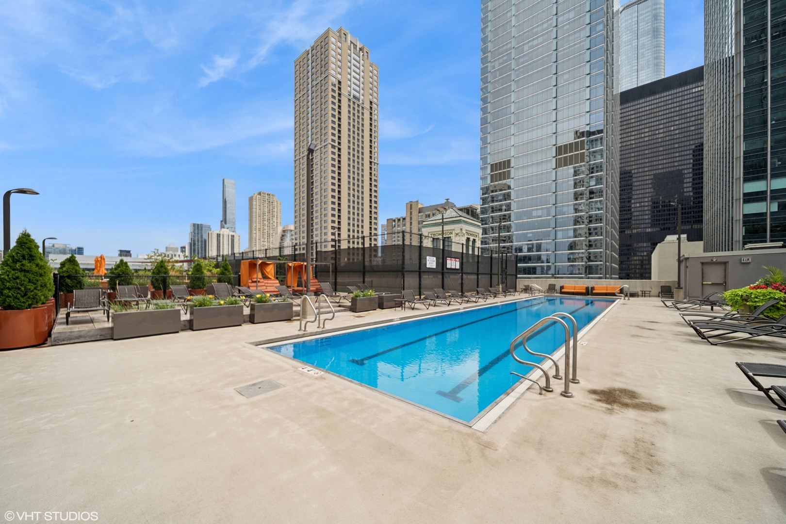 Spectacular River North 1BR w/ countless upgrades! Beautiful layout with open kitchen and large living area that feeds to your private balcony. Great views of the city facing North. Unit features gorgeous hardwood floors, In-Unit washer/dryer, custom California Closets, all stainless steel appliances, and kitchen granite bar. Building access to fitness rooms, sun deck w/ pool, tennis courts, and patios!