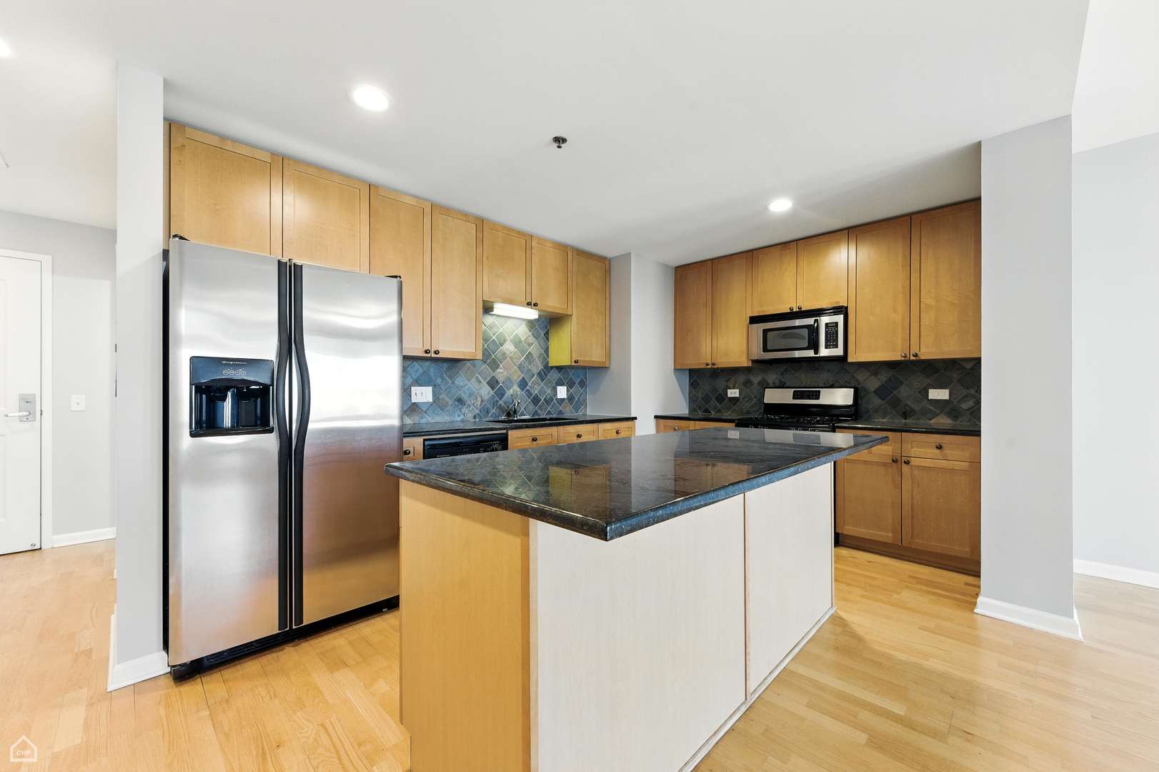 Heart of Bridgeport. 2 bed – 2bth home- w/ floor to ceiling windows in every room gving you great natural light thru out the entire home. Great square floor plan giving you a ‘heart of the home’ centered on a upgraded kitchen w/ custom cabinets, granite counters, stainless steel appliances. Plenty of room for a large sectional and dining room table. Large private deck off the kitchen perfect for grilling or relaxing. Large master suite with ample space for king bed, dresser, TV and sitting area; walk in closet and on suite master bath w/ dual vanities and large walk in shower. Second bedroom with large closet and floor to ceiling windows. The second bathroom is tucked away in the hallway along with large coat closet and side by side laundry. The unit has window treatments on every window, Brazilian cherry wood in the main areas and newer carpet in the bedrooms, large storage cage and attached (2) heated parking available for 15k each (parking spots 51 and 66) . All mechanicals original. HOA includes water, gas, management, normal maintenance. Asseseement $523.53 Parking assessment: $25.80 each month. Building has a sun deck and a party room on the 5th floor. Rentals are allowed