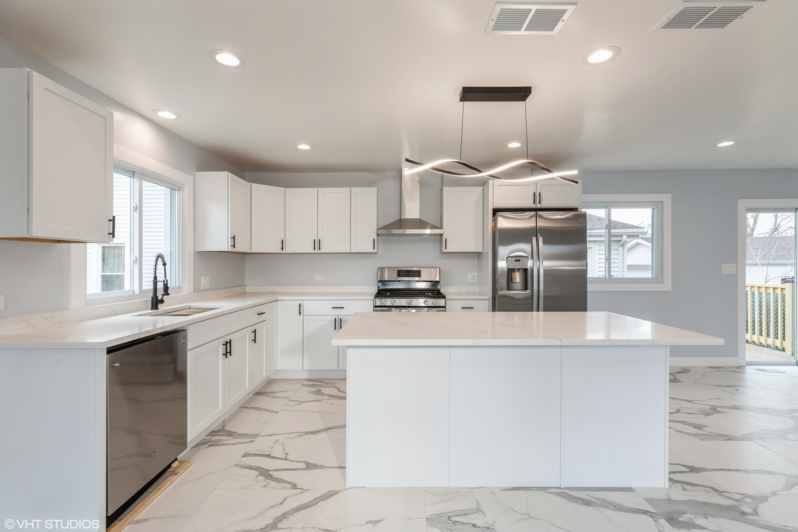 SHOWINGS ARE STILL AVAILABLE BY APPOINTMENT Fully Renovated Gem offered for sale or for rent ($4900 monthly rent short term will be considered). Welcome to your dream home! This stunning property has undergone a complete gut rehab with permits, ensuring top-notch quality and craftsmanship. Everything from the electric and plumbing to the HVAC, furnace, and roof for both the house and garage has been meticulously redone. Step inside to discover a spacious layout boasting 5 bedrooms and 3 bathrooms, including a luxurious master suite with its own bathroom and walk-in closet. The finished walk out basement adds even more living space, perfect for entertaining or relaxing with family and friends. Enjoy the convenience of brand new appliances, including a washer and dryer. Modern, open-concept kitchen and dining area. The living room features a cozy fireplace and gleaming hardwood floors, adding warmth and charm to the space. Located in a highly desirable neighborhood, this home offers the perfect blend of comfort, style, and convenience. Large fenced yard and a 2 car garage with a second floor makes a perfect “man cave” Don’t miss out on the opportunity to make it yours! Tenant occupied lease ends end of august.