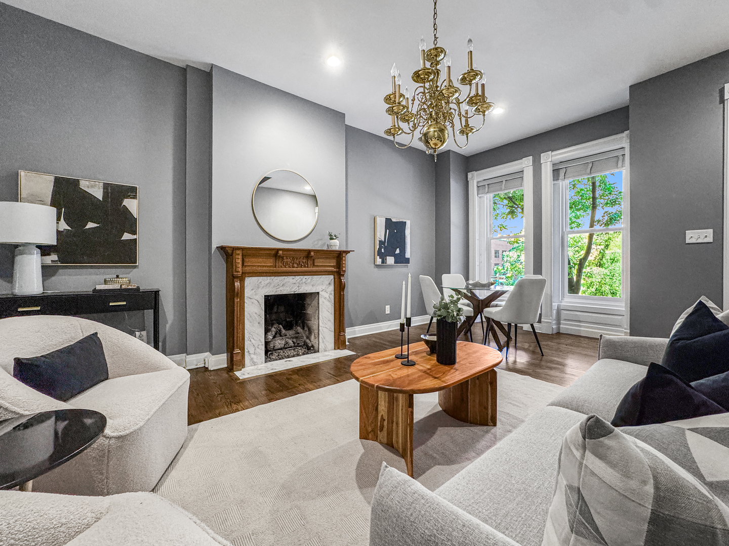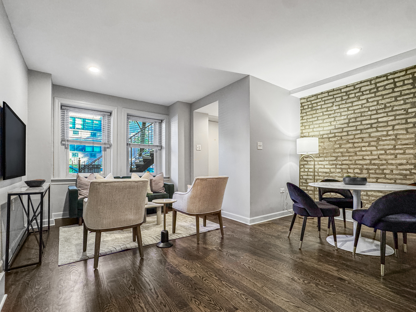 This move-in-ready East Lincoln Park row home is a fabulous alternative to a condo. It offers bright living space with nearly 10 ft ceilings on the main level, hardwood floors, two fireplaces, and updated finishes throughout. The main level features a combo living/dining room, a newer white kitchen, a half bath, and laundry. Upstairs, there are three bedrooms with Elfa closet organizers, two full baths, a family room, and an office or playroom. The garden-level apartment offers flexibility, allowing it to provide income to cover property taxes, serve as an in-law suite or home office, or be incorporated into the main living space by adding an interior staircase. This home has a new synthetic deck off the kitchen, an extra-deep landscaped backyard, and an oversized two-and-a-half-car garage. The house is ideally located near the park, zoo, nature museum, lakefront recreation, public transportation, and exceptional schools, including Lincoln Elementary.